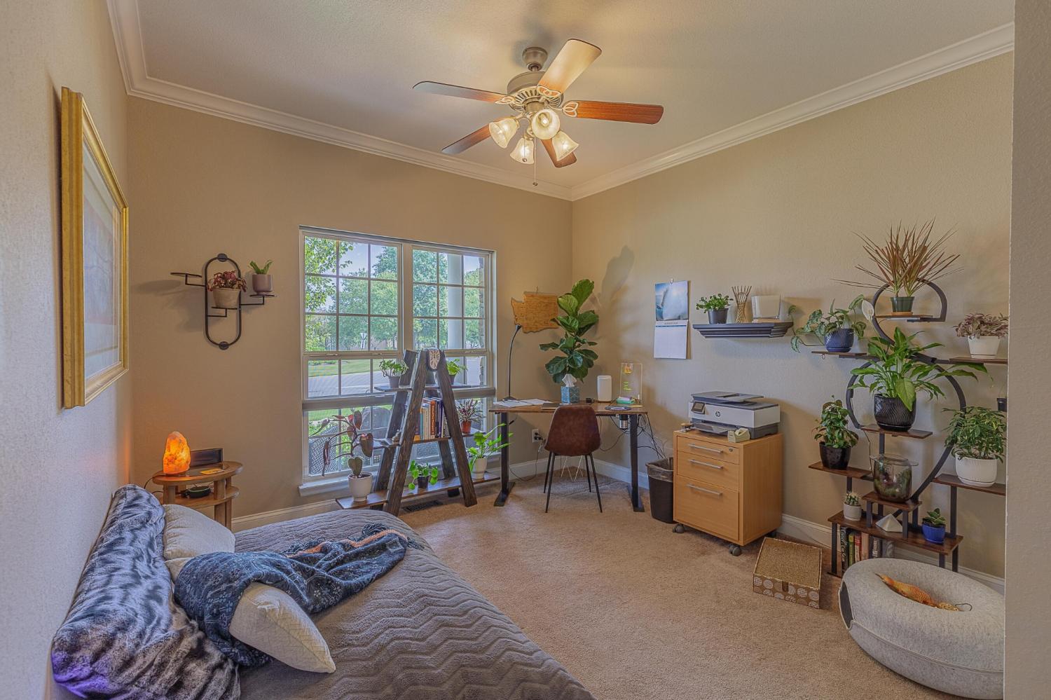 Welcome to Fieldstone Farms! This beautifully designed home offers 3 bedrooms and 2 bathrooms on the main level, including a private primary suite, plus a versatile fourth bedroom or bonus room upstairs. The split floor plan provides privacy, while the open living spaces are enhanced by rich hardwood floors in the living room and hallways and striking Artika lighting throughout. The kitchen is both functional and stylish, featuring Corian countertops, a double oven, a large pantry, and a cozy eat-in area. A spacious laundry room and a two-car garage with extra storage add to the home's practicality. Step outside to the screened porch and enjoy the peaceful setting, complete with newly built steps crafted from pressure-treated wood. Located in the desirable Fieldstone Farms neighborhood, residents enjoy sidewalks, multiple common areas, local restaurants, and a gym—all just a short walk or drive away. This home perfectly blends comfort, thoughtful design, and community living.