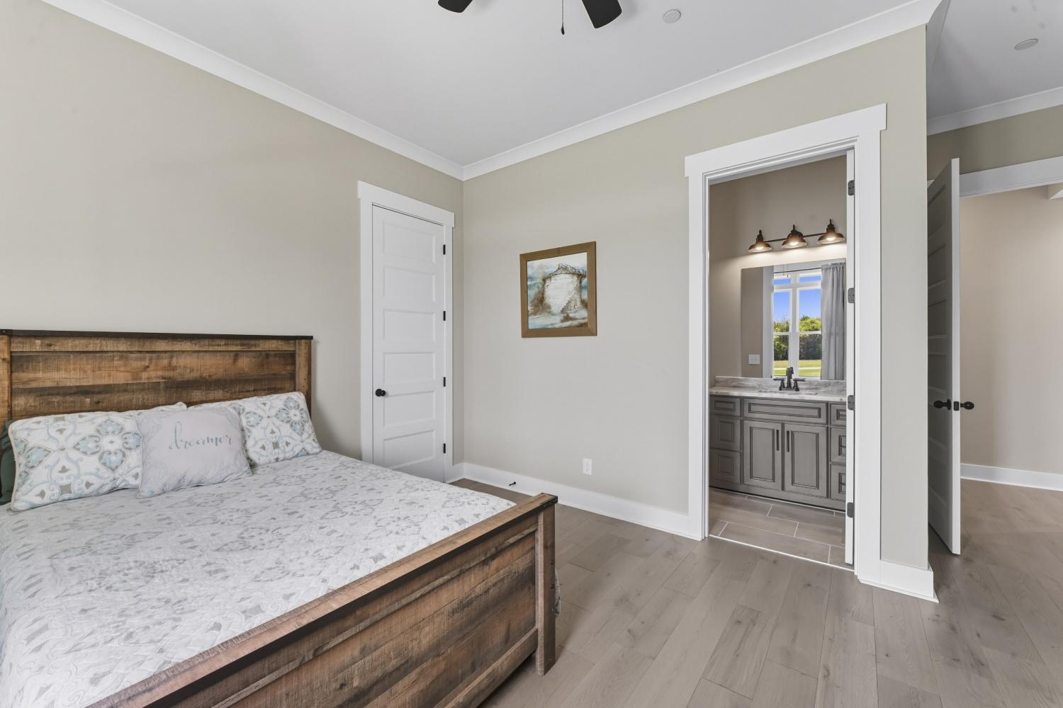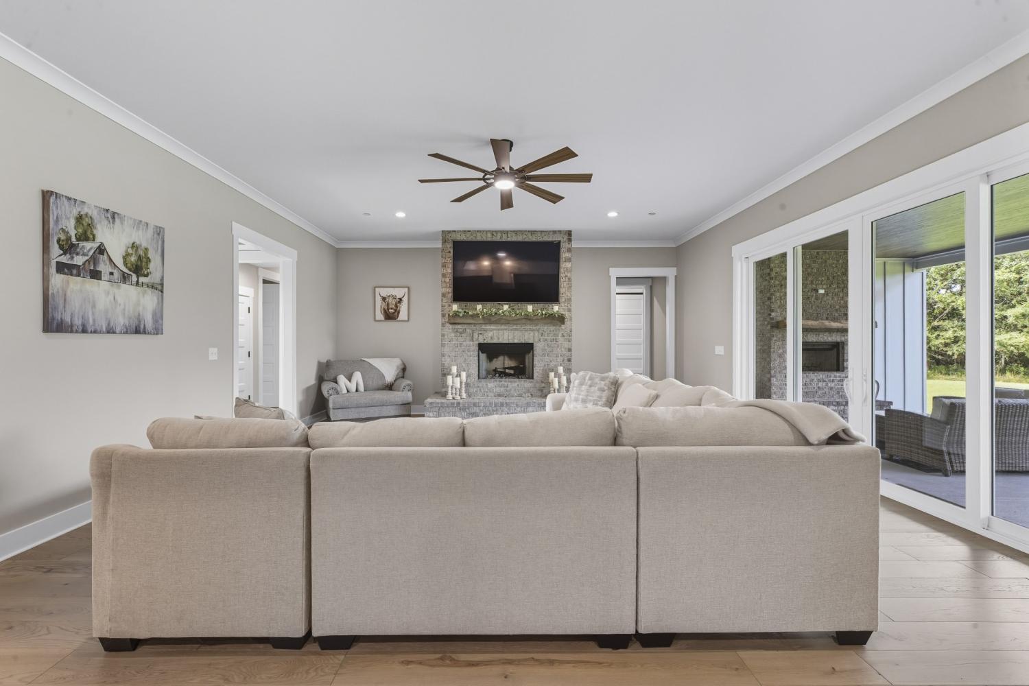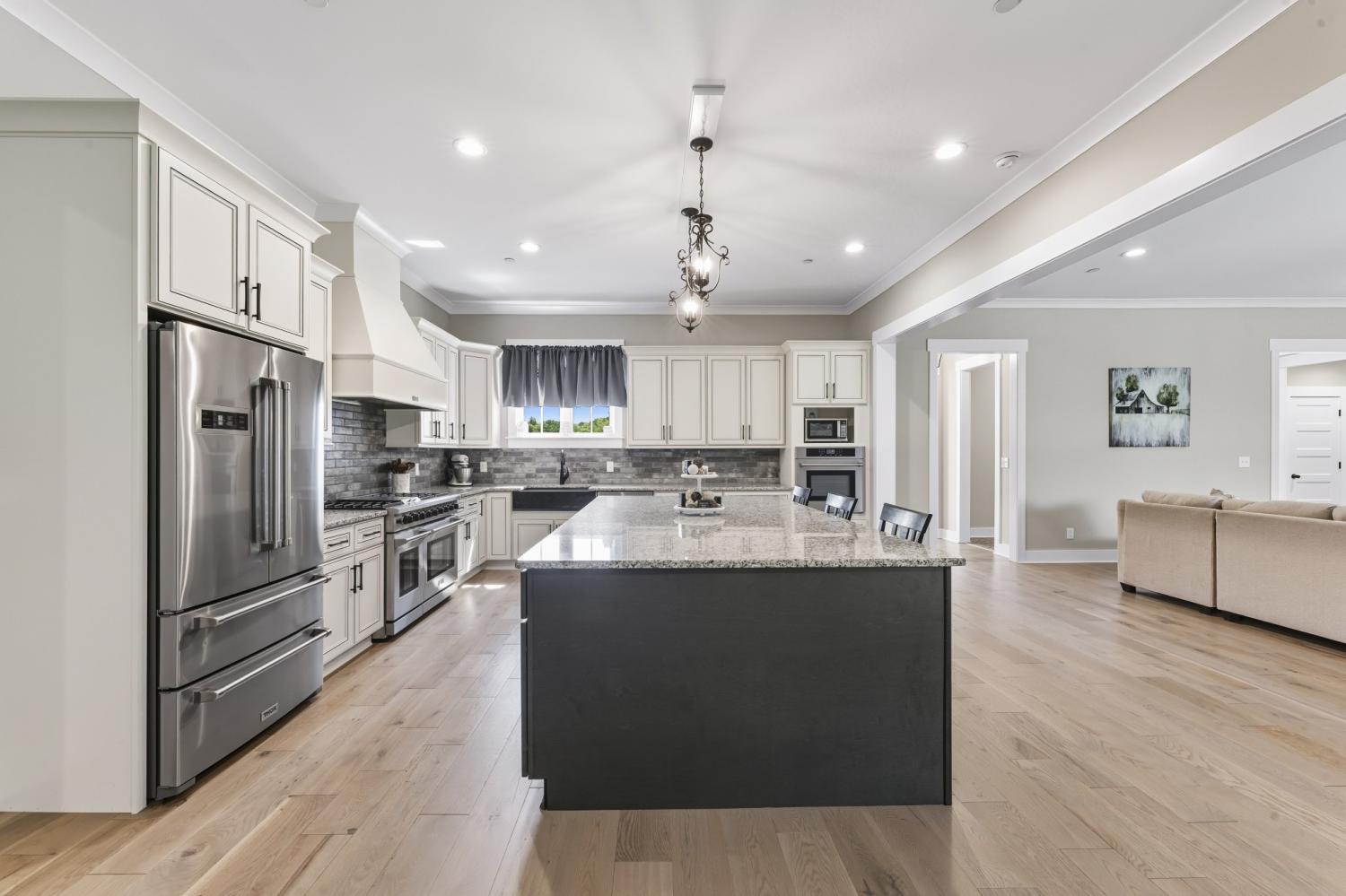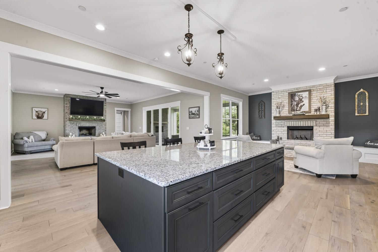 Sitting on 7.8 acres of beautiful land in Rutherford Co. with a creek running along 2 sides, this property offers both a peaceful country setting and convenient access to multiple area cities. Custom built to include a chef’s kitchen with a 48” 6 burner and flattop gas range with double ovens, electric wall oven, 5’x10’ island, a large walk-in pantry with custom built-ins and 2nd refrigerator. Separate coffee bar and wine room leading to formal dining gives you everything you need for entertaining. 4 large bedrooms, ALL with en suite bathrooms plus 2 half baths. Primary bedroom suite, located downstairs, includes 2 x-large W.I.C., bath with large soaking tub, double walk-thru shower, double vanities with tall storage cabinets and access to the oversized laundry room. Upstairs you find 2 more large bedrooms, each with en suite baths and W.I.C. Large upstairs bonus room overlooking below would serve perfectly for a home gym, office, homeschool space. 2 woodburning fireplaces inside, granite throughout except butcher block in pantry and laundry, hardwood and tile throughout, custom trim, built-ins and crown molding, and so much storage. Roughly 1829sqft of covered front/back porches with water resistant pre-finished wood ceilings. Back porch with woodburning fireplace and never before used KitchenAid Stone Island 9-burner gas grill plus mini fridge. 3-car attached garage. 40’x60’ barn with 40’ lean-to and 200 amp power run. No HOA for 8 lot community with private road, large tracts, and county taxes only. Offering plenty of land for not only beautiful front and back yards, but enough space for a future pool, gardens, animals…which could all be serviced by the well that sits on the property! Check with your agent for list of more features and ask them about the potential to keep any wanted furniture. *Construction has begun on the final lot so there is more than usual wear on the road, along with utility work being done. Maintenance should be expected upon completion.