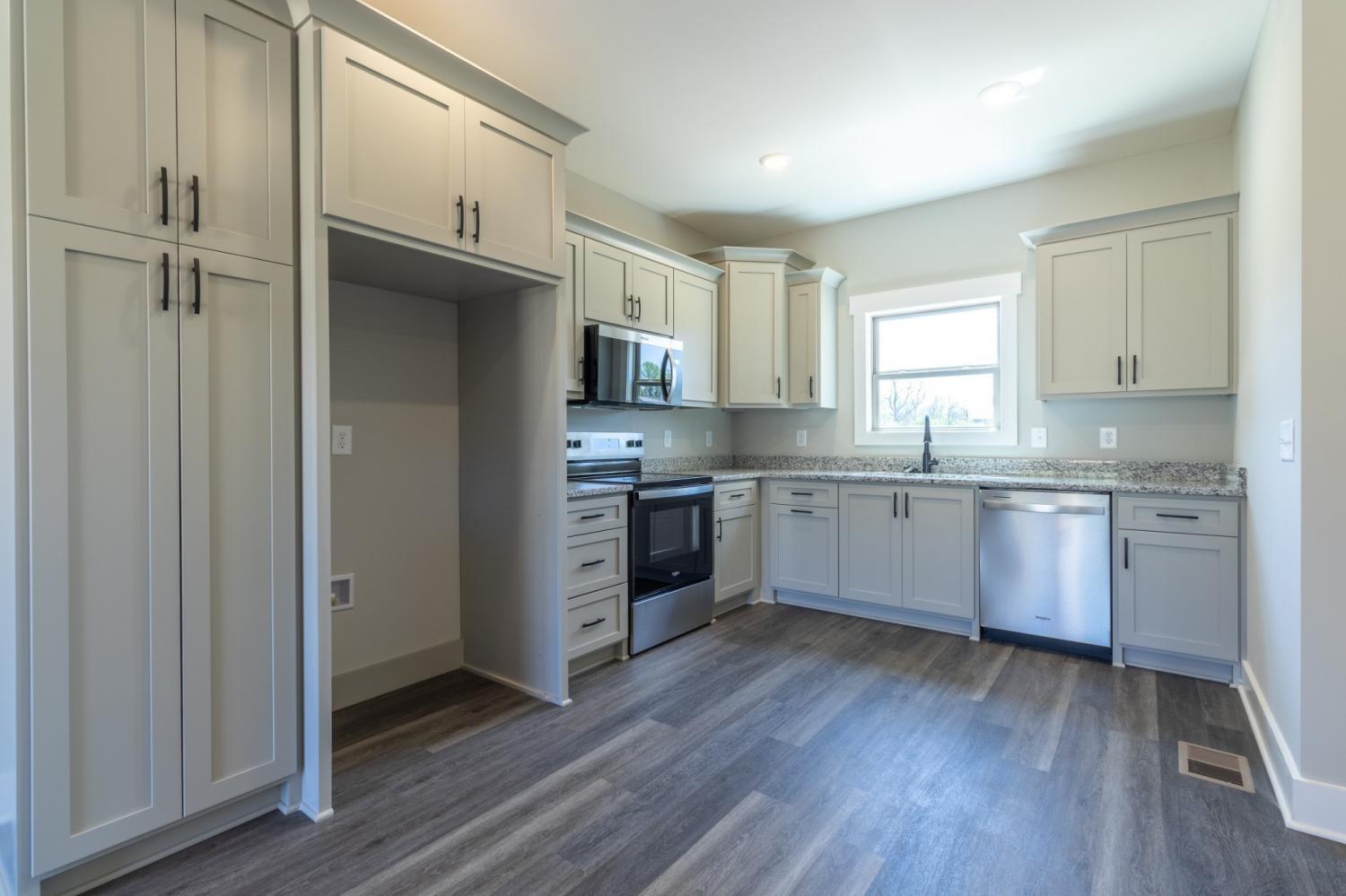 New Construction by Ben the Builder! Nestled in a charming neighborhood of only 20 homes across two peaceful cul-de-sacs, this brand-new single-family home boasts 3 bedrooms and 2 full baths—all on the main level—ideal for modern comfort and accessibility. The bright, open floor plan features a spacious great room, formal dining area, and a functional kitchen layout. Enjoy oversized bedrooms, convenient layout, and thoughtful touches like a double vanity in the primary suite. Situated on a generous .73-acre lot, this property offers both privacy and serenity. At 1,399 sq?ft (approx.), it’s perfectly sized for families or downsizers alike. Don’t miss out—schedule your showing today!