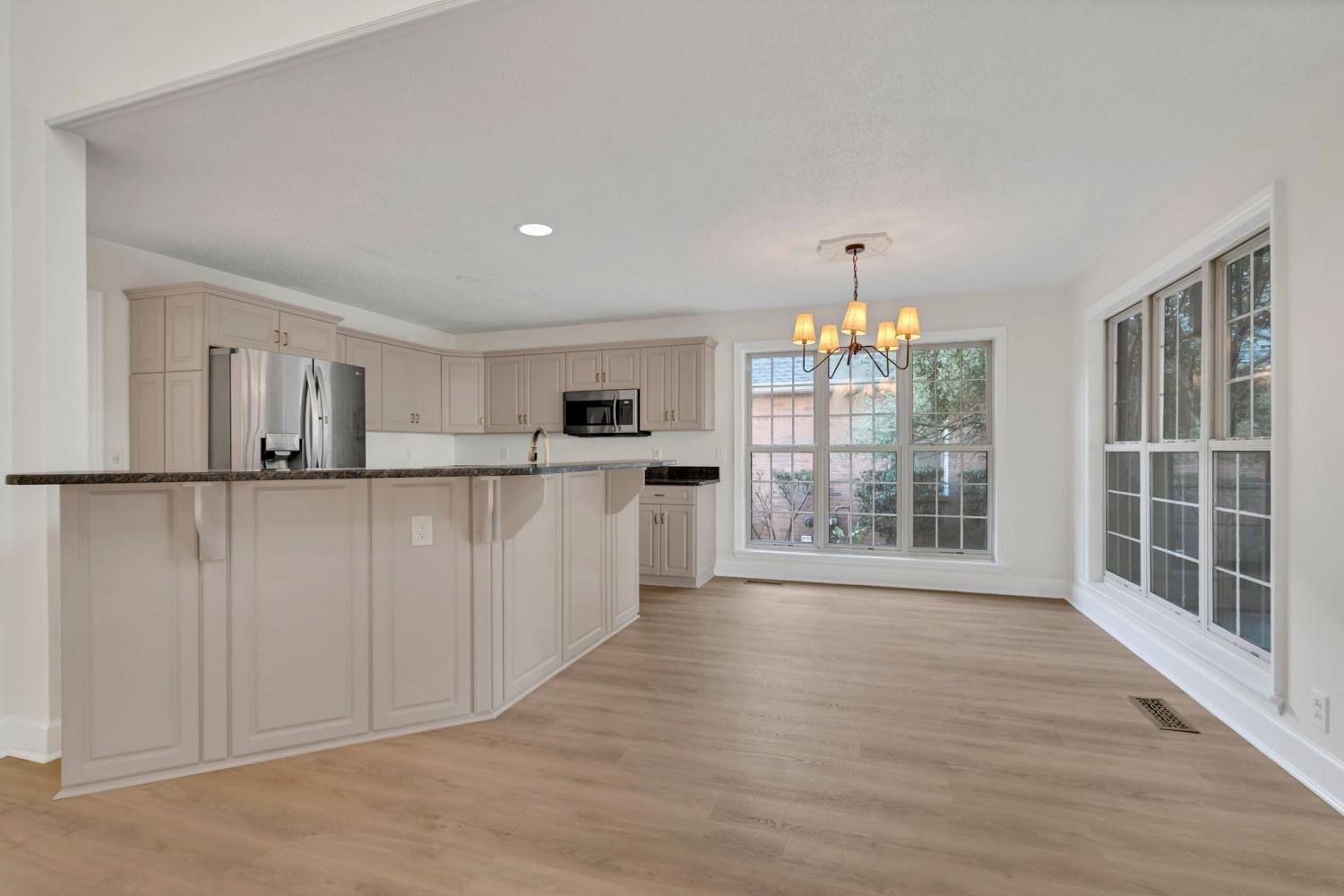 Newly renovated home in sought after Indian Hills Golf Course neighborhood, only a short walk to the neighborhood pool! This well maintained, all brick home features vaulted ceilings in the kitchen and living areas as well as a spacious main level master bedroom with vaulted ceilings. There are three additional bedrooms upstairs providing plenty of room for the whole family. The covered back deck make and well kept yard offer a great place for relaxing and entertaining! All new luxury vinyl plank flooring and carpet as well as paint throughout home makes this home totally move in ready.