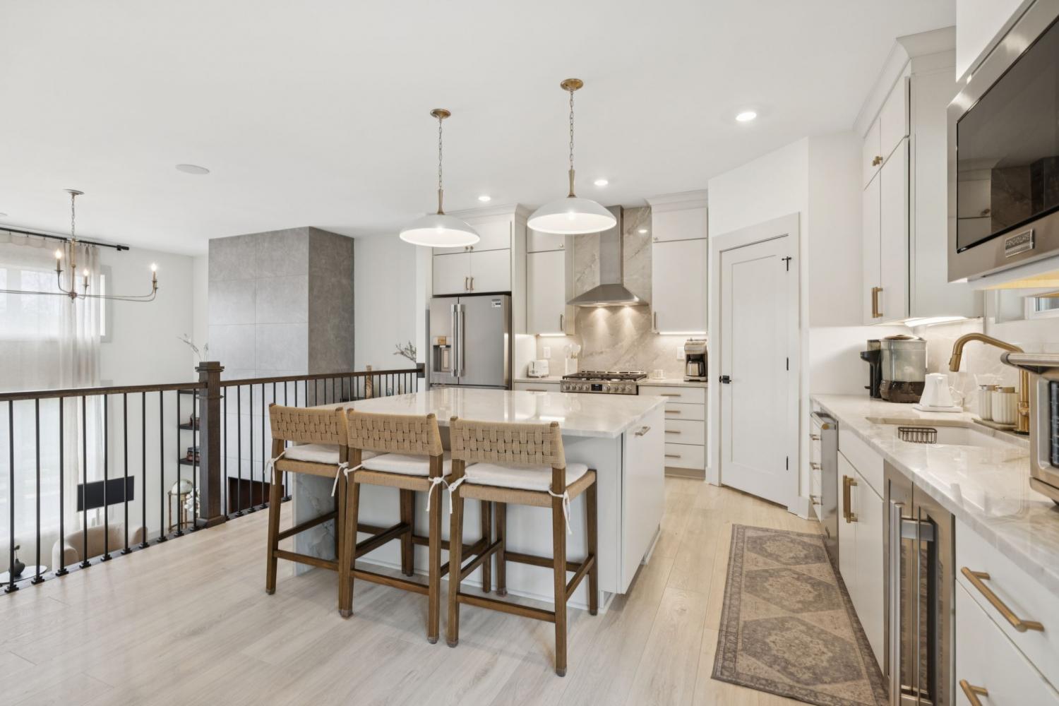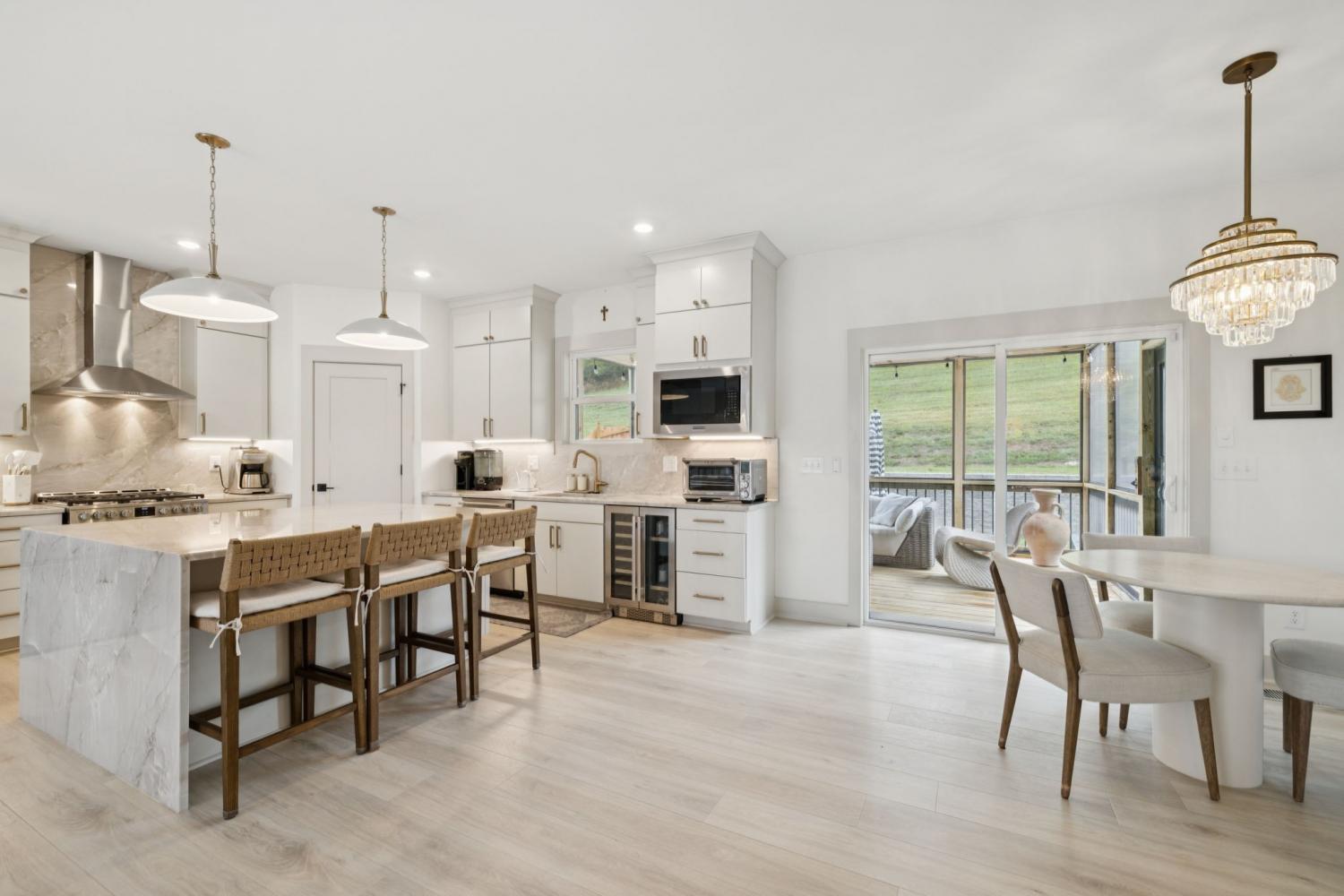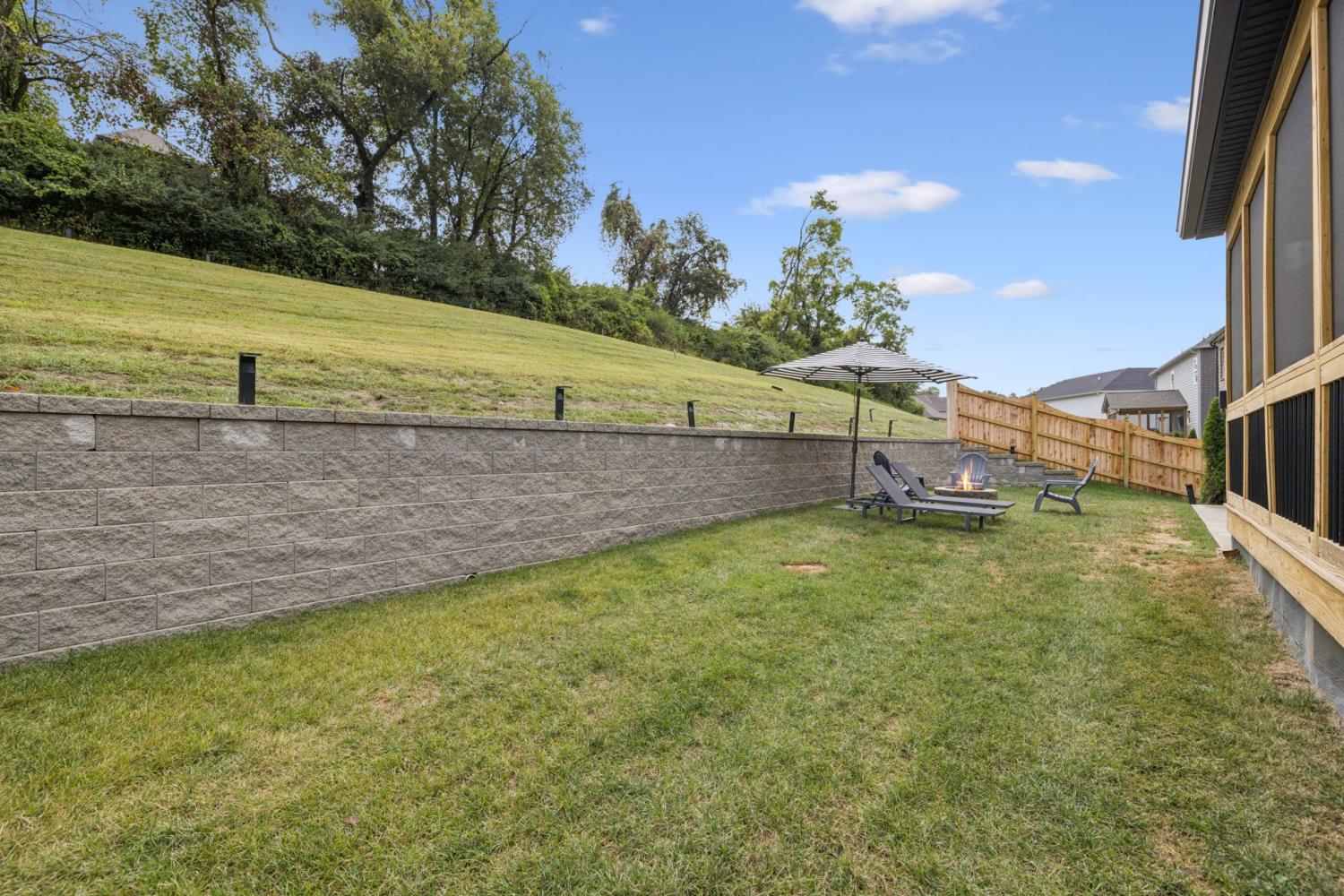 Welcome to this beautifully designed split level home in the sought-after Nichols Vale community, offering thoughtful details and elegant finishes throughout. Step into this impressive two-story foyer that flows seamlessly into an open-concept kitchen, breakfast room, and great room with soaring 15’ ceilings and a striking fireplace with custom open shelving. The kitchen is a chef’s dream, featuring a large island, stainless steel appliances, beverage center, pantry, and ceiling-height cabinetry. The spacious primary suite is a private retreat with double vanities, a standalone soaking tub, and a sleek tile shower. Upstairs, you’ll find three bedrooms, two baths, and a large bonus room, providing ample functional space. Additional highlights include 10’ ceilings on the main floor, 8’ tall doors, bullnose corners, and a classic brick exterior. The home also offers exceptional storage, including an unfinished basement area currently used as a home gym. Step outside to enjoy a screened-in covered deck, patio, fire pit, and a private, fenced backyard backing to green space—perfect for relaxation or entertaining. This home truly blends comfort, style, and functionality in one of the area’s most desirable communities. This home has too many updates to list!! Upgrades list in documents section. Hot tub does not convey.