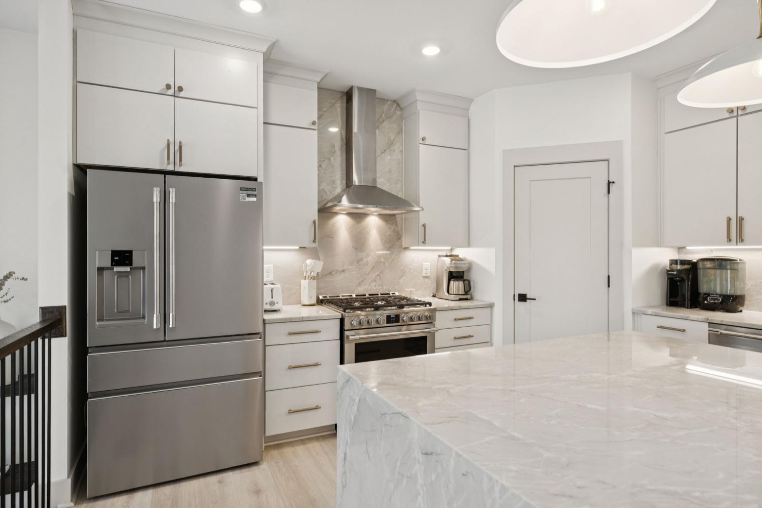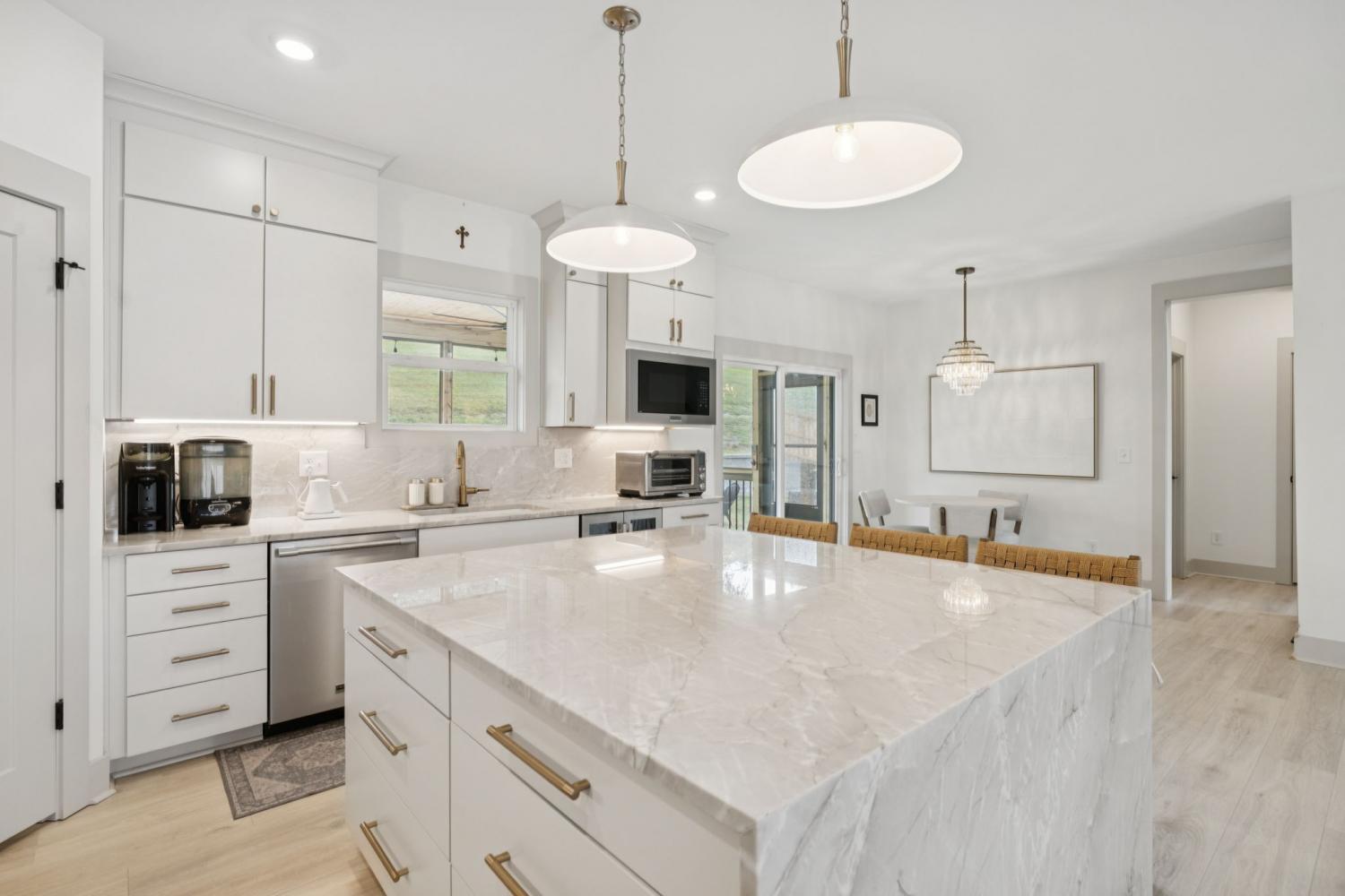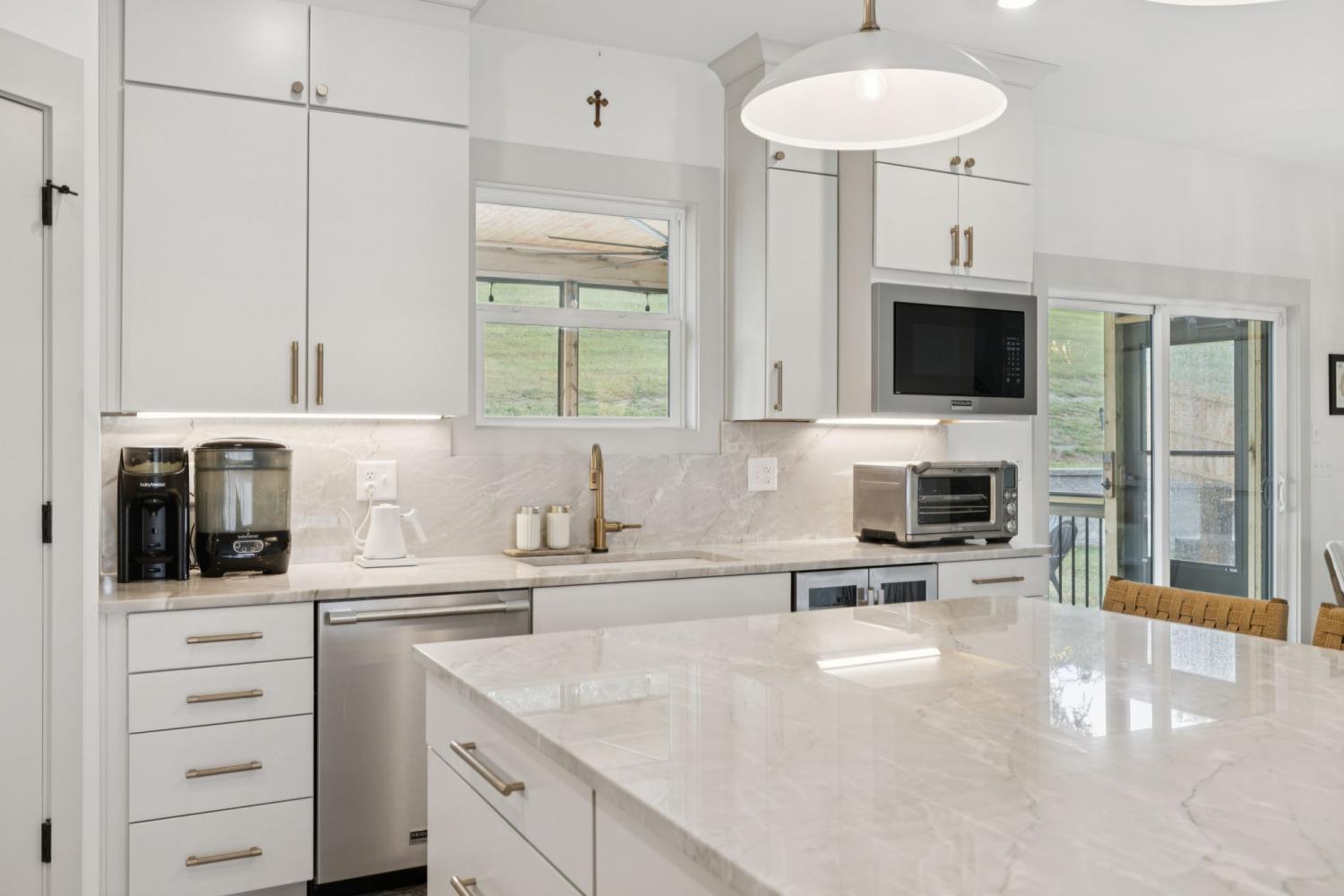 Welcome to this beautifully designed split level home in the sought-after Nichols Vale community, offering thoughtful details and elegant finishes throughout. Step into this impressive two-story foyer that flows seamlessly into an open-concept kitchen, breakfast room, and great room with soaring 15’ ceilings and a striking fireplace with custom open shelving. The kitchen is a chef’s dream, featuring a large island, stainless steel appliances, beverage center, pantry, and ceiling-height cabinetry. The spacious primary suite is a private retreat with double vanities, a standalone soaking tub, and a sleek tile shower. Upstairs, you’ll find three bedrooms, two baths, and a large bonus room, providing ample functional space. Additional highlights include 10’ ceilings on the main floor, 8’ tall doors, bullnose corners, and a classic brick exterior. The home also offers exceptional storage, including an unfinished basement area currently used as a home gym. Step outside to enjoy a screened-in covered deck, patio, fire pit, and a private, fenced backyard backing to green space—perfect for relaxation or entertaining. This home truly blends comfort, style, and functionality in one of the area’s most desirable communities. This home has too many updates to list!! Upgrades list in documents section. Hot tub does not convey.