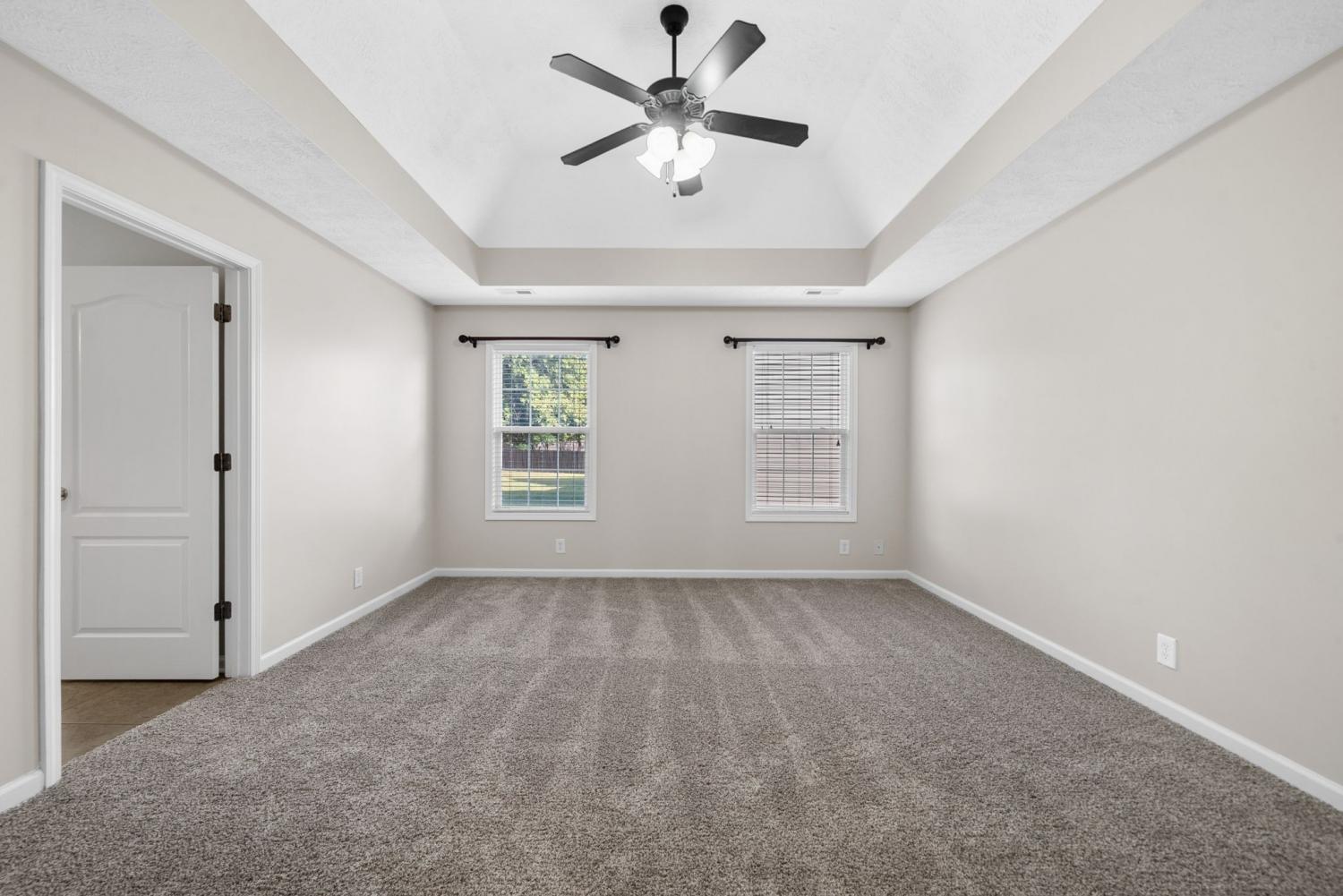 Beautiful home in Riverbend Landing ~ This home offers a split floor plan with all 3 bedrooms on the main level plus a HUGE bonus room with a full bathroom that could be a 4th bedroom ~ Kitchen with granite counters, SS Appliances and breakfast nook ~ Formal dining with wainscoting ~ Living room with soaring ceilings and stone fireplace ~ Primary suite offers tray ceilings, great natural light, 2 walk in closets, double vanities with quartz countertops and jetted tub ~ The covered deck with no backyard neighbors offers a peaceful retreat ~ Home has new carpet and has been freshly painted ~ 2 Car Garage ~ Great location close to I-24, shopping and Rossview schools ~ Small pet may be considered but no cats ~ Application and Qualifications can be found on our website: www.queencityrealty.us ~ Call to schedule a showing