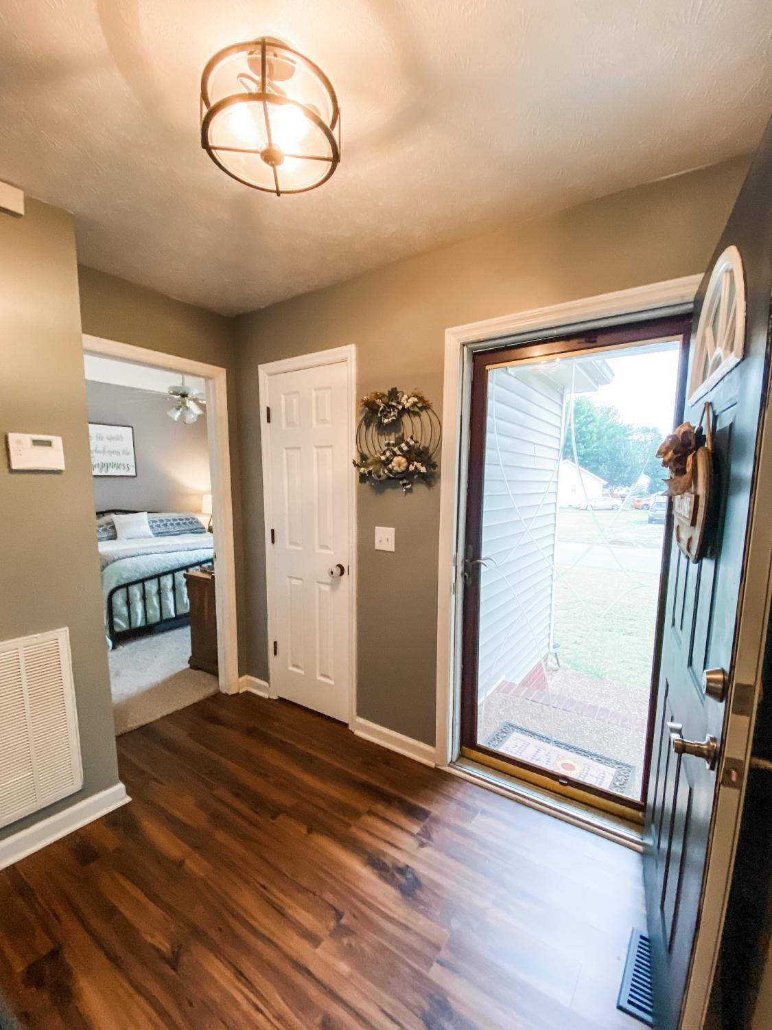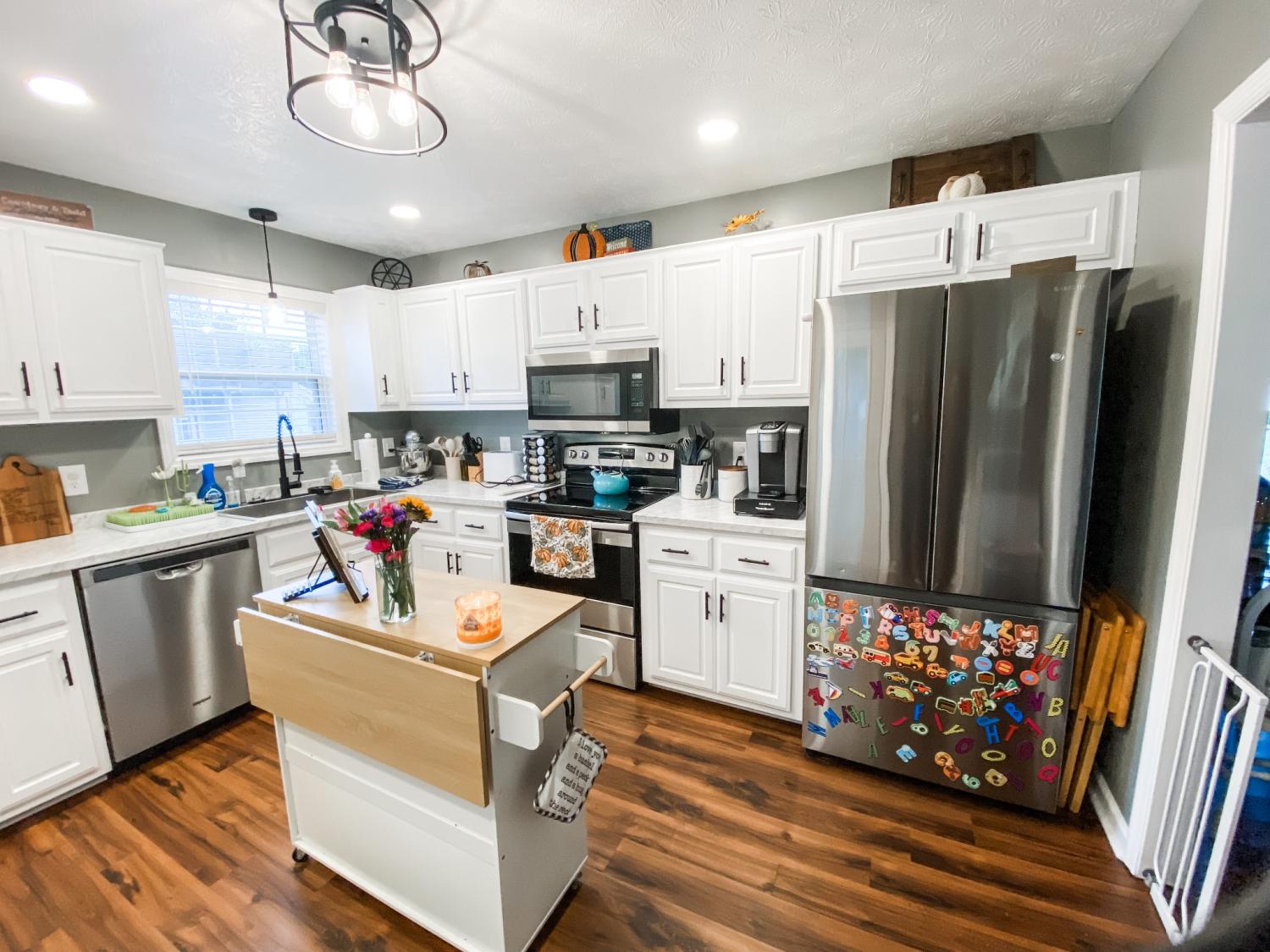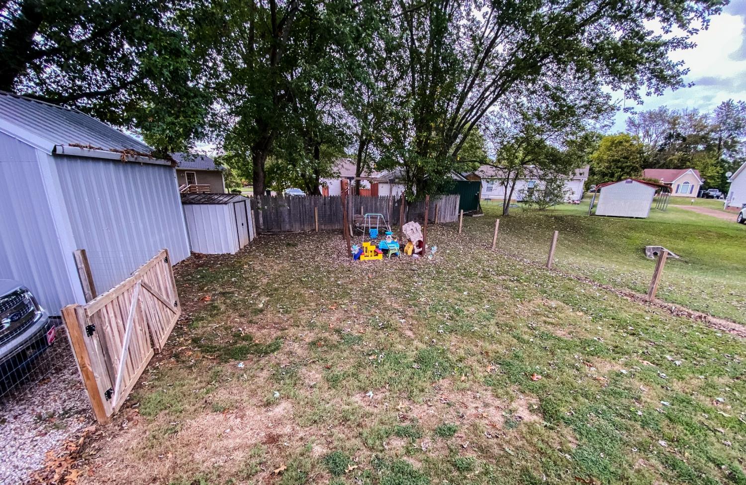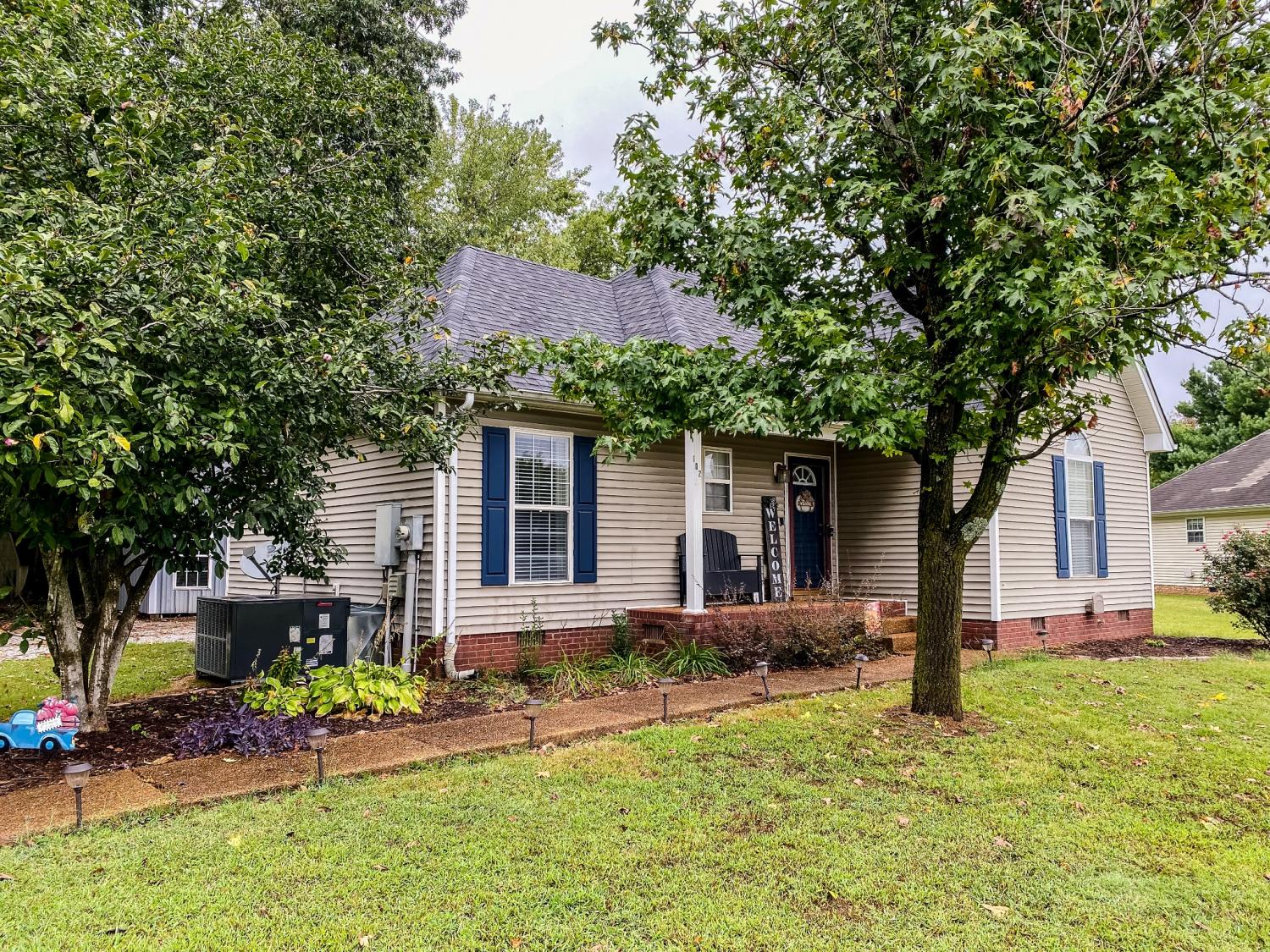 This home comes with so many improvements! Ring doorbell, flood light camera with motion sensor, 2 outbuildings, fenced in back yard, new HVAC, dishwasher, flooring, light/plumbing fixtures, garbage disposal, paint, landscaping, full kitchen renovation, paint, shelving, gravel...you must see! Great starter home in cul-de-sac with split floor plan and large kitchen. Large front and back yard, good school zones, close to town/interstate, and so nice inside! New storm door not installed yet, lots of closet space: entry closet, walk-in master, new kitchen pantry, motion sensor lighting in baby room & entry closet, mature trees!