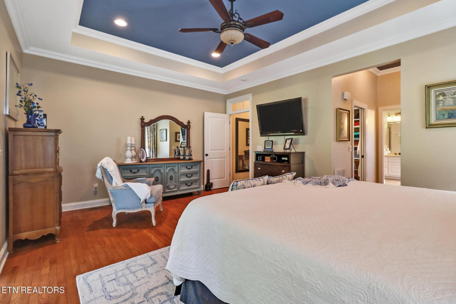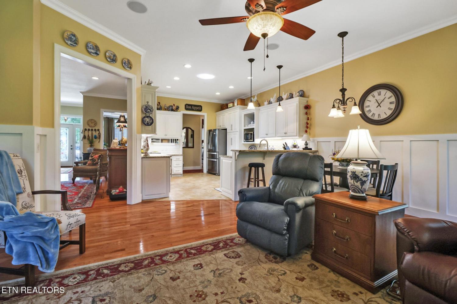 You'll find elegance and sophistication in every inch of this home - both inside and out. As you enter the driveway, you'll be struck by the home's curb appeal. The side-entry garage, stacked stone accents, and lovely landscaping contribute to the appeal. Step into the foyer and you'll find a spacious living room with formal dining room to the left. Notice the attention to detail with a trey ceiling, rich hardwood flooring, crown molding and unique trim which are classic and timeless. The kitchen and spacious family room connect to make this a great space for entertaining. The casual dining area in the family room make this the perfect spot for your Super Bowl party. Adjacent to the family room is a sunroom that looks out over the 9th teebox of the Brae Golf Course. The sunroom (which may be your favorite room) was added in 2024 with a split HVAC for comfort. The master bedroom which also has access to the sunroom is a great place for your morning coffee or evening cocktail. The spacious master bedroom features his and her master closets, and the master bath has a step-in tile shower, double vanities with a clothes hamper built-in and heated, tile floors. The bedrooms are split with spacious secondary bedrooms - one is being used as an office/game room. The laundry room has lots of storage and a sink. The oversized 2-car garage has a workshop, pulldown attic storage and 2 service doors. Other features include plantation shutters, patio and sprinkler system. New roof in 2025. Come view this home and feel the comfortable and welcoming atmosphere.