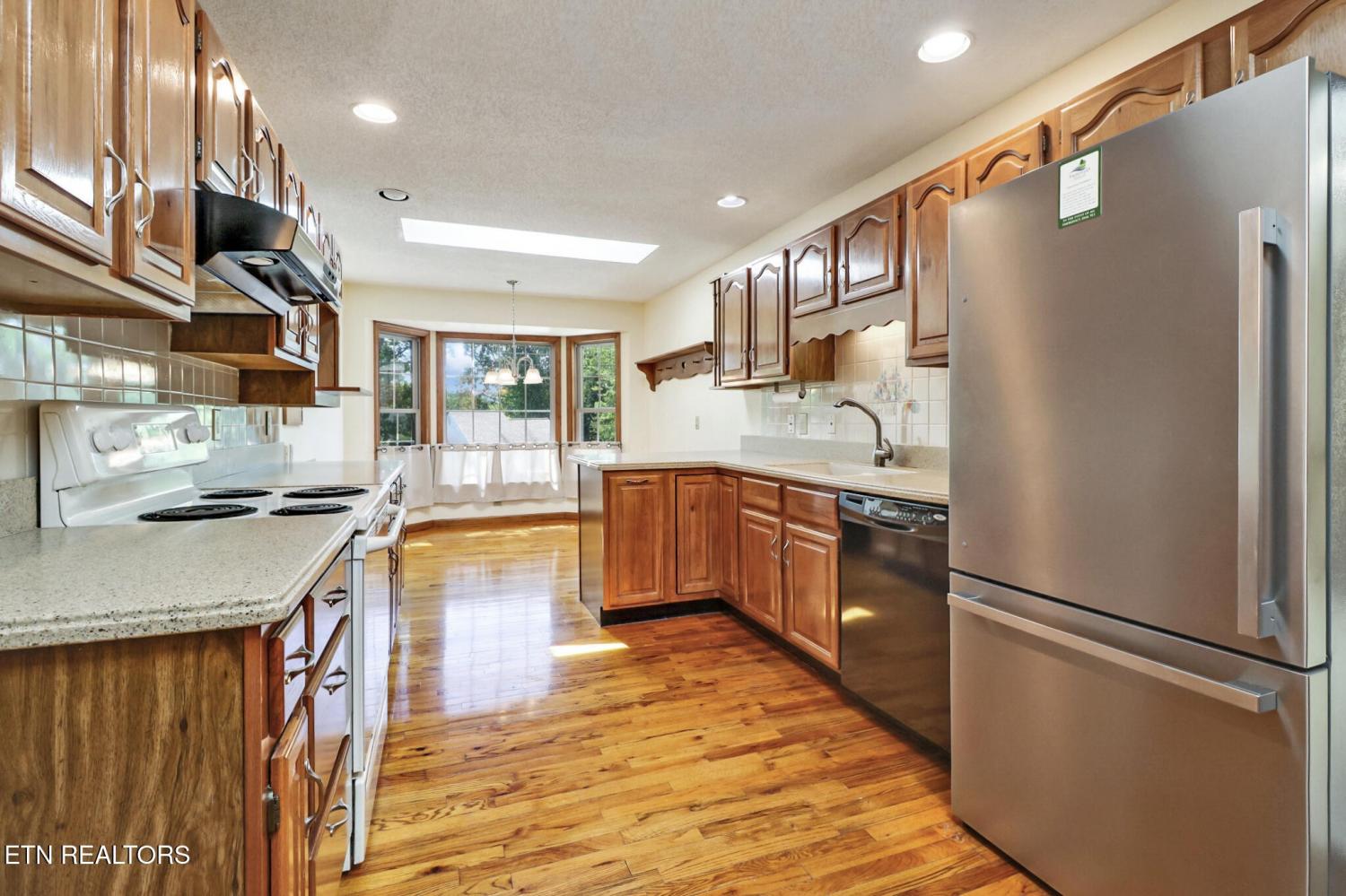 Located in close proximity to the Druid Hill Golf Course with gorgeous mountain vistas, this warm and welcoming ranch-style home has the rustic charm of a mountain retreat. The home features natural wood trim, wood cabinetry and wood flooring that are timeless. The wood beams and shelves along with a stone fireplace and wet bar add visual interest and rustic charm. The home features 3 bedrooms (split) and 2-1/2 baths. The formal living room blends seamlessly with the den. Solid wood pocket doors lead to a formal dining room off the living room. There is also a pocket door that separates the guest wing. This is perfect if you have an elderly parent or adult child living with you - there's room for a sitting area, bedroom and bath. The kitchen is bright and cheery with a skylight and bay window in the breakfast nook. The kitchen features lots of wood cabinetry including a pantry cabinet, solid surface countertops with tile backsplash and hardwood flooring. Down the hallway off the kitchen, the laundry area was relocated to the master bathroom. The water and electric is still there. At the end of the hall is space that could be an office or computer area. There is also access to the master wing through this hall. The master suite features a spacious master closet, master bath with step-in, tile shower, his and her vanities and the washer and dryer. The master bedroom has built-ins and access to a wonderful screened porch (re-screened in 2020). From the screened porch there is access to the large Trex deck (installed in 2020) with just a few steps down to the private back yard. The 2-Car garage has storage and a workshop area. Crawl space is encapsulated with a dehumidifier and sump pump. The hot water heater and HVAC were replaced in Dec, 2024. Please see all updates in the documents. Come take a look!