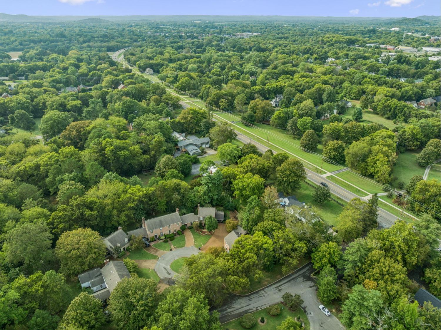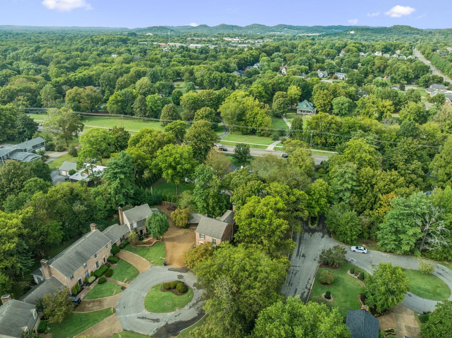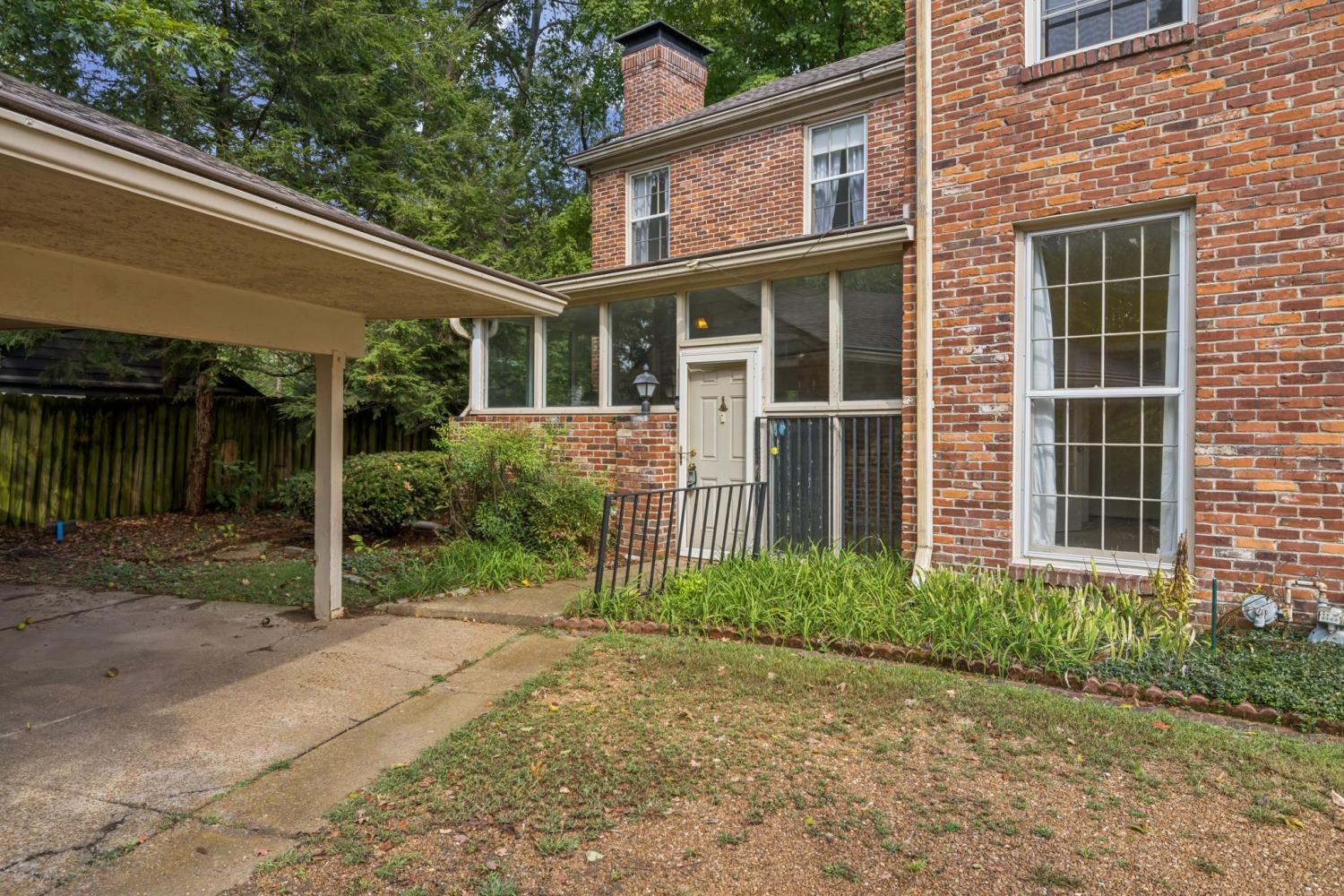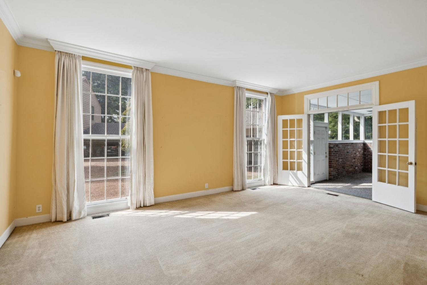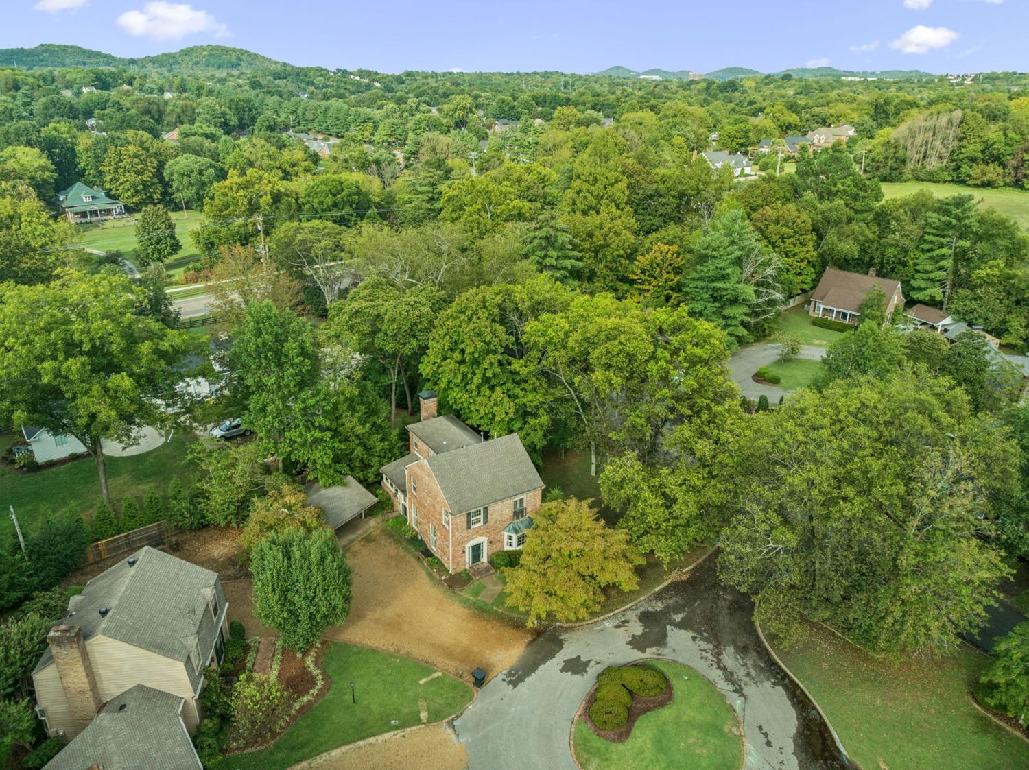 Nestled on a quiet cul-de-sac in the heart of Franklin, this stately brick home offers timeless architecture and an enviable setting. The classic façade, framed by black shutters and a graceful front entry with detailed millwork, sets the tone for the elegance found within. Inside, light pours through expansive windows, illuminating the home’s warm character. Oversized picture windows and bayed alcoves create a sense of openness while offering verdant views of the landscaped grounds. Original hardwood parquet floors flow through the main living spaces, complemented by crown molding and French doors that add architectural refinement. The grand staircase, with its wrought-iron balustrade and richly hued wood treads, anchors the foyer and provides a striking focal point. Just beyond, a formal dining room is bathed in natural light from multiple exposures—an inviting space for entertaining. Living spaces include a fireside den and a traditional mantel, while the sunlit family room is lined with tall windows and double French doors, connecting effortlessly to the enclosed porch. Set on a private lot, the exterior is equally impressive with a brick walkway, mature landscaping, and a detached carport. Surrounded by tree-lined views, the home combines privacy with convenience—just minutes from the vibrant shops, dining, and historic charm of downtown Franklin. This residence presents a rare opportunity to restore and personalize a home rich in character, with distinguished details that simply cannot be replicated today.