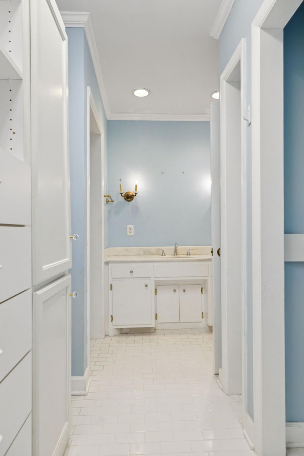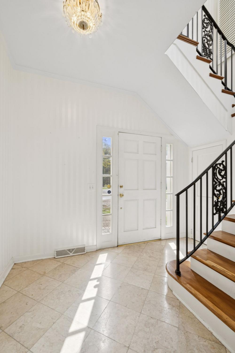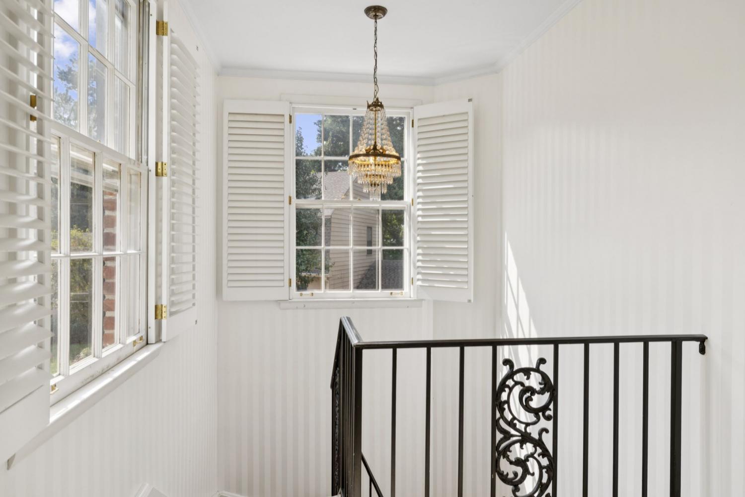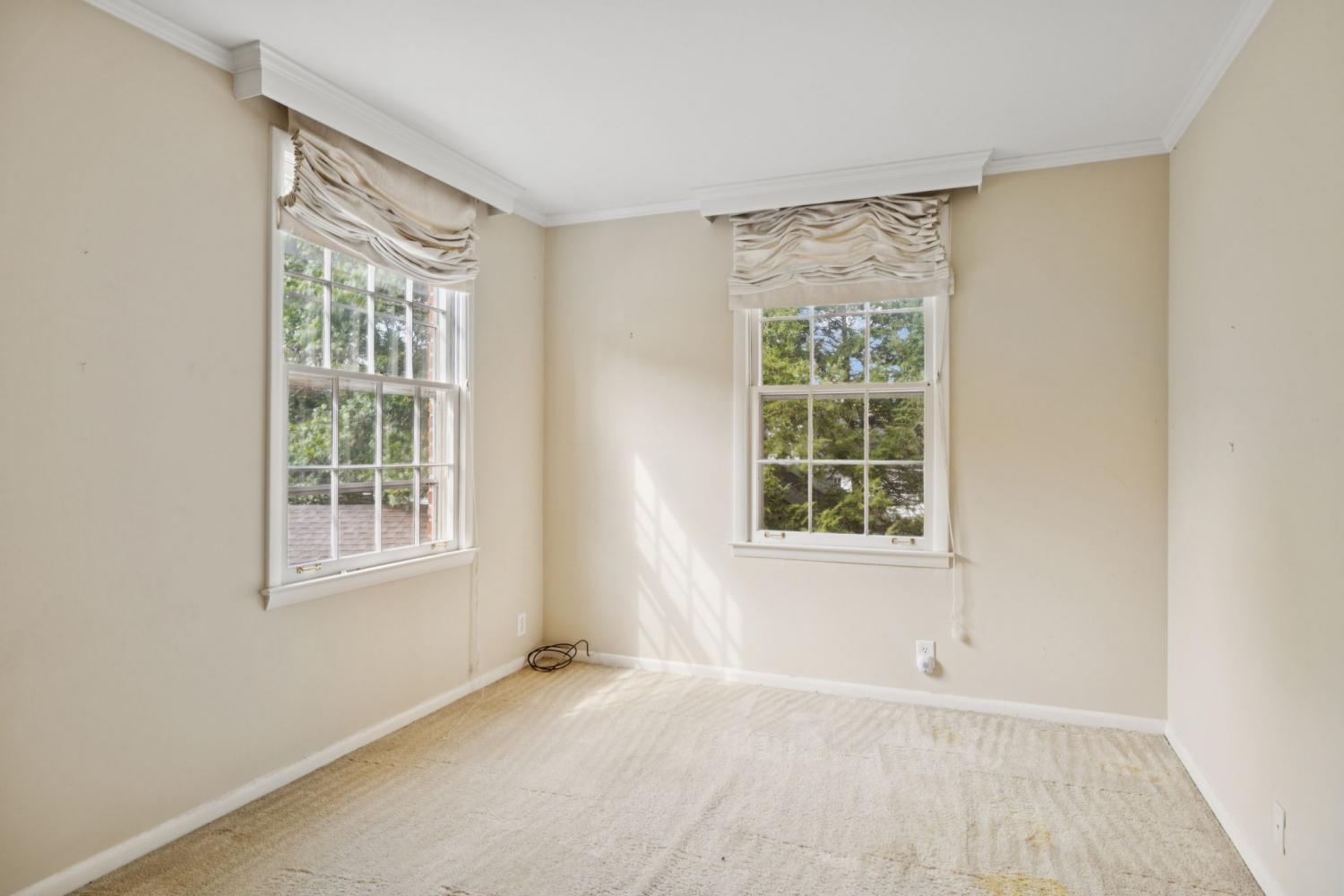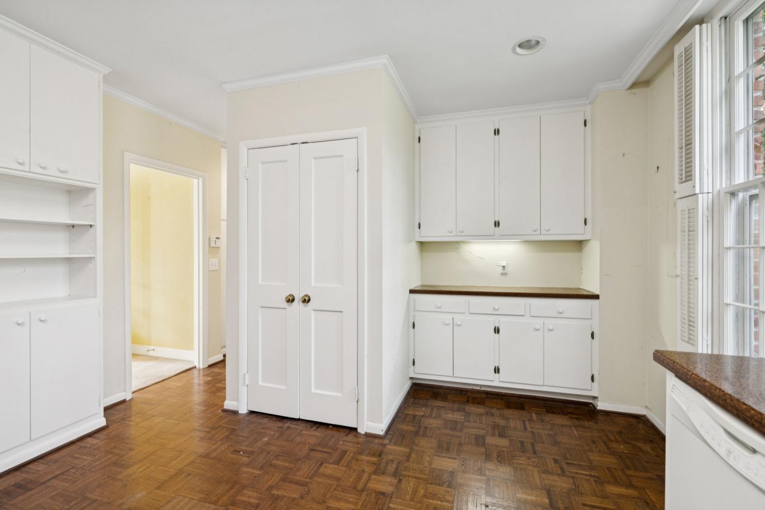 Nestled on a quiet cul-de-sac in the heart of Franklin, this stately brick home offers timeless architecture and an enviable setting. The classic façade, framed by black shutters and a graceful front entry with detailed millwork, sets the tone for the elegance found within. Inside, light pours through expansive windows, illuminating the home’s warm character. Oversized picture windows and bayed alcoves create a sense of openness while offering verdant views of the landscaped grounds. Original hardwood parquet floors flow through the main living spaces, complemented by crown molding and French doors that add architectural refinement. The grand staircase, with its wrought-iron balustrade and richly hued wood treads, anchors the foyer and provides a striking focal point. Just beyond, a formal dining room is bathed in natural light from multiple exposures—an inviting space for entertaining. Living spaces include a fireside den and a traditional mantel, while the sunlit family room is lined with tall windows and double French doors, connecting effortlessly to the enclosed porch. Set on a private lot, the exterior is equally impressive with a brick walkway, mature landscaping, and a detached carport. Surrounded by tree-lined views, the home combines privacy with convenience—just minutes from the vibrant shops, dining, and historic charm of downtown Franklin. This residence presents a rare opportunity to restore and personalize a home rich in character, with distinguished details that simply cannot be replicated today.