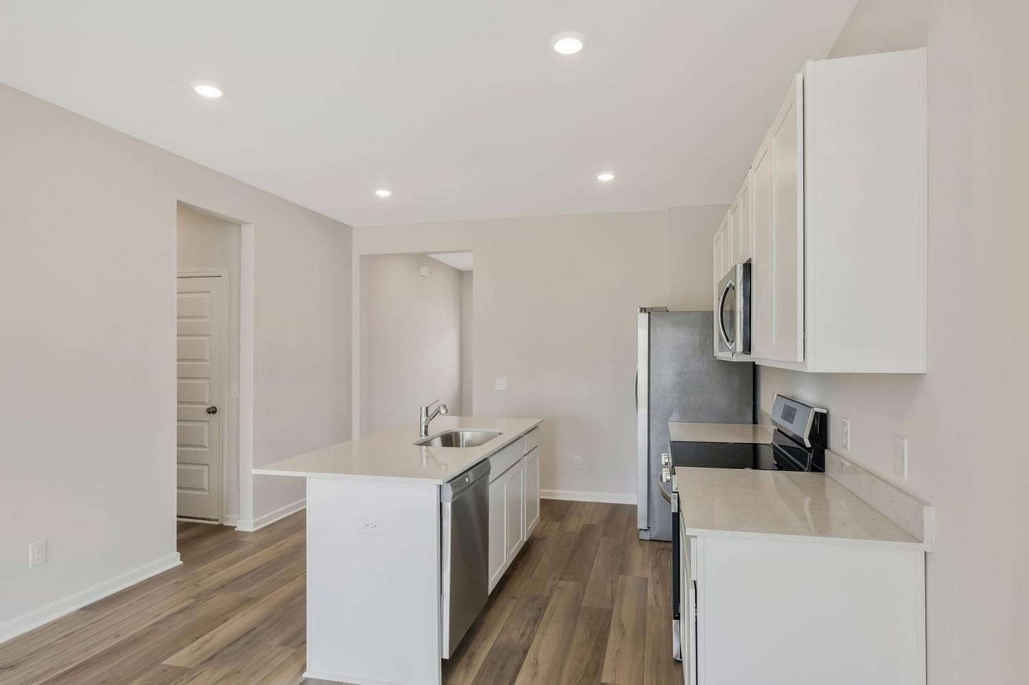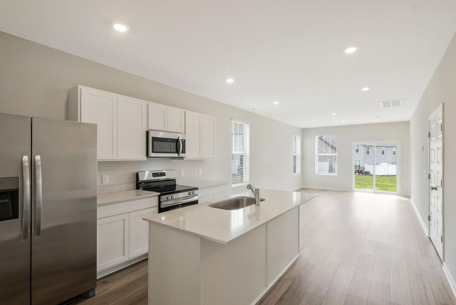 END UNIT IN PRIME LOCATION! Bright and open floor plan with extra windows for natural light. Main-level Owner’s Suite with large walk-in closet. Kitchen features quartz countertops, white cabinets, stainless steel appliances, and hardwood floors. Direct backyard access to community playground. Smart home features include Ring doorbell, security system, Level smart lock, MyQ smart garage opener, and wireless thermostat. Easy access to I-386, I-65, shopping, dining, parks, and groceries. Move-in ready!