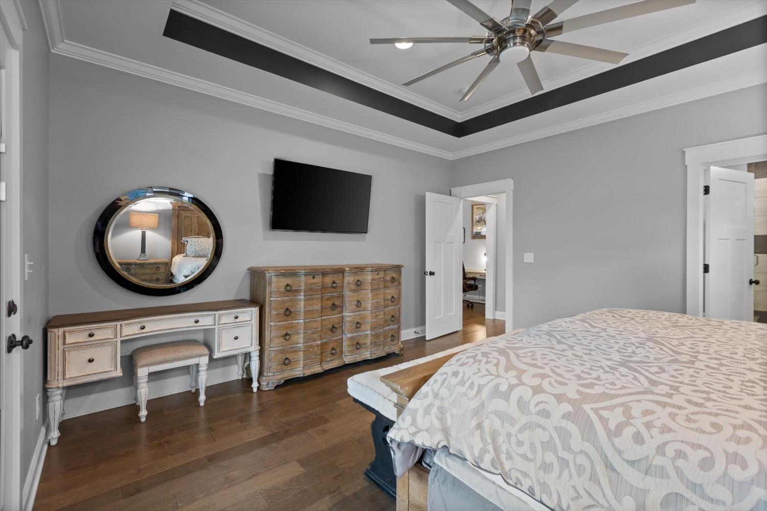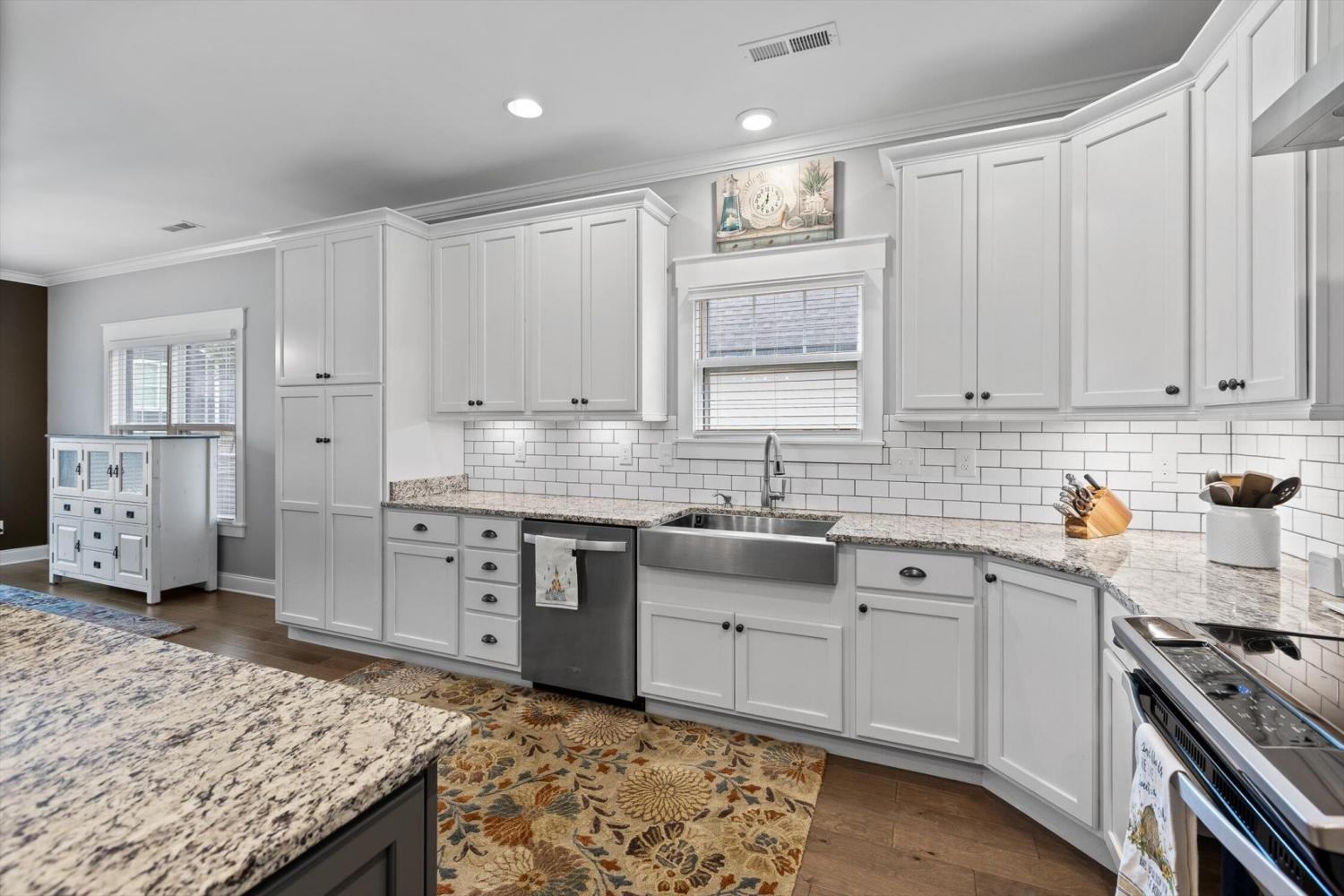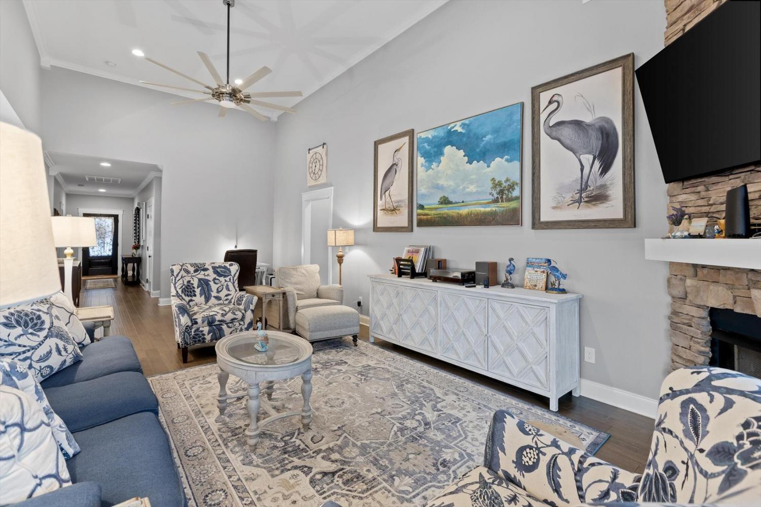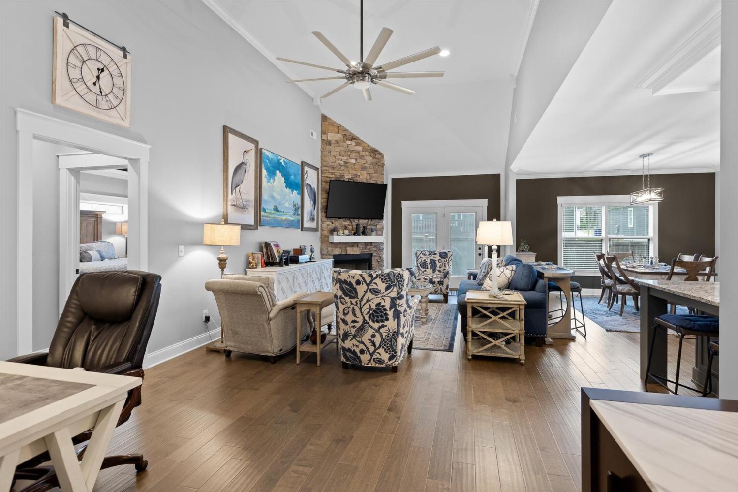 Welcome to one of Cleveland's most desirable neighborhoods! This beautifully appointed home offers an open floor plan with three bedrooms and 3 1/2 baths; all highlighted by a gorgeous gas stone fireplace in the great room, the focal point of the home. The spacious kitchen features a large island, custom cabinetry, granite countertops, and stainless steel appliances—perfect for entertaining. Step outside from the great room to your private deck, ideal for relaxing evenings. The luxurious primary suite boasts a tray ceiling, two walk-in closets, a Bluetooth sound system, and a spa-like bathroom with a huge tiled shower. Enjoy your morning coffee on the covered porch right off the primary bedroom. Upstairs, you'll find another large bedroom with its own full bath, plus plenty of storage and closet space. Make sure this home is on your must see list before it's too late!