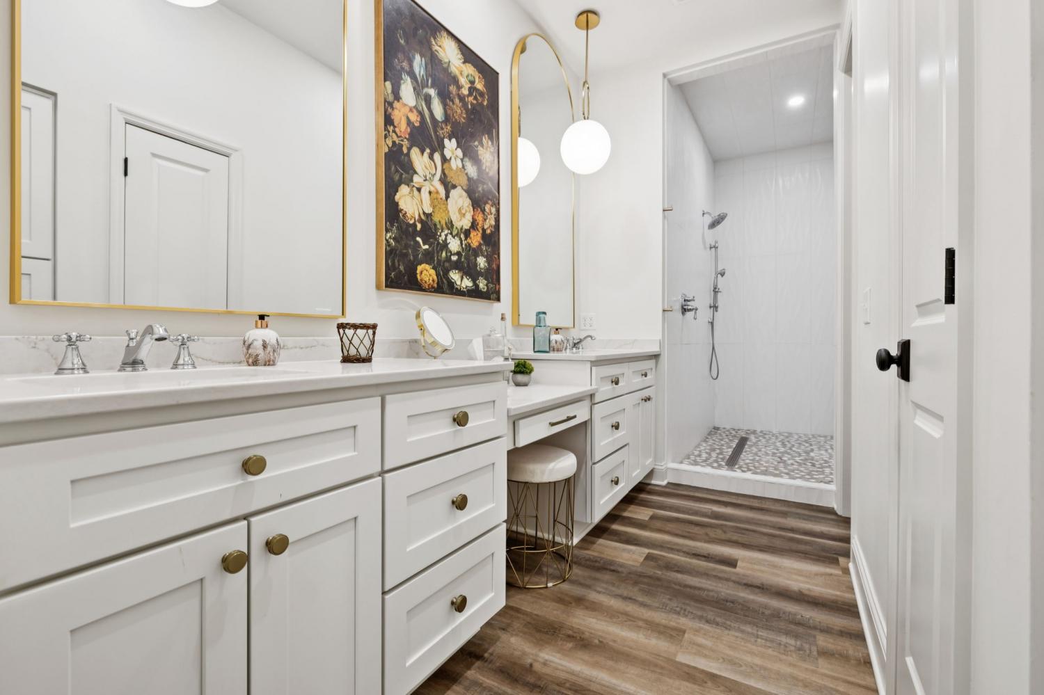 This exceptional luxury home is designed for comfort, entertaining, and multi-generational living. Located in the Highgrove Custom Built section of River Landing, the main level features a recently updated primary suite that provides a serene retreat, along with spacious living and dining areas enhanced by elegant finishes and a fireplace. A full chef’s kitchen makes daily living both effortless and refined. There are 3 additional bedrooms on the main level of this home. The lower level is a destination of its own, offering seamless indoor/outdoor living with 12’ sliding doors that open to the pool and entertaining spaces. A primary suite/guest retreat with spa-inspired wet room, full kitchen, and second laundry make this level ideal for multi-generational living or guests. Outdoors, the property impresses with an 18’x36’ pool, hot tub, and a 28’x30’ covered terrace. The 18-foot outdoor kitchen is equipped with a grill, 18” burner, beverage fridge, ice machine, and sink—perfect for hosting gatherings. Landscape lighting and irrigation in front and back ensure year-round beauty and ease of care. Additional highlights include: two fireplaces, two full kitchens, two laundry rooms, 5 full baths/2 half baths, built-in cabinetry in the upper and lower garages, 3 garage bays (one bay gives direct access into the finished basement), a 400 AMP panel box, a central vacuum system, and a tankless water heater. With dual primary suites, expansive entertaining areas, and thoughtful upgrades throughout, this home offers a rare combination of luxury, comfort, and versatility. There is no sign in the yard. Dining room chandelier does NOT convey. Professsional interior photos coming soon.