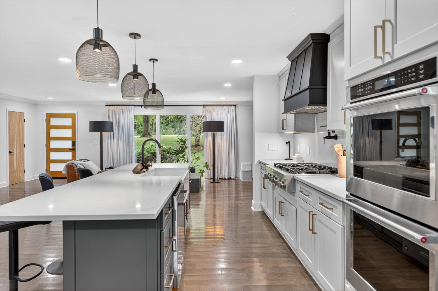 Incredible combination of tranquility, luxury, convenience, privacy, and endless possibilities await the next owners of this precious property. Wildlife abound in this oasis surrounded by Radnor Lake State Natural Area while conveniently located only a few short miles to downtown Nashville. The home sits on over an acre with a fenced in back yard. Plenty of room to add a swimming pool and custom back yard features for entertaining. This spacious and inviting home has been completely remodeled (Fall of 2023) with modern upgrades throughout while still maintaining a warm interior that boasts three wood burning fireplaces and a wide open great room that everyone can enjoy! The remodeled Kitchen is fit for the finest Chef with ample counter space and what seems to be endless cabinets and amenities. Walk down a few steps to a separate family room with a fireplace and sliding door to the outside patio. This level features a custom home studio built with professional standards, two private bedrooms and a full bathroom. Walk up a few steps the the enormous primary bedroom, brand new custom closet, and well appointed primary bath. Also on this level is a bedroom and a second full bathroom. This home is a split level with a main floor over a crawl space, a lower level on slab, and the upper level contains the primary bedroom, the second bedroom, two full bathrooms and the large master suite custom closet.