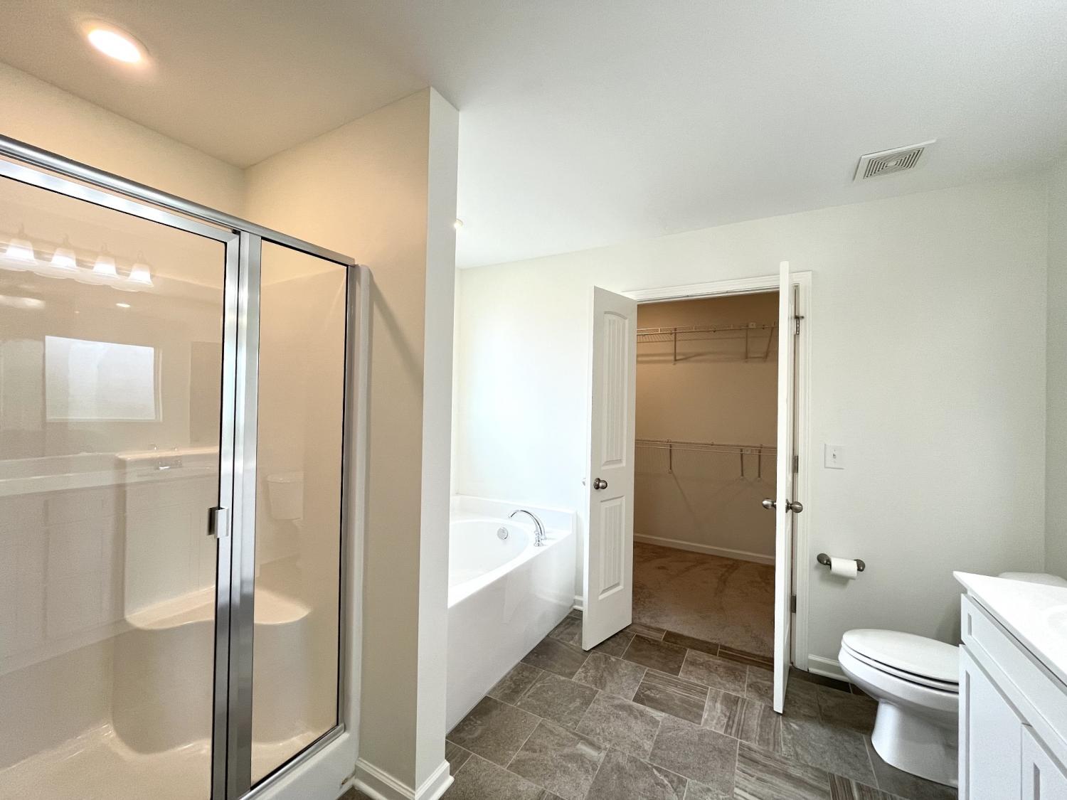 Spacious 4-bedroom, 2.5-bath home with an open floor plan and upgrades throughout. The kitchen features granite countertops, stainless steel appliances, and a large island, flowing into the living area with plenty of natural light. A formal dining room with wainscoting adds extra space for meals or flex use. Upstairs offers all bedrooms together plus a vaulted bonus room and convenient laundry. The primary suite includes a tray ceiling, walk-in closet, double vanities, soaking tub, and separate shower. Enjoy a covered front porch, 2-car garage, and backyard with patio.