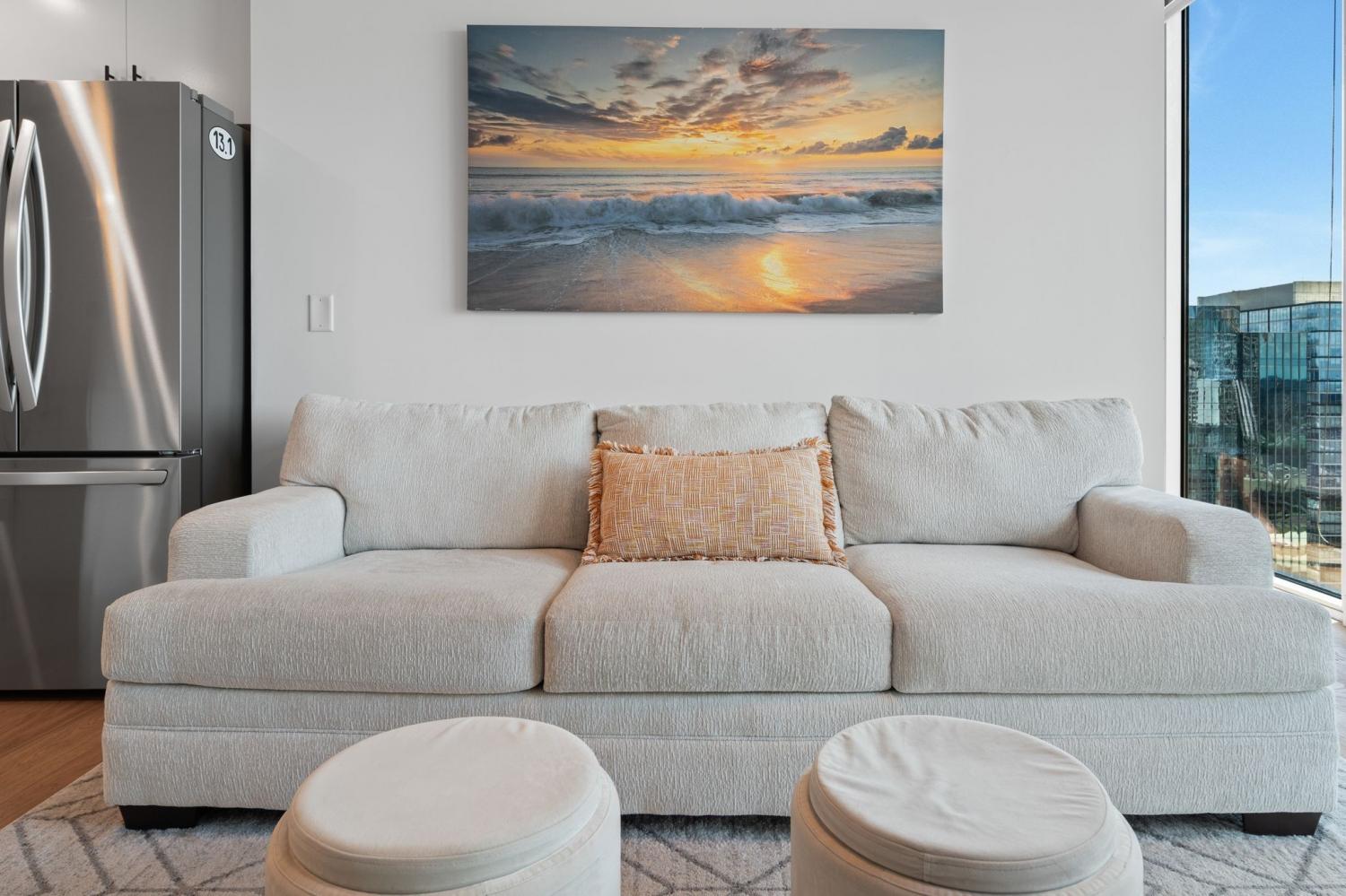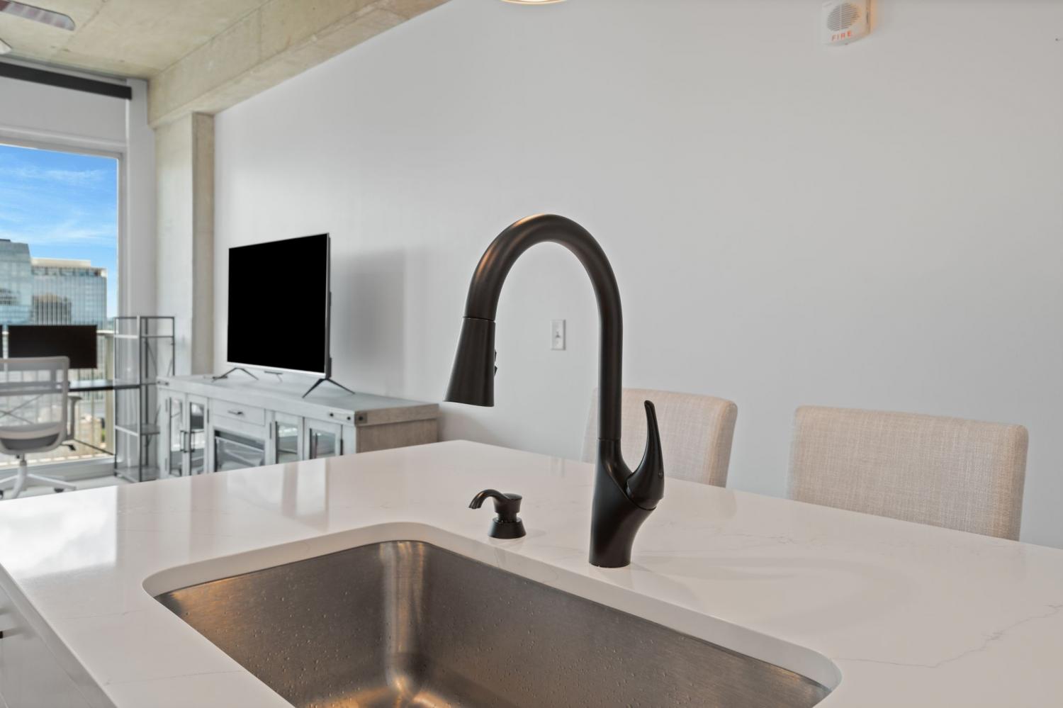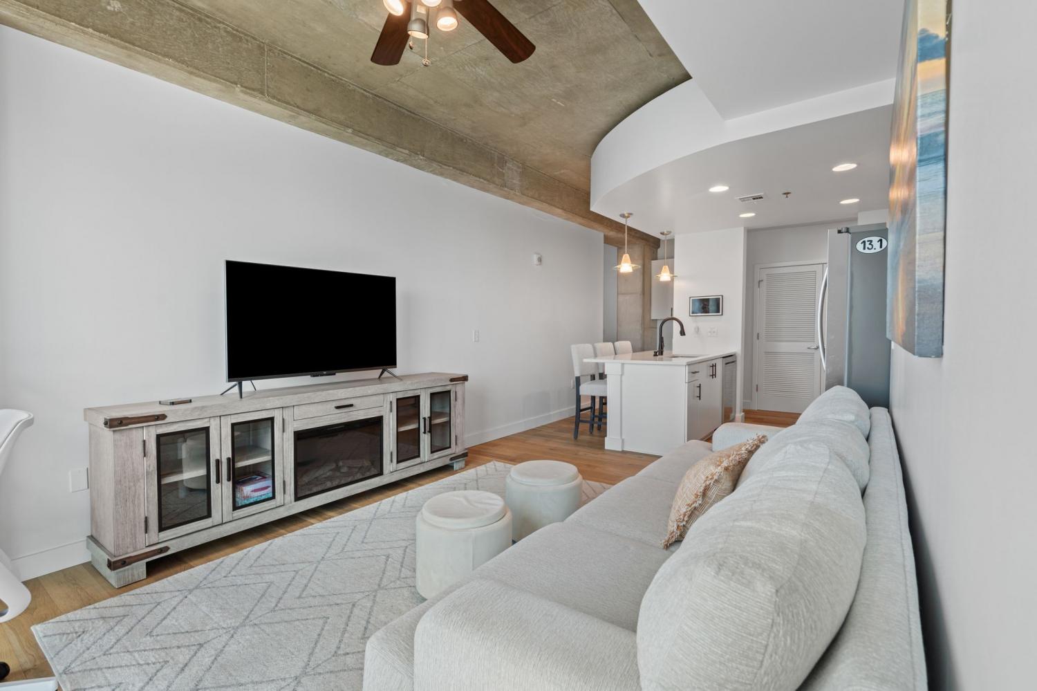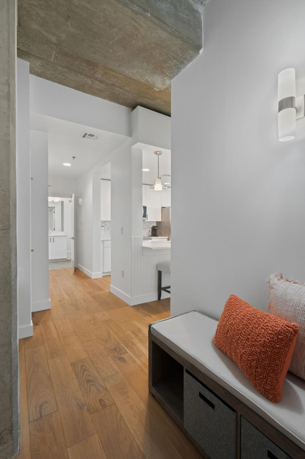 Up in the clouds sits unit 2504 in the Viridian. This west facing unit overlooks the historic church next door and has amazing views of the skyline looking due west, north and south. Just steps from Broadway, the Nashville Predators arena and Printers Alley, come see what this unit has to offer. Recent renovations including fresh paint, elegant light hardwood floors, one level quartz countertops with bar top seating and farm sink, brand-new state of the art stainless steel LG appliances, new custom blinds, Nest thermostat, custom-built closets, new tile in bathroom, and a convenient desk space, plus washer & dryer. New water heater in 2021. 24/7 security and concierge, rooftop pool, workout room and club room on 31st floor. 1 deeded parking space.