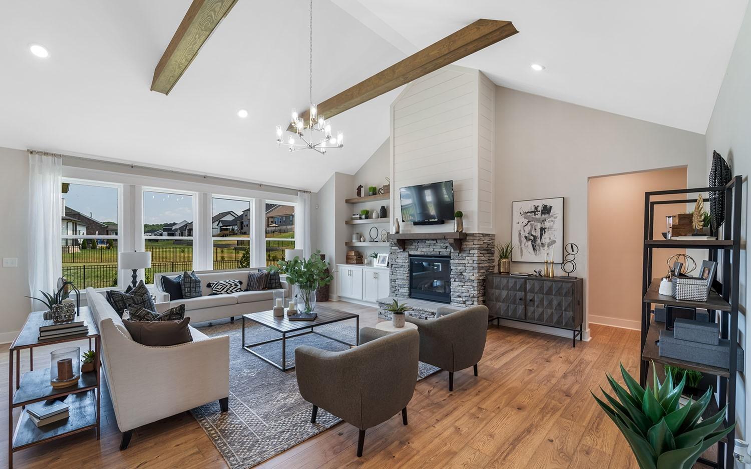 The Cottingham plan by CastleRock Communities is a charming sanctuary that you will be sure to love! Features 1/2-acre Lot, over $90,000 in Upgrades and options, Vaulted Ceilings and Wood Beams in Great Room and Kitchen, Level 3 Cabinets throughout with Soft-close Cabinets and Drawers, Upgraded Quartz, Stone Fireplace, Dual Closets in Owner's Suite, Craftsman Trim Package, Upgraded Lighting, Covered Deck, and a 3-car, side-entry Garage.