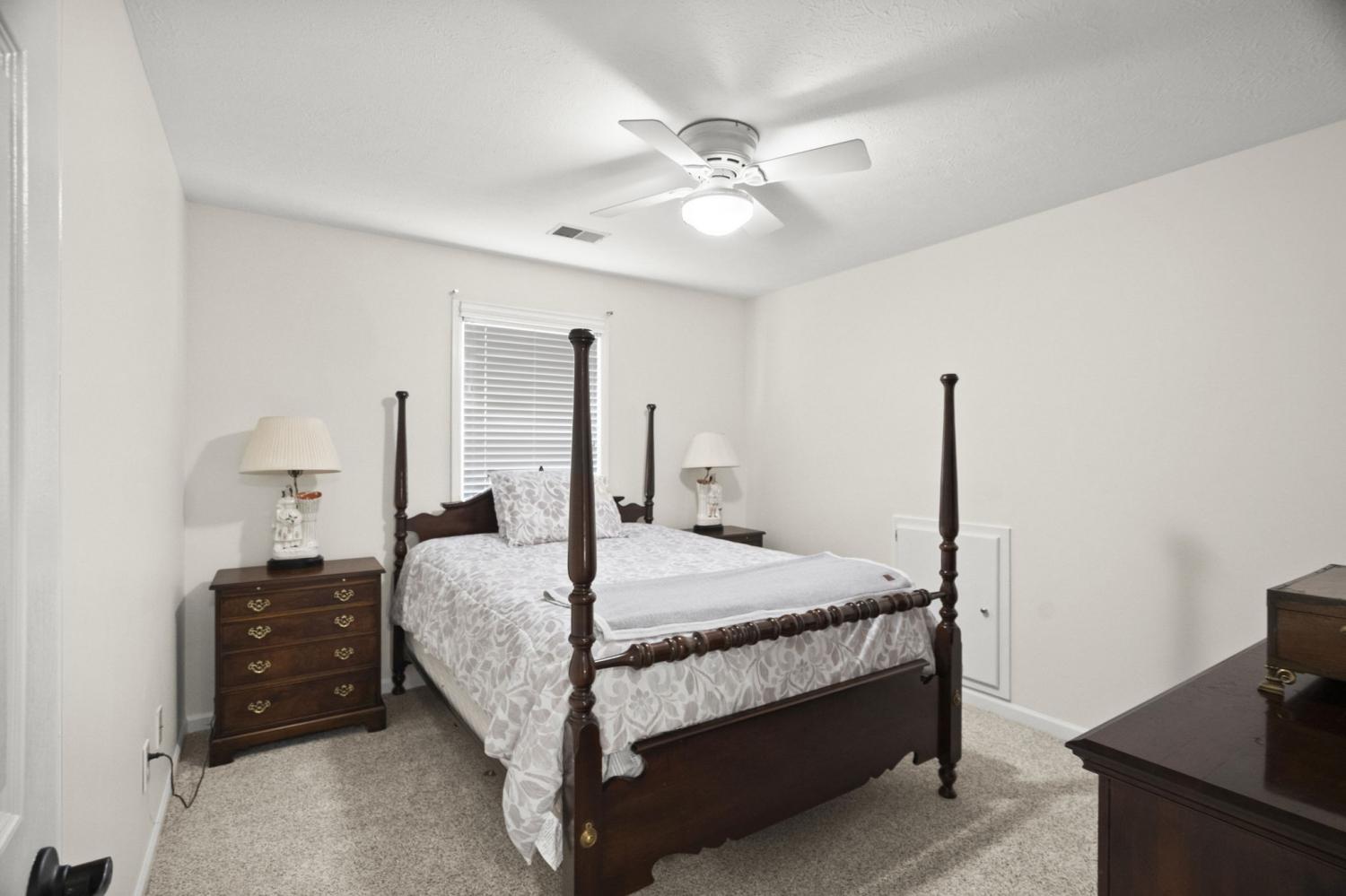 This stunning all brick and stone property offers timeless elegance and modern comfort. Boasting over 2,800 square feet of meticulously designed living space, this 3-bedroom, 2.5-bath home is perfect for families of all sizes. The chef's kitchen features granite countertops, custom cabinetry, and double gas ovens, making it an entertainer's delight. Granite also graces the bathrooms, adding a touch of luxury. The spacious interior is highlighted by new flooring and lush throughout, offering a fresh and move-in-ready feel. Step outside and enjoy your private oasis! The home includes a built-in salt water pool with a heat pump, still time to enjoy in the cool fall temps. The screened-in deck overlooks serene farmland, providing ultimate privacy. Located on a quiet cul-de-sac, this property offers the perfect balance of tranquility and community. Additional features include walk-in attic storage, ensuring ample space for all your belongings and a built in storm shelter in the garage for added peace of mind . All of this is situated in the highly sought-after Liberty Creek School District, making it an ideal location for families. Don't miss your chance to own this exceptional property—schedule your showing today and start living the life you've always dreamed of!Up to 1% lender credit with use of HOMEBUX.