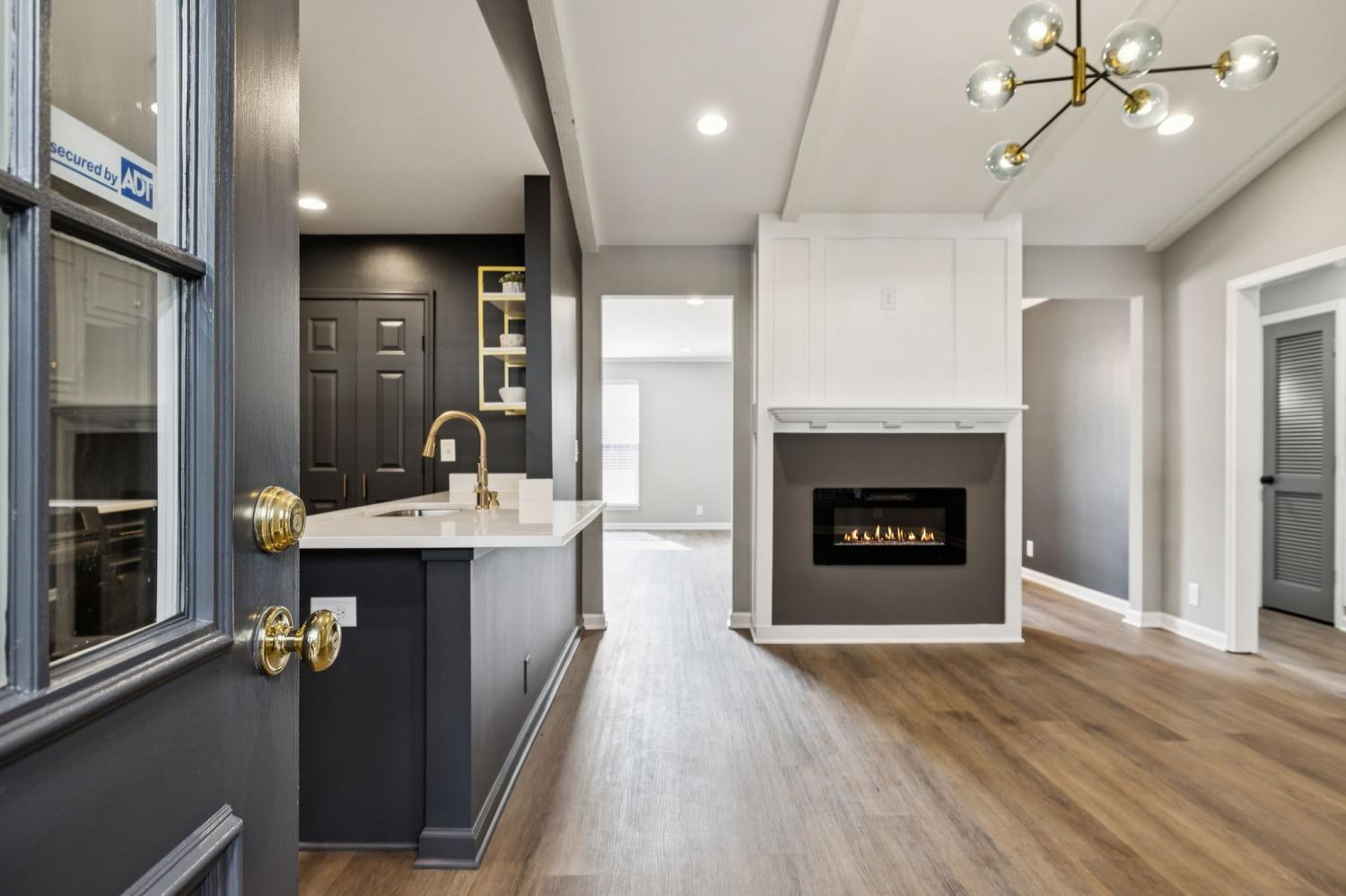 This modern River Plantation knockout boasts single-level living and fresh, fresh finishes! You will love the sleek feel of the dramatic kitchen with new stainless appliances...the Frigidaire Gallery induction range, microwave, dishwasher, GE cafe-style refrigerator. Gorgeous white quartz countertops glow under the motion-activated undercabinet lighting. Custom-designed kitchen/nook banquet. The adjacent vaulted den features stylish lighting and a warm electric fireplace w/remote. Freshly painted with new, recessed LED lighting, sharp fixtures, and new LVP flooring throughout. New windows. Check the updated brick accent wall inside the covered rear patio...lookin' good! This unit is a coveted, garden/end unit, so your HVAC unit does not sit running constantly in your patio area...so only good vibes out back when relaxin' with friends and family! Two-car covered rear-entry parking, attached storage building. SO close to Chick-fil-A, Publix, Sprouts, Desanos Pizza, Honeyfire BBQ, Jonathan's Grille, Tazaki's, Chicken Salad Chick, AMC Bellevue 12 theater, and more!