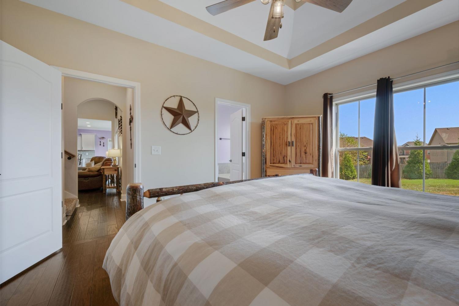 Tucked away on a peaceful cul-de-sac in the highly desirable Farmington community, this meticulously maintained, ranch-style home is located within the new Kirkwood School District and checks all the boxes for layout, location, and lifestyle. Step inside to find rich hardwood floors flowing throughout, into an open-concept living area designed for both entertaining and everyday living. The heart of the home is the chef-inspired kitchen, complete with a massive center island, custom cabinetry, a walk-in pantry, and modern finishes. Convenient, first-floor living sets this home apart, with the gorgeous master suite and two generously sized bedrooms completing the first floor. Upstairs, you'll find an additional 400+ square feet of living space, which impressively includes a fourth bedroom, full bathroom and large bonus area. The options are limitless: create a teen retreat, multigenerational suite, home office, or private primary getaway. Outside, enjoy nearly ¾ of an acre (one of largest in Farmington) with a fenced-in backyard, ideal for kids, pets, or backyard entertaining. The oversized lot provides endless possibilities—gardening, play space, or even your future pool. This is more than just a house—it’s the perfect place to call home in one of Clarksville’s most sought-after neighborhoods and only 45 minutes to Nashville International Airport!
