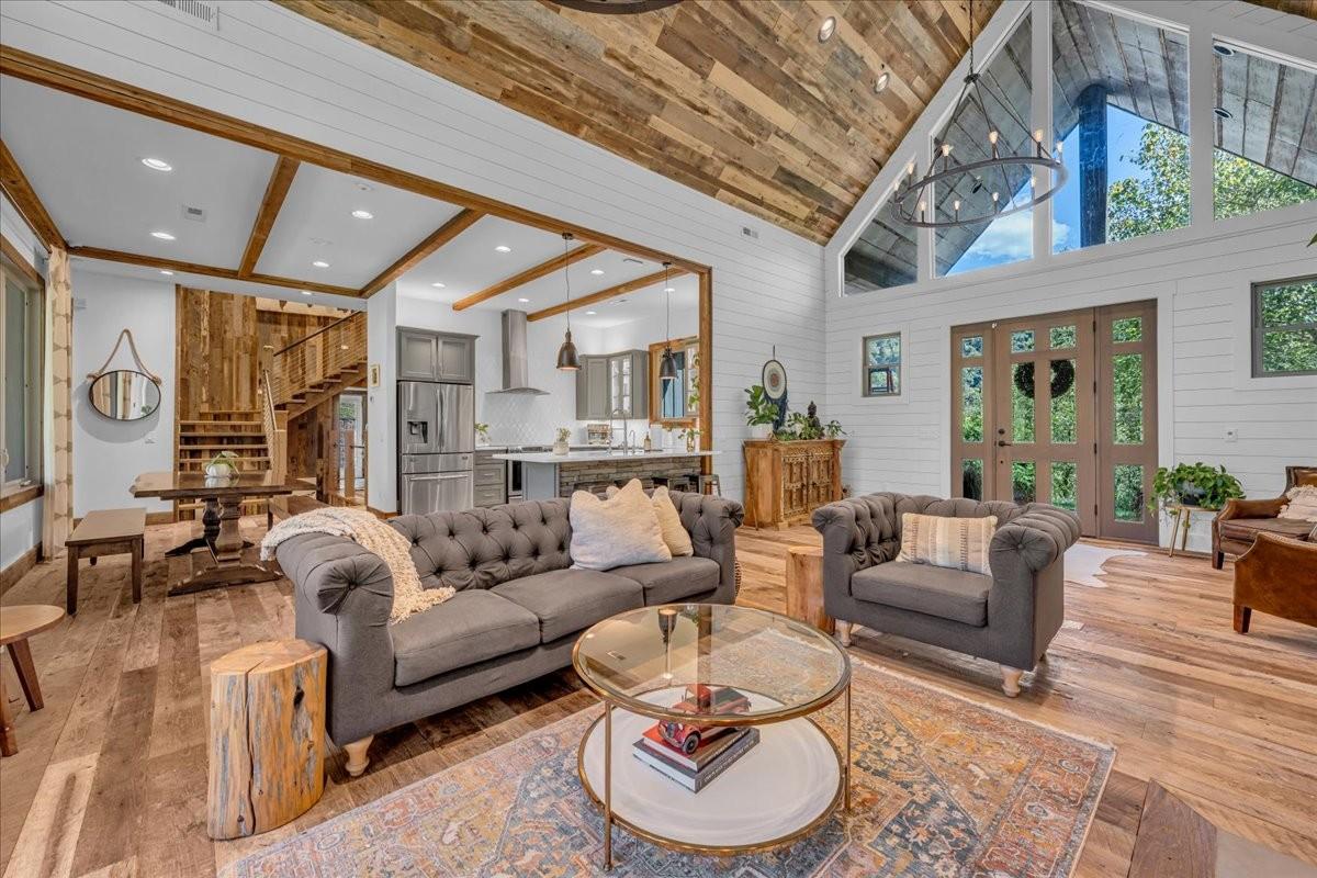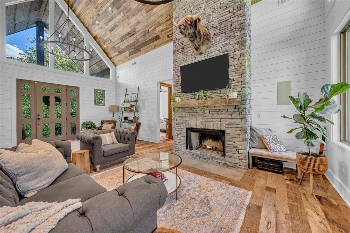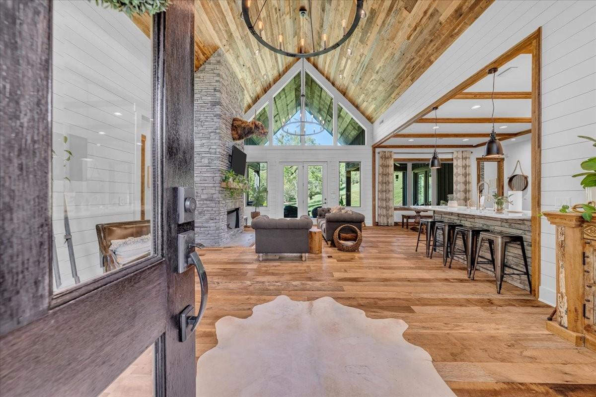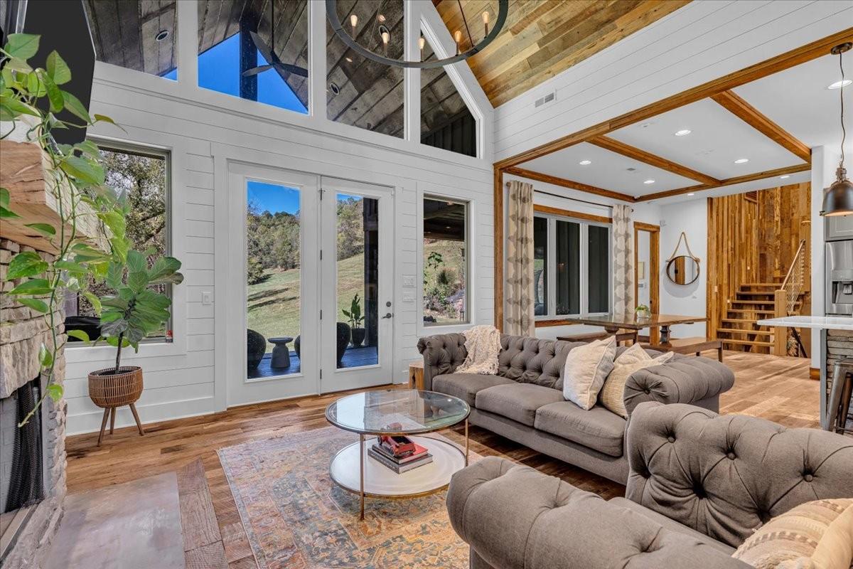 Discover a rare retreat just minutes from Cordell Hull Lake, a custom 2018 home on 76 stunning acres with a spring-fed creek, waterfall, two ponds, and miles of trails. This property blends resort-style living with modern convenience, offering the perfect balance of privacy, recreation, and accessibility. Located only 1 hour and 20 minutes from Nashville International Airport, it’s easily reached while still feeling completely secluded. The home offers 4,082 sq ft of thoughtfully designed space. The main kitchen features Samsung and Bosch appliances, induction cooking, instant hot water, and custom cabinetry with soft-close drawers and under-cabinet lighting. A full summer kitchen with additional refrigeration, 50-lb ice maker, and convection/air fry oven makes entertaining easy. The primary suite includes radiant floor heating, dual shower heads with rainfall option, and spa-like finishes. A dedicated wellness/gym room has dual fans, impact-resistant flooring, and its own HVAC system with smartphone control. The lower level offers a theater room with surround sound, stained concrete floors, plus a large underground storage area and a safe room. Outdoor living is maximized with expansive decks, patios, and an oversized two-car garage with Tesla charging. The 80’ x 40’ barn, fully renovated in 2018, includes water, 200-amp electric service, RV hookups, pump-out station, six overhead doors(2 electric), LED lighting, and a full security system with high-speed internet extended via underground conduit. Additional upgrades include wood floors and trim reclaimed from a 100-year-old barn on the property, a whole-house water filtration system, Cat 6 wiring, fiber internet, four HVAC systems, spray foam insulation, and app-controlled smart lighting and thermostats. The home is secured with cameras and monitoring inside and out. Whether ATV riding, skeet shooting, hiking, or simply enjoying the views and wildlife, this one-of-a-kind property! Homestead ready!
