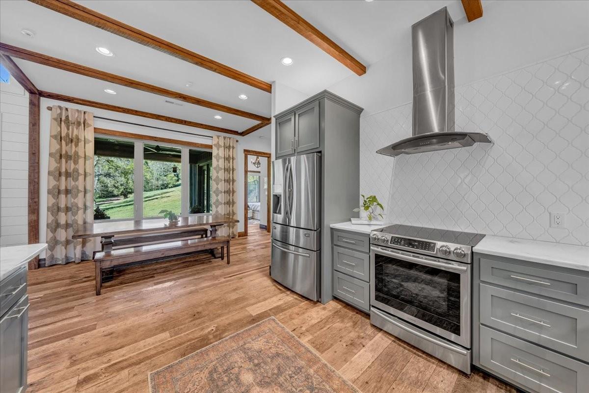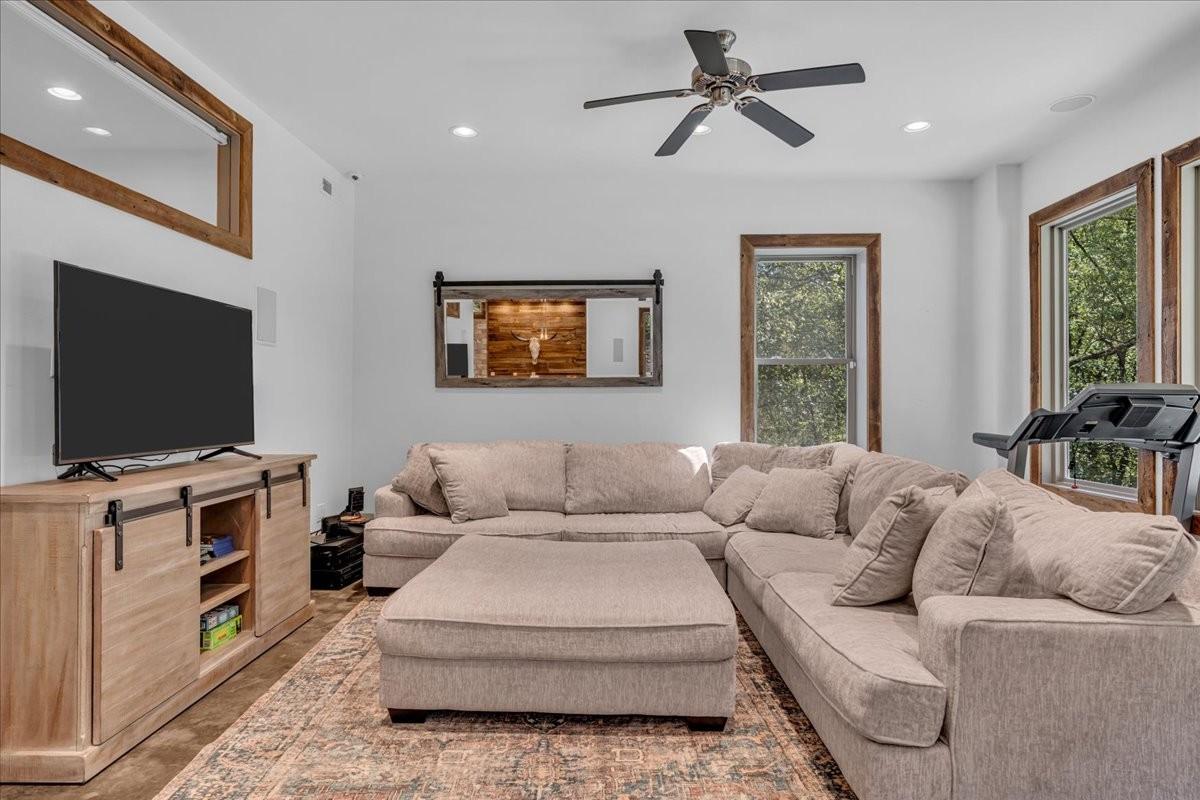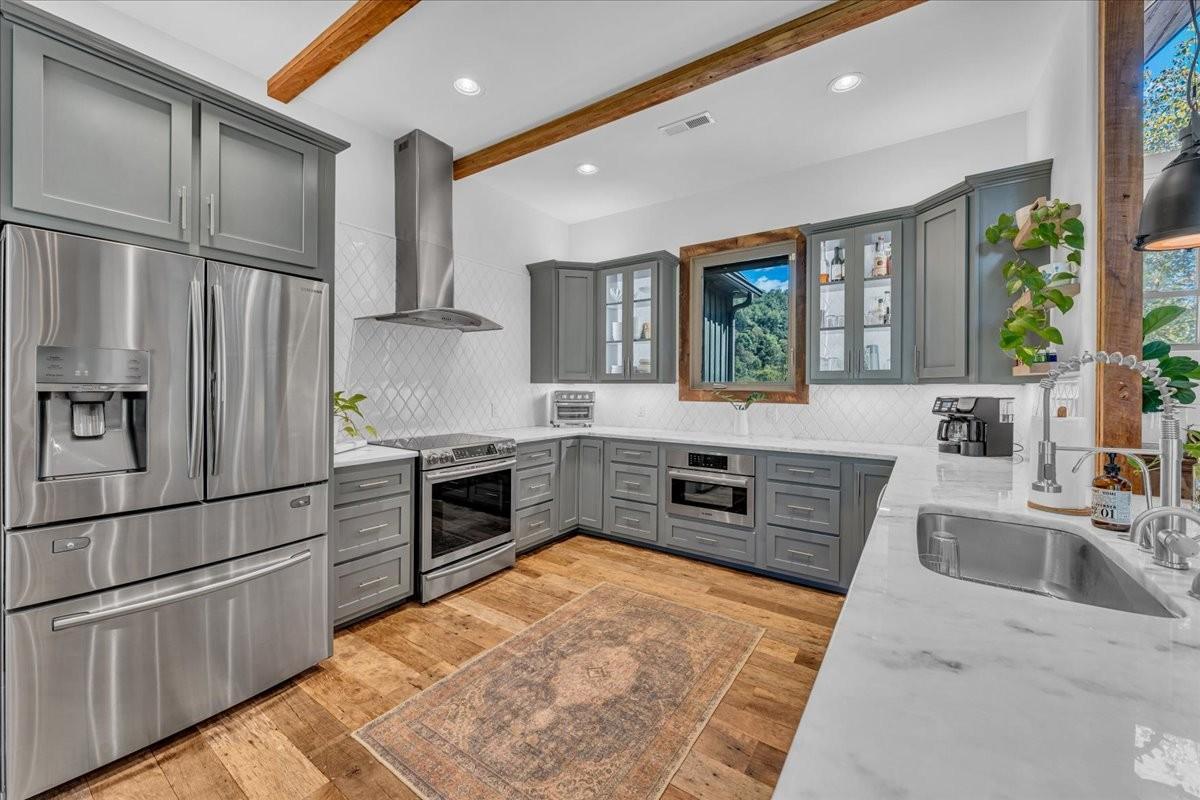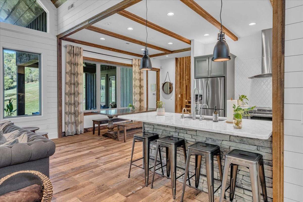 Discover a rare retreat just minutes from Cordell Hull Lake, a custom 2018 home on 76 stunning acres with a spring-fed creek, waterfall, two ponds, and miles of trails. This property blends resort-style living with modern convenience, offering the perfect balance of privacy, recreation, and accessibility. Located only 1 hour and 20 minutes from Nashville International Airport, it’s easily reached while still feeling completely secluded. The home offers 4,082 sq ft of thoughtfully designed space. The main kitchen features Samsung and Bosch appliances, induction cooking, instant hot water, and custom cabinetry with soft-close drawers and under-cabinet lighting. A full summer kitchen with additional refrigeration, 50-lb ice maker, and convection/air fry oven makes entertaining easy. The primary suite includes radiant floor heating, dual shower heads with rainfall option, and spa-like finishes. A dedicated wellness/gym room has dual fans, impact-resistant flooring, and its own HVAC system with smartphone control. The lower level offers a theater room with surround sound, stained concrete floors, plus a large underground storage area and a safe room. Outdoor living is maximized with expansive decks, patios, and an oversized two-car garage with Tesla charging. The 80’ x 40’ barn, fully renovated in 2018, includes water, 200-amp electric service, RV hookups, pump-out station, six overhead doors(2 electric), LED lighting, and a full security system with high-speed internet extended via underground conduit. Additional upgrades include wood floors and trim reclaimed from a 100-year-old barn on the property, a whole-house water filtration system, Cat 6 wiring, fiber internet, four HVAC systems, spray foam insulation, and app-controlled smart lighting and thermostats. The home is secured with cameras and monitoring inside and out. Whether ATV riding, skeet shooting, hiking, or simply enjoying the views and wildlife, this one-of-a-kind property! Homestead ready!