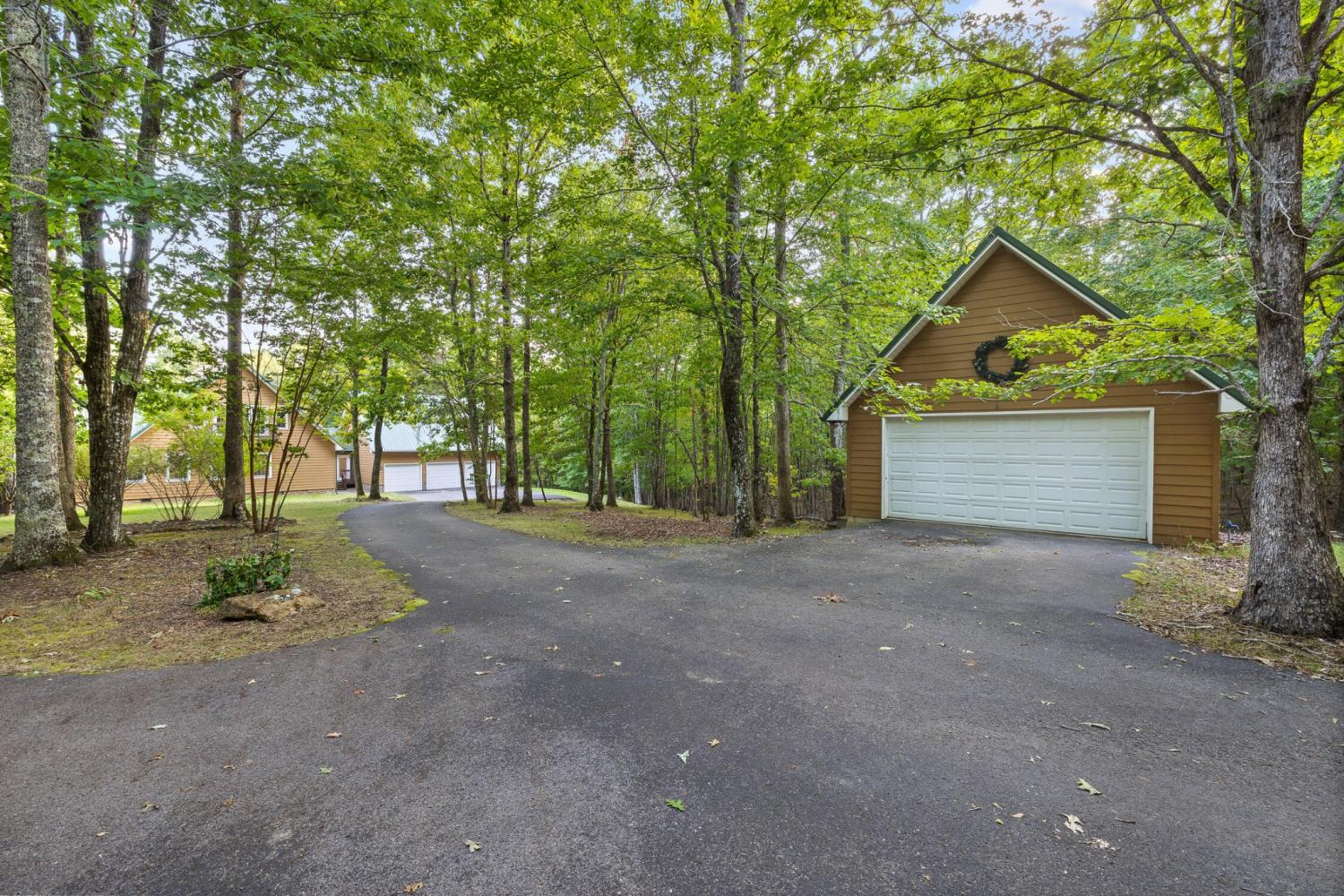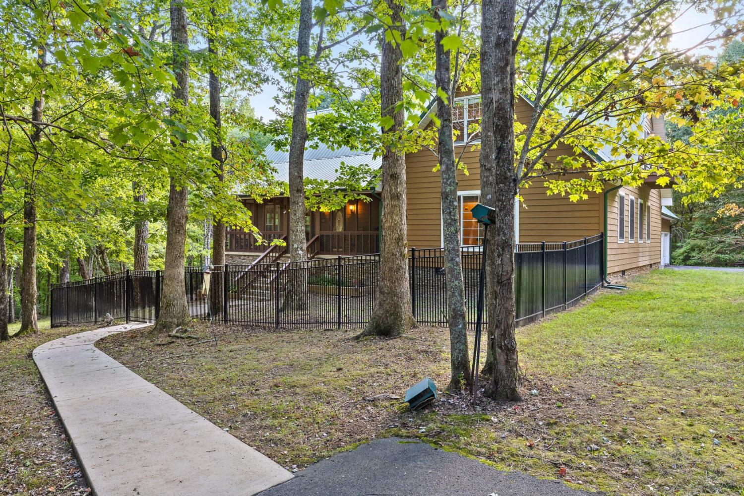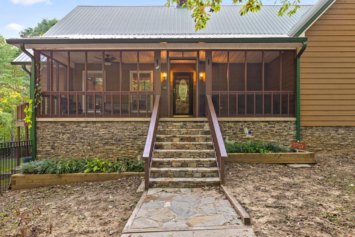 Welcome to 68 Bluff View Dr., a luxurious retreat on nearly 30 acres of fenced land. This 4-bedroom, 4.5-bathroom, 4,000 sq. ft. home offers seclusion and tranquility, surrounded by deep woods, a creek that runs through the property, and scenic trails. The property spans the road, with a fenced 7-acre pasture across from the main lot. The optional HOA fee adds flexibility. The custom-designed home is built with entertainment in mind, featuring custom cabinetry throughout, upgraded appliances, and a bar area perfect for gatherings. A wall of windows in the main living area fills the space with natural light and offers stunning views of the natural surroundings. The home is equipped with a state-of-the-art water softening system, a new water heater, a whole-house humidifier, and three separate HVAC zones for optimal comfort. The finished basement is a fully equipped media room with a full bath, wet bar, and exterior access. Media equipment and furnishings convey, offering a turnkey entertainment space. The property also includes a 2-car detached garage/workshop, offering versatile use. Outdoor living is enhanced by two screened porches, two open decks—one extending 30 feet. The home's exterior features low-maintenance Hardy board siding and a striking 4-foot stone fireplace, soaring two stories high, complete with glass doors and a fireplace arm perfect for roasting chestnuts. Set back 400 feet from the road, the home's winding driveway offers complete seclusion. The front area is fenced, providing a secure space for pets and keeping out unwanted wildlife. Discover the lifestyle that awaits you at 68 Bluff View Dr. Contact us today to arrange your private showing and see this incredible property for yourself.
