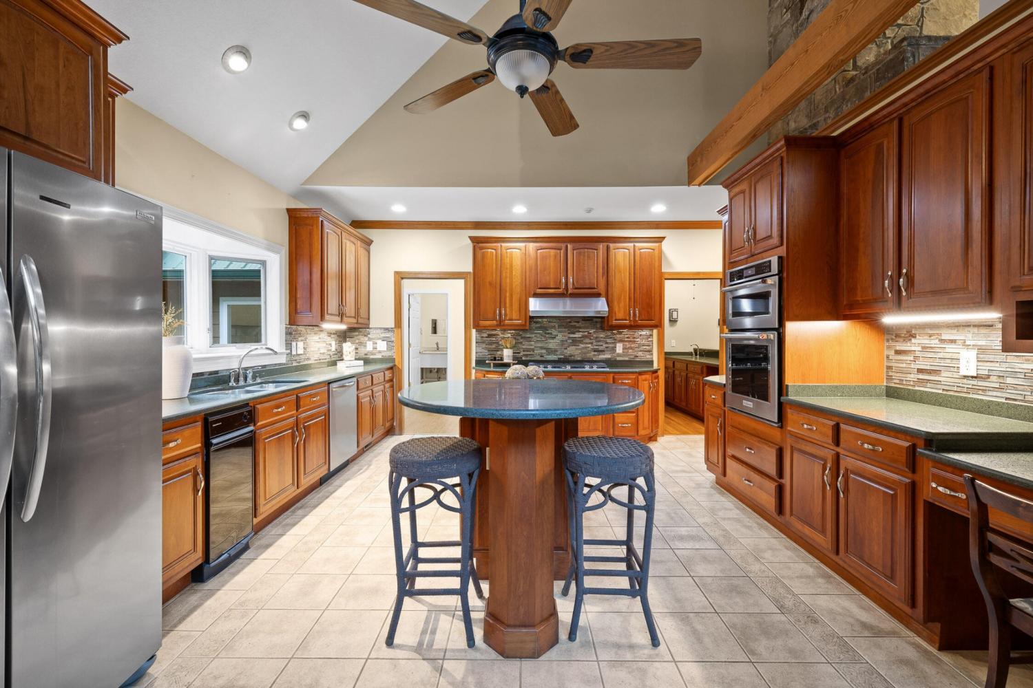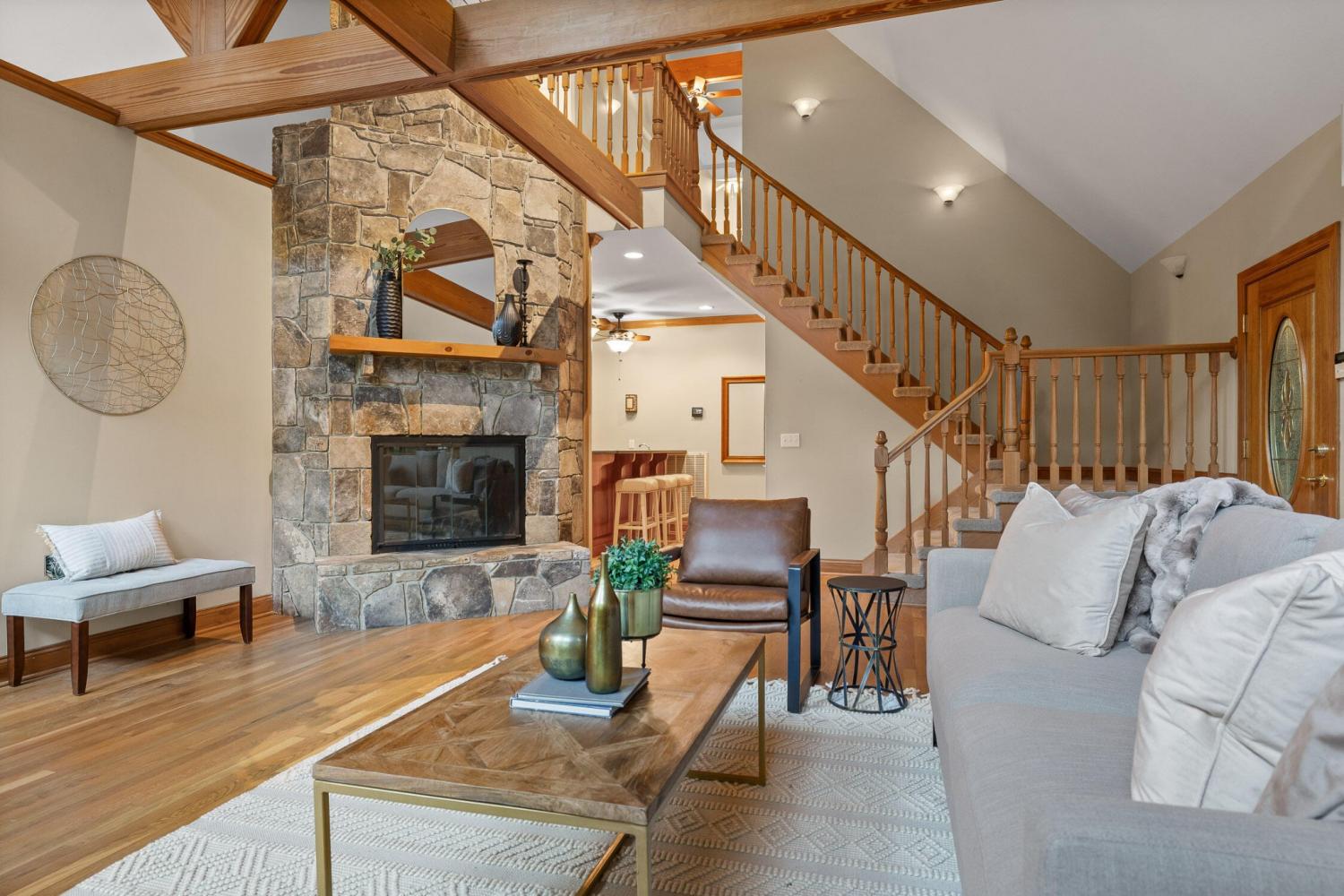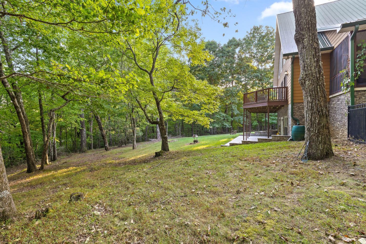 Welcome to 68 Bluff View Dr., a luxurious retreat on nearly 30 acres of fenced land. This 4-bedroom, 4.5-bathroom, 4,000 sq. ft. home offers seclusion and tranquility, surrounded by deep woods, a creek that runs through the property, and scenic trails. The property spans the road, with a fenced 7-acre pasture across from the main lot. The optional HOA fee adds flexibility. The custom-designed home is built with entertainment in mind, featuring custom cabinetry throughout, upgraded appliances, and a bar area perfect for gatherings. A wall of windows in the main living area fills the space with natural light and offers stunning views of the natural surroundings. The home is equipped with a state-of-the-art water softening system, a new water heater, a whole-house humidifier, and three separate HVAC zones for optimal comfort. The finished basement is a fully equipped media room with a full bath, wet bar, and exterior access. Media equipment and furnishings convey, offering a turnkey entertainment space. The property also includes a 2-car detached garage/workshop, offering versatile use. Outdoor living is enhanced by two screened porches, two open decks—one extending 30 feet. The home's exterior features low-maintenance Hardy board siding and a striking 4-foot stone fireplace, soaring two stories high, complete with glass doors and a fireplace arm perfect for roasting chestnuts. Set back 400 feet from the road, the home's winding driveway offers complete seclusion. The front area is fenced, providing a secure space for pets and keeping out unwanted wildlife. Discover the lifestyle that awaits you at 68 Bluff View Dr. Contact us today to arrange your private showing and see this incredible property for yourself.