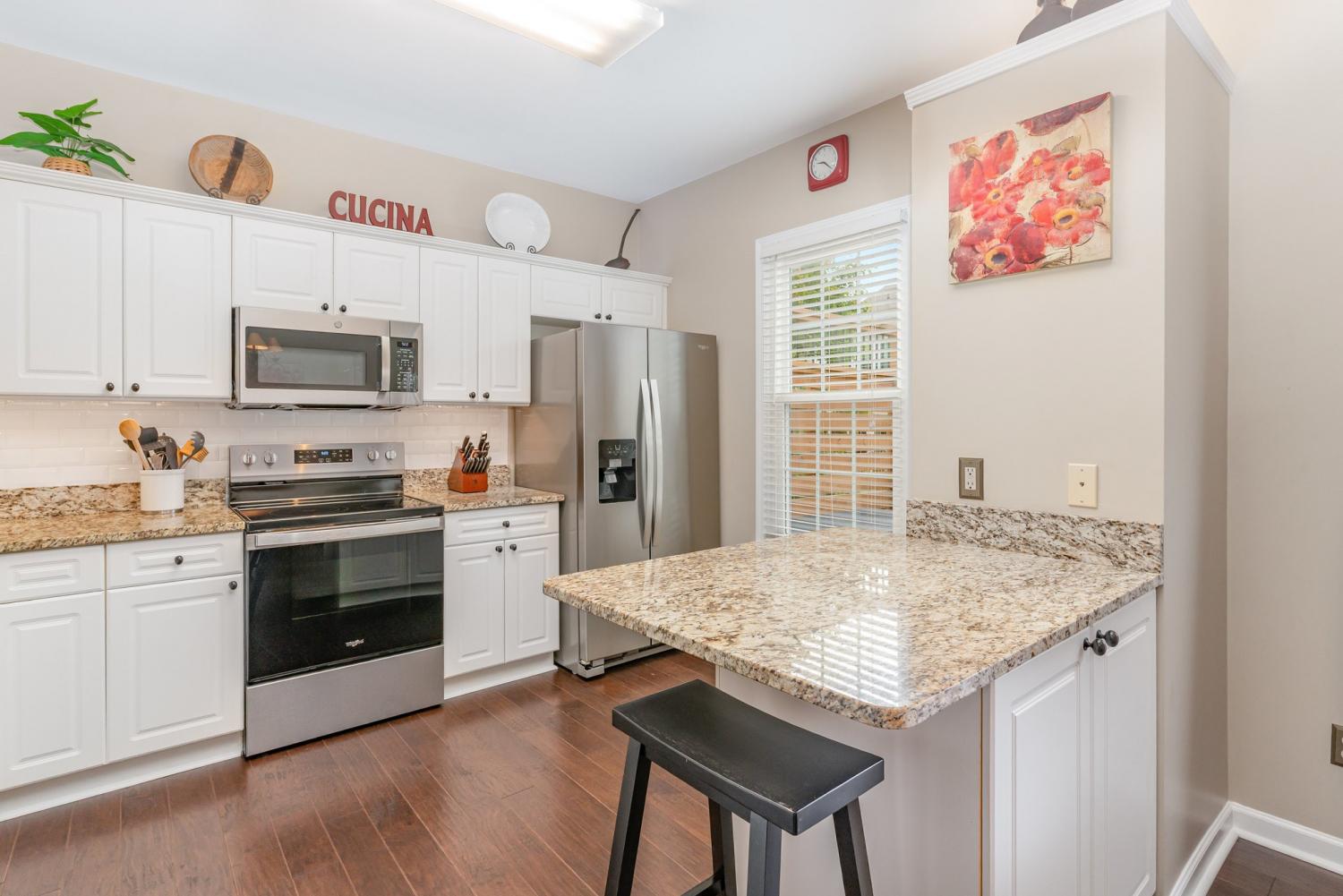Welcome to this spacious, move-in ready beauty in the highly sought after Bellevue Commons community! Two large en-suite bedrooms with vaulted ceilings and walk in closets, plus a flex room that is currently used as an office, but could be used as a den/ workout room or a 3rd bedroom, two half baths-one on 1st level and one on 2nd level for ease and convenience! The main level features an open floor plan for entertaining with a large living room and gas fireplace, separate dining area, kitchen with granite counter tops, and new stainless appliances. Kitchen also has a sitted bar top area to with plenty of cabinets too! Enjoy walking right out on to a fabulous new deck built in 2024! This lovely and well kept home also has a laundry area and a covered outdoor patio! Recent updates make this home move- in ready with new windows throughout with transferable warranty, upgraded light fixtures and ceiling fans, dynamic air filters in both HVAC units, new water heater, new hardwood flooring on 2nd floor. Additional highlights include a one car garage (with shelving for added storage), plenty of guest parking nearby, and ideally located near The Warner Parks, shopping, grocery stores, hospitals, restaurants, interstate, downtown Nashville and more! This Bellevue gem blends comfort, updates and convenience -ready to welcome it's new owner! Please note: Prefered Lender- is offering 1% buydown for the first 12 months!
