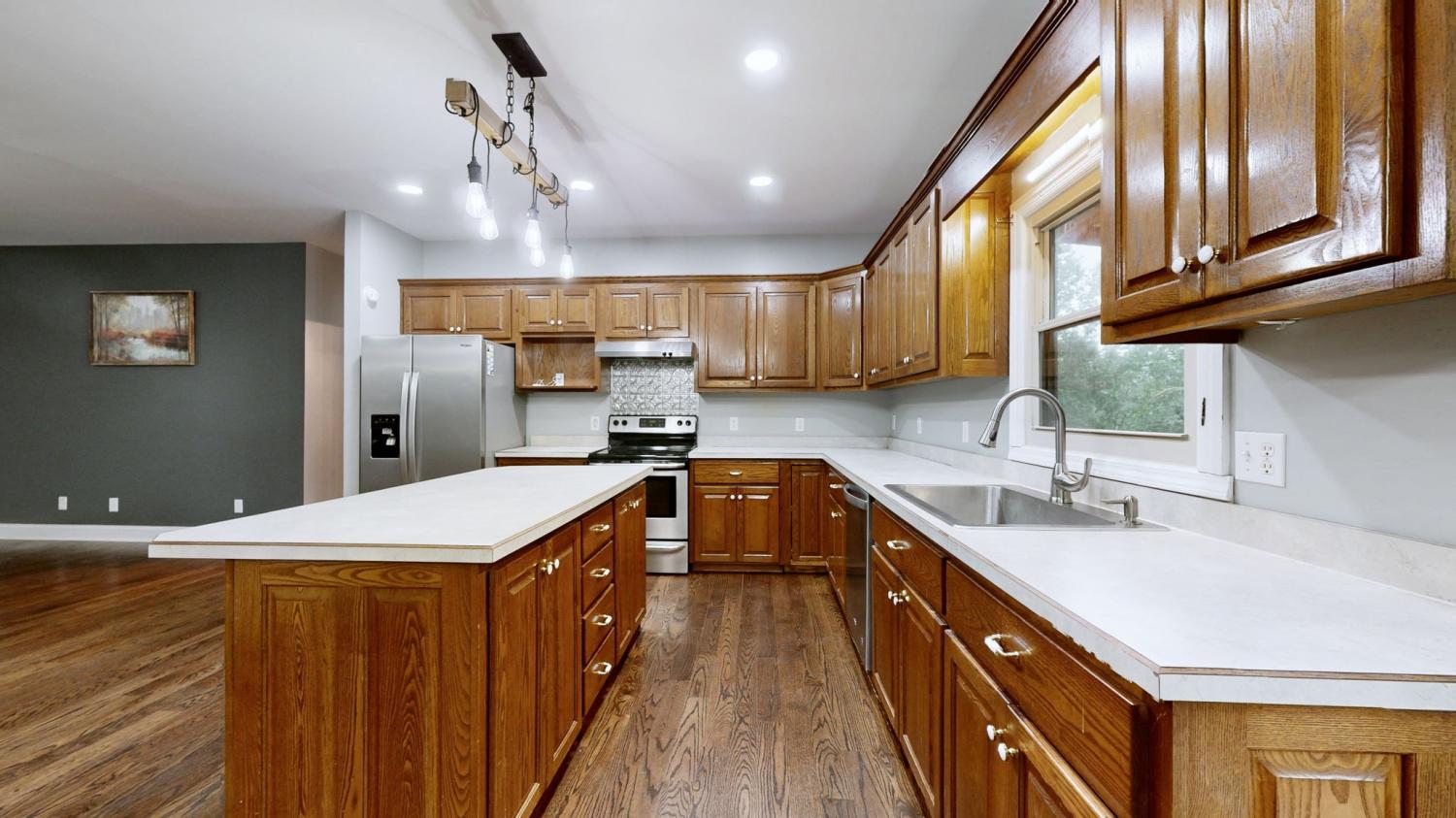 Welcome to 2845 Hillcrest Drive in Centerville! This log-style home with wood siding offers charm, space, and flexibility. The main level provides approx. 1,568 sq. ft. with 3 spacious bedrooms and 2 full baths. Hardwood flooring runs through most of the level, with tile in the bathrooms, and all rooms are generously sized. The custom kitchen features abundant cabinets, a large island bar, a built-in desk, and all appliances convey. The finished basement adds another 1,100 sq. ft. with a family room, 2 bedrooms, full bath, and a second kitchen with shaker-style cabinets, stained butcher block countertops, and newer appliances that stay. With its own entrance and one-car garage, this level is perfect for an in-law suite, multi-generational living, or rental potential. Enjoy a covered and lighted 350 sq. ft. deck with beautiful views, a 540+ sq. ft. covered carport that fits two vehicles, an oversized master closet, and a storage shed. Conveniently located less than a mile from the Centerville golf course and local airport, and just 2–3 miles from downtown. A rare opportunity offering comfort, convenience, and versatility in one property!