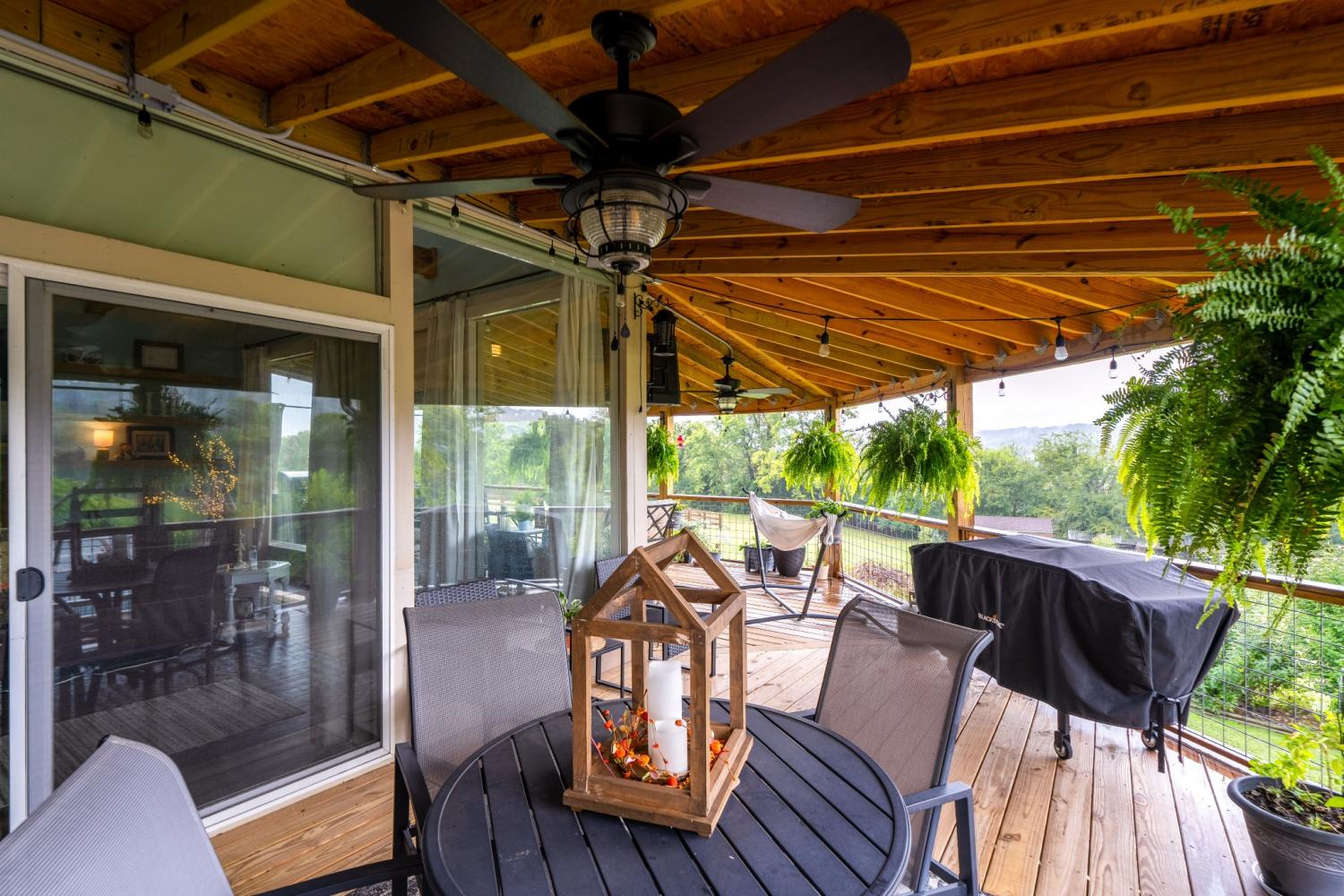 Every once in a while, a property comes along that words can’t quite capture—where photos only tell part of the story, and the feeling of being there is something entirely different. That’s exactly the case with 1855 Lochlann. (Scroll down and see for yourself with the video link under features). Set in one of the area’s most coveted communities — Sweetwater Estates, this NO HOA 3-bedroom, 2-bath retreat sits on 1.05 acres and is the only home on the street with unobstructed hillside views—perfect for taking in breathtaking Tennessee sunsets from your own backyard. The heart of the home is the custom-built den with vaulted ceilings, exposed pine beams, and a granite-hearth fireplace. Two sets of large glass doors open wide to the outdoors, while floor-to-ceiling windows flood the space with natural light. Remote-controlled blackout curtains let you shift from bright and open to cozy and private. Beyond the den, step out onto the massive covered back deck—spanning almost the entire back half of the home. With a durable metal roof, wired Edison bulb lights, and enough space to serve as it's own outdoor living and entertainment area, it's the perfect spot for dinner parties, quiet mornings with coffee, or relaxing evenings in the jacuzzi while the sun sets behind the hills. The home also features high-end waterproof laminate flooring throughout, a 4-year-old HVAC, and all appliances—including washer and dryer—convey. Outside you'll find: - An absolute Chicken DREAM setup: 20x10 coop, 10x30 run, and 30x30 fenced area. The seller will even leave a few chickens for fresh eggs :) - 10x16 greenhouse for year-round gardening. - 12x20 barn for storage, projects, or hobbies. - expansive carport beside attached 2 car garage All of this, with no neighbors behind or to the right gives you the privacy you've been deserving. This home isn’t just a property to see—it’s one to experience. Truly a one-of-a-kind Tennessee treasure just waiting on you to walk through. :)