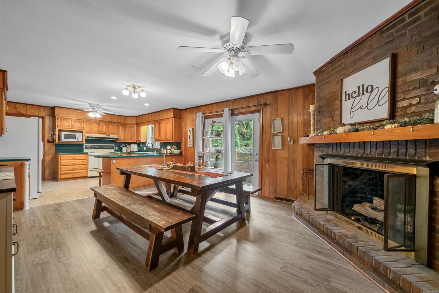 Charming 3-Bedroom Brick home conveniently located near everything Hopkinsville has to offer, this move-in-ready 3-bed, Charming 3 bed 2-bath brick home blends timeless character with thoughtful updates. A spacious attached garage plus an attached carport provide plenty of parking and storage. Inside, you'll find gleaming hardwood floors, built-in shelving, and a cozy fireplace that add warmth and style. The very large great room is perfect for entertaining, while the inviting keeping room-ideal as a dining or second living area-features its own fireplace for extra charm.Both the primary and hall baths have been tastefully remodeled, with the primary suite boasting double vanities. A designated laundry room with extra storage adds everyday convenience. Step outside to a back porch accented with beautiful brickwork, perfect for relaxing or hosting friends. Additional updates include a metal roof and replacement windows, offering peace of mind for years to come. Call for your showing TODAY!!