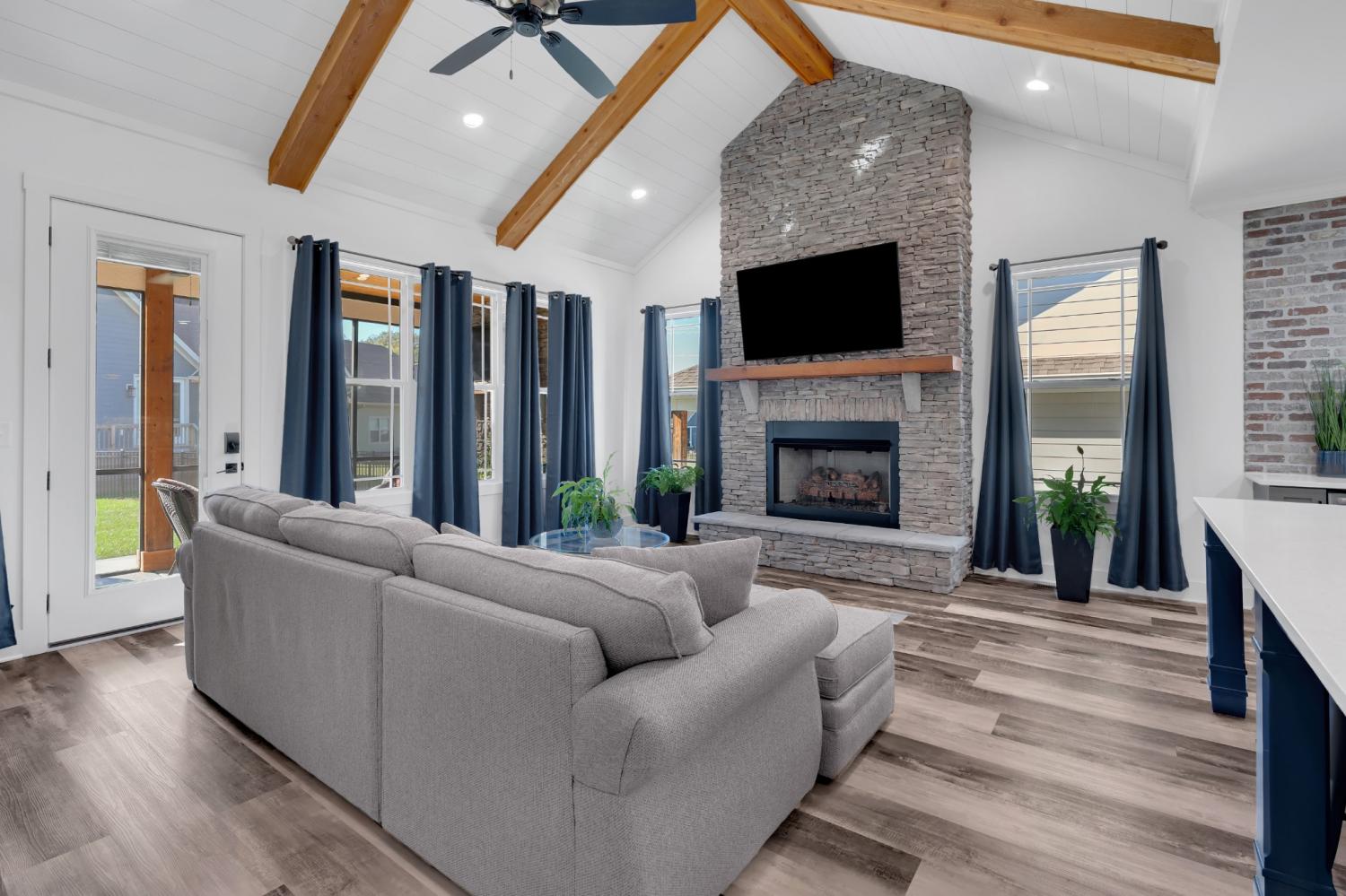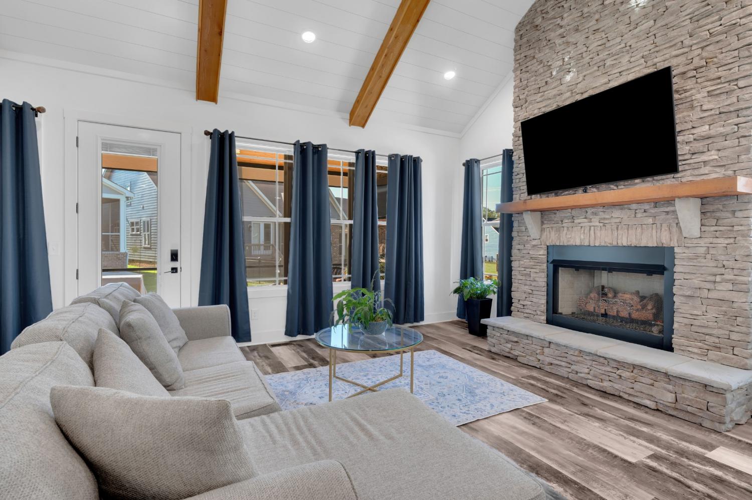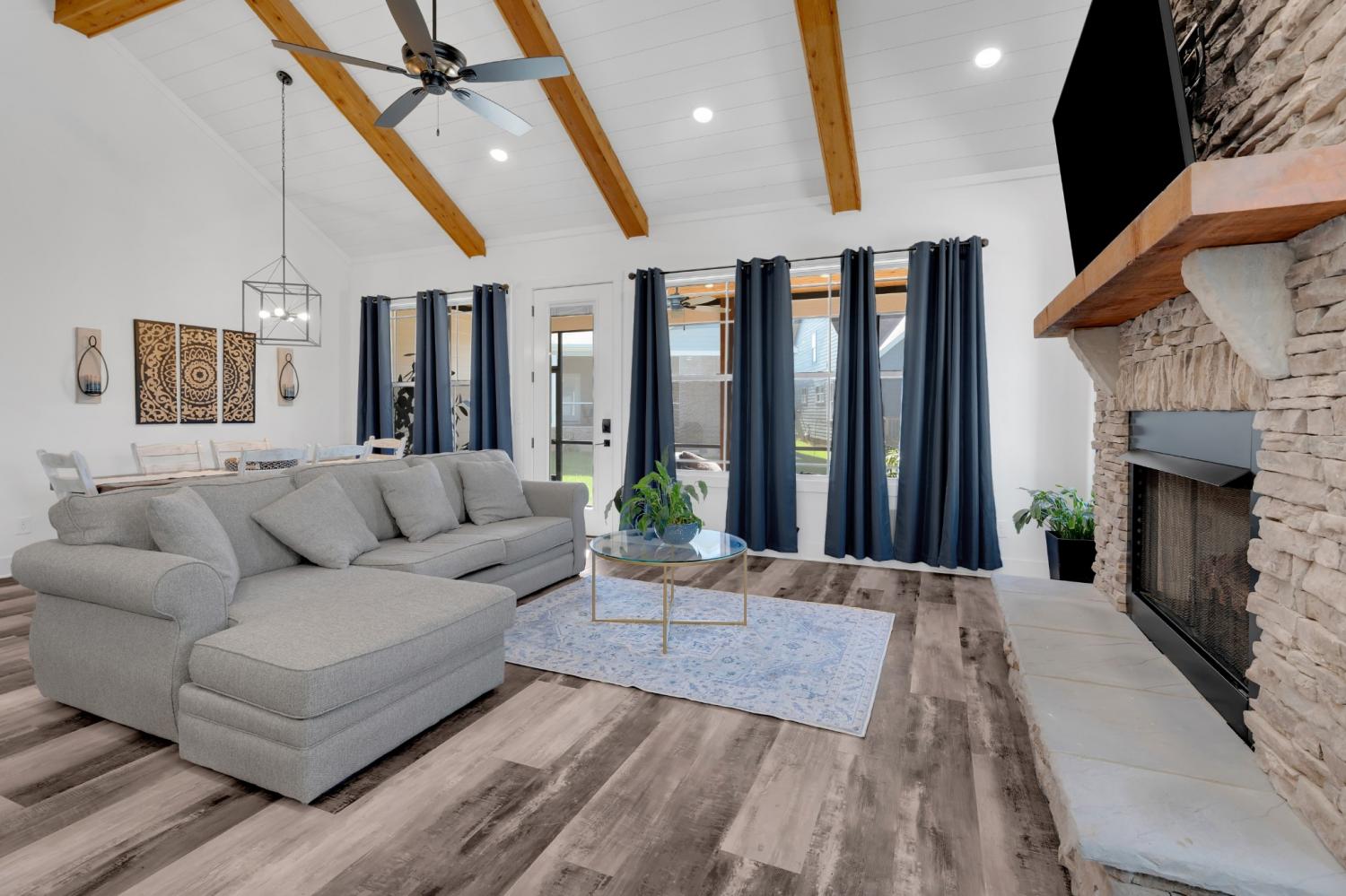 Discover refined lake living in this exquisite, gated community, where peace and luxury come together. Residents here enjoy an impressive list of amenities, including a full-service marina, clubhouse, and several pools. Low maintenance with a HOA that takes care of your lawn and all amenities. This stunning home is crafted with timeless detail featuring both an indoor and outdoor stacked stone fireplace, creating warm and inviting spaces year-around. The open concept design is enhanced by rich wood beams, soaring ceilings, and natural light perfect for entertaining or quiet evenings at home. Home is being sold furnished so walk right in and start living or use as an income producing Airbnb. Master is on the main level and is complete with a spa-like bath that feels like a private retreat. Every detail in this home is designed with elegance and functionality in mind, making this home the perfect balance of luxury and relaxation. Make 65 Pontoon Plc. your new address and start enjoying the lake from day one!! Open House Oct. 18th from 10 am until 2 pm.
