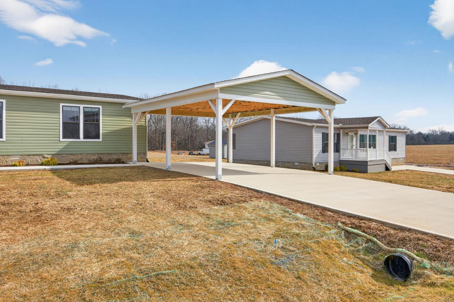 Welcome to Cane Creek Farms. A new community situated on 60 acres with a quiet country setting, dog park, pavilion area, and convenient to town + I-40. Each home offers energy efficient features, a 10x12 storage building, trex decking, oversized concrete driveways, and can pass for any loan types. The Washington offers an oversized carport and is on .95 acres offering open concept living with split floor plan, tons of cabinet space with tiled backsplash, a large island w/ pendants, ss appliances, pantry w/ barn door, and a spacious laundry area. The primary suite offers a walk-in closet w/ barn door, matching double vanities as kitchen, and a walk-in shower + soaking tub. Each property was built with you in mind, and we cannot wait to help you find the perfect fit! 1 yr Claytons Warranty provided.