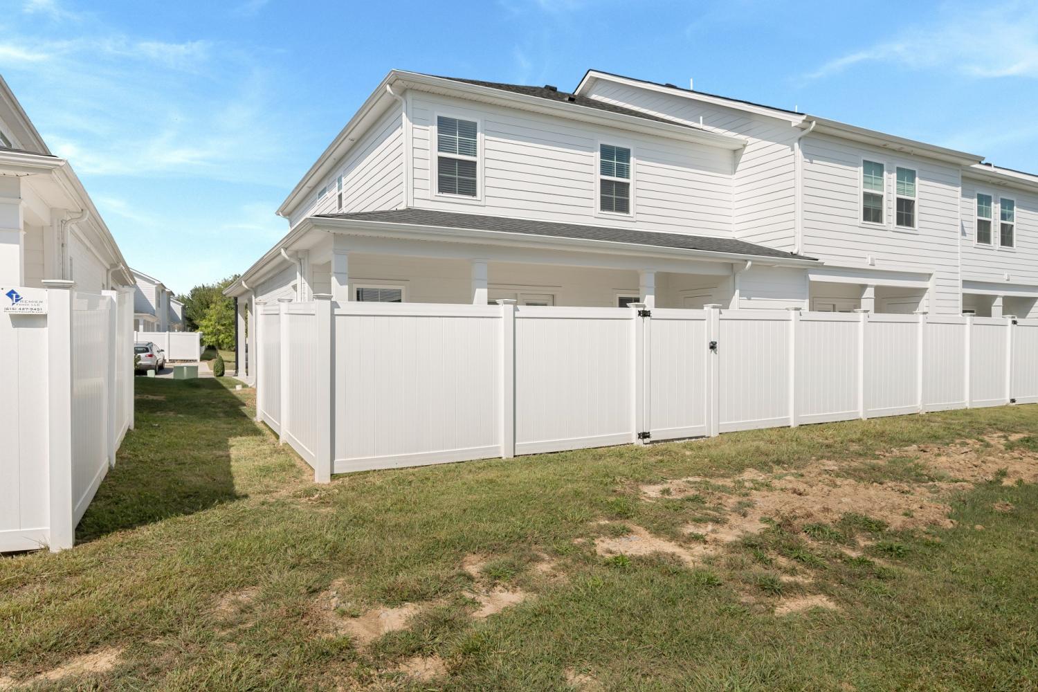 Owner relocating! One of Murfreesboro's newest town home communities. Built in 2024 by Harney Homes, Jackson Towne luxury town home community features on-trend white painted brick exteriors with black doors, shutters and garage doors creating a clean, modern aesthetic. This 3 BR, 2/1 BA, "Unit A" plan is the largest floor plan offered and features an oversized two car garage with epoxy floor finish. Light, bright and open main level living. Timeless white kitchen has granite counter tops, soft close drawers and stainless appliances. French doors lead to covered back porch with storage and private, fenced courtyard with artificial turf grass. Jackson Towne is an active lifestyle community with incredible pool, playground and dog park. Super location, only minutes to I24, Middle Tennessee State University, abundant outdoor recreation, golf, shopping, dining and more. SELLER WILL PAY HOA DUES FOR NEW OWNER FOR FIRST YEAR!