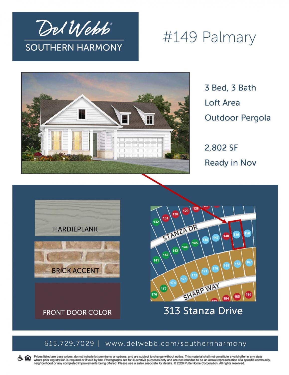 I-24 to exit 78A toward Franklin. Go 4.8 miles and Del Webb is on your left. From 840 - Exit Veterans Parkway go 2 miles then right on Franklin Road (96) 1 mile to Del Webb Southern Harmony on the left.
