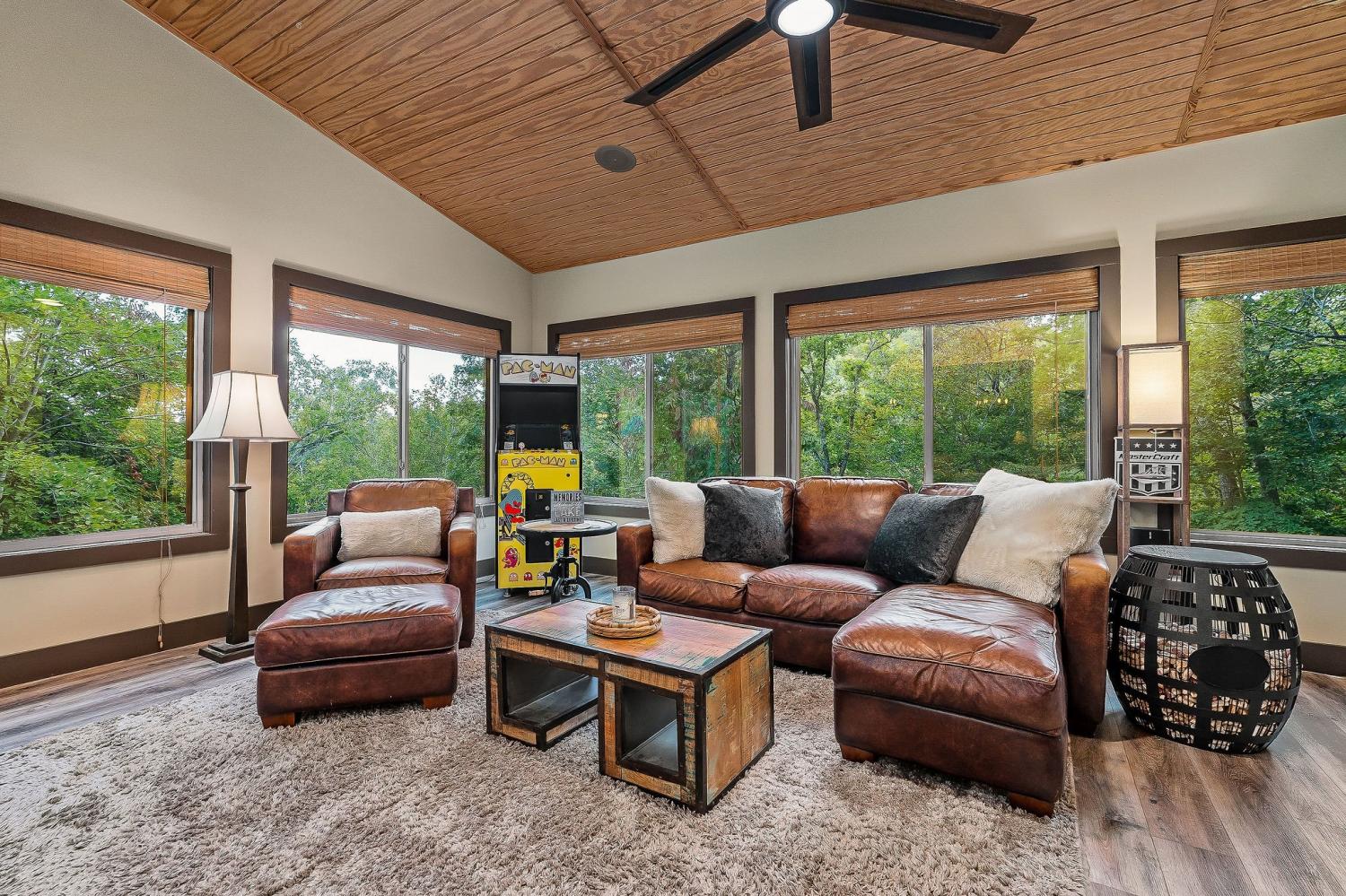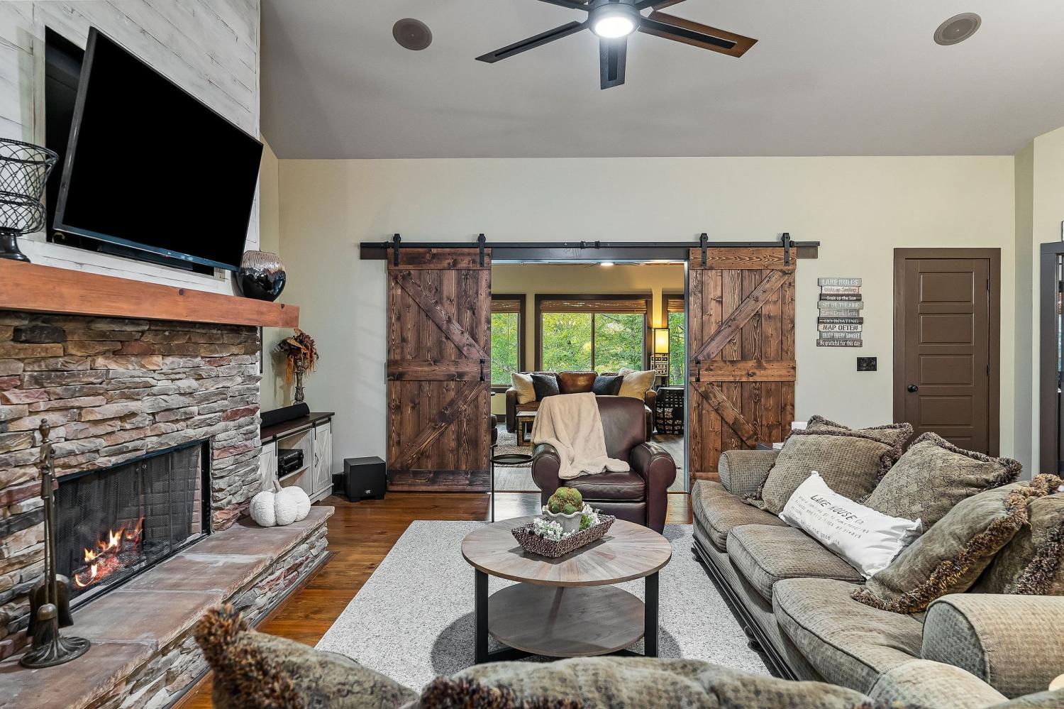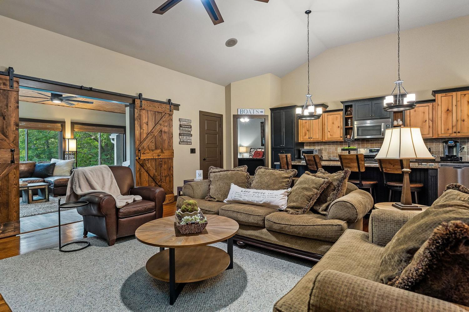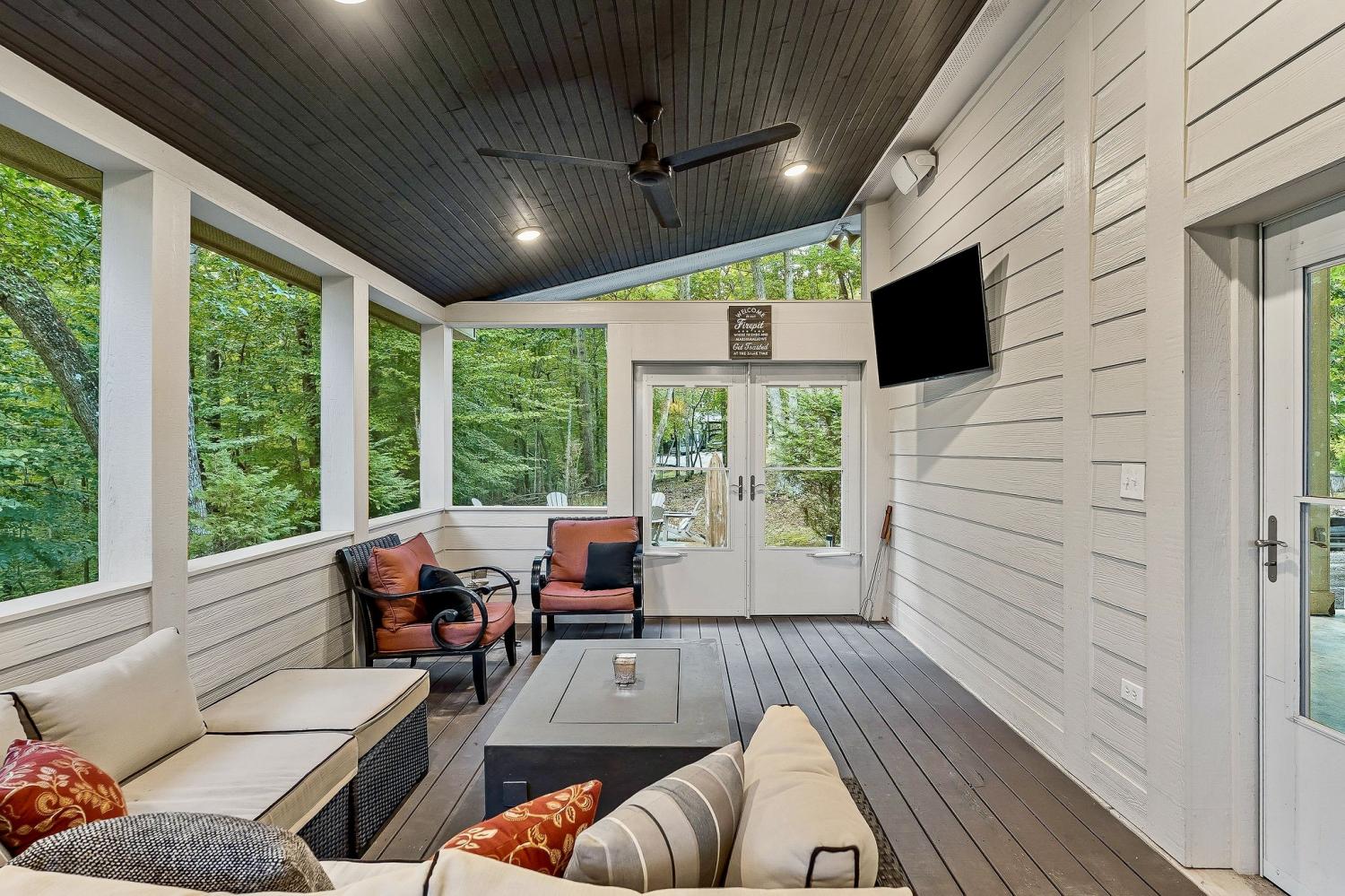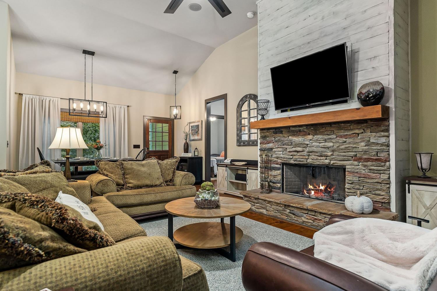 Escape to Center Hill Lake and discover this stunning home in the gated Four Seasons community, where luxury, comfort, and lake living come together seamlessly. Thoughtfully designed and exceptionally decorated, this one-level home is being sold fully furnished and turn-key ready. The open floor plan is highlighted by a designer kitchen with high-end finishes, stylish cabinetry, stainless appliances, and granite countertops - perfect for hosting and everyday living. The living room features a vaulted ceiling and cozy fireplace, while the luxurious owner’s suite provides a serene retreat. Two additional guest bedrooms are situated on the opposite end of the home, creating an ideal layout for family and friends. Hardwood floors run throughout, and storage is abundant with an attached two-car carport and paved driveway. Outdoor living is elevated with a spacious all-season sunroom, an expansive screened porch, beautifully designed hardscaping, and an outdoor fire pit area, along with room for boat trailer parking. Enjoy exclusive access to Four Seasons amenities, including a neighborhood marina, pool, tennis courts, and playground. Experience the best of Center Hill living in a home that blends luxury, comfort, and convenience - ready for you to enjoy from day one.