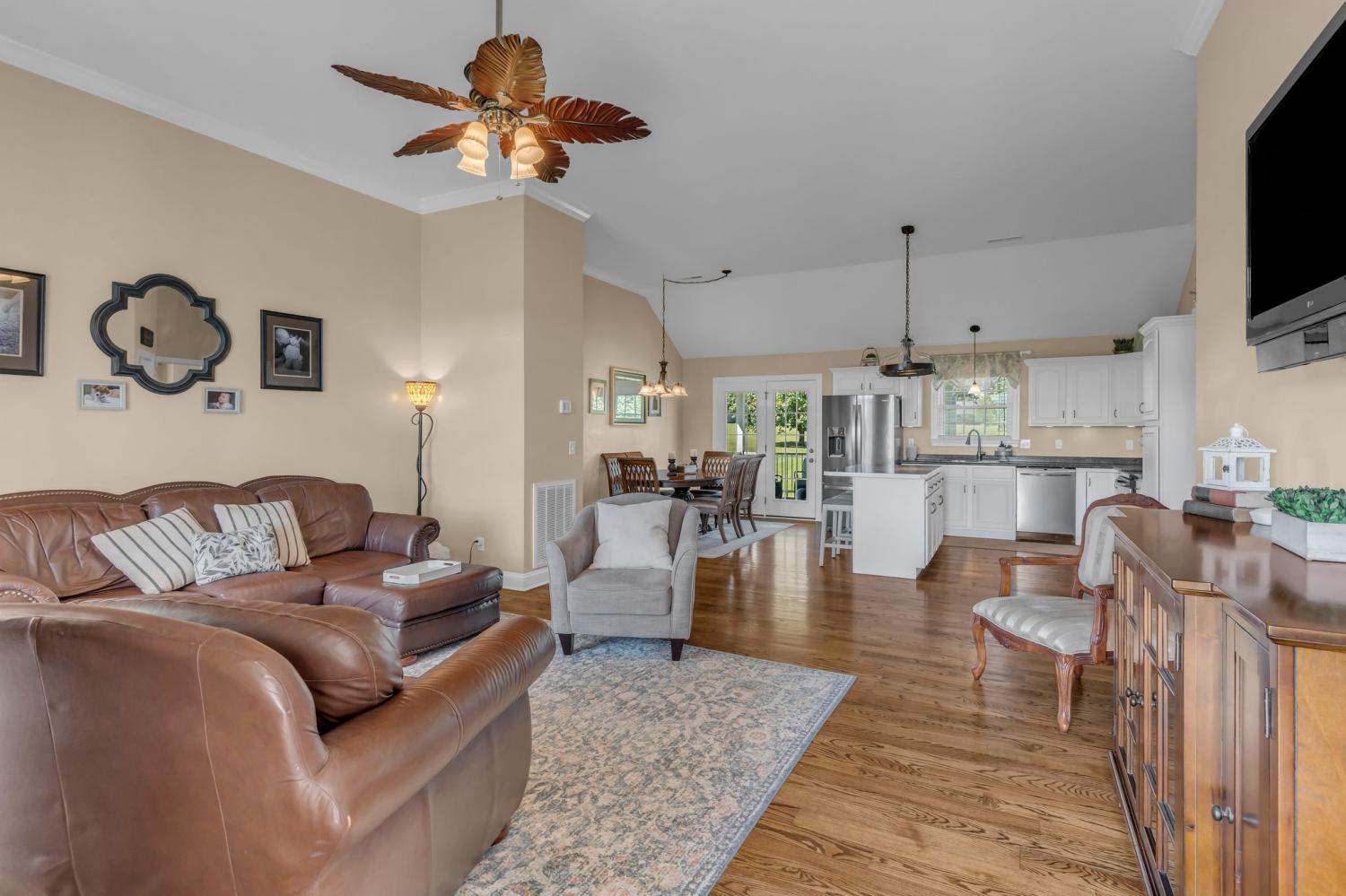 Step inside this inviting home featuring soaring ceilings, a bright, open-concept, and a peaceful front porch. The floorplan flows seamlessly into the living spaces, with the living room, dining room, and kitchen - perfect for modern everyday living. Plus ALL bedrooms are located on the main floor! A crisp white kitchen that includes the refrigerator, a middle island and window above the sink! The primary suite features a trey ceiling, walk-in closet, and an ensuite bath complete with a walk-in shower and separate soaking tub. A large bonus room is found above the garage. Additional highlights include real hardwood floors, a 2-car garage, and a beautiful, large, covered back porch —perfect for relaxing outdoors. This 3-sided brick home sits on nearly an acre and a half on a quiet street in a mature community, offering both space and privacy while being less than 8 min to I40, close to dining, 20 min to Dickson and Fairview. Less than an hour to the airport. Practical upgrades add peace of mind, with a 3-year-old HVAC system, concrete driveway, invisible dog fence, and AT&T Fiber internet. This home has been meticulously cared for and well maintained.