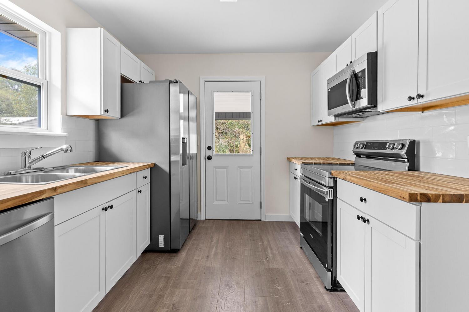 Welcome to 13789 Bretton Drive, a charming 2-bedroom, 1-bath home tucked away at the end of a peaceful cul-de-sac. This beautifully updated property offers modern comforts with a warm, inviting feel. Inside, you'll find brand new flooring throughout, a stylish kitchen featuring butcher block countertops, stainless steel appliances, and plenty of natural light. The open layout makes the home both functional and cozy. Step outside and enjoy the serene setting as the home overlooks a lovely creek that runs through the property—an ideal backdrop for relaxing mornings or peaceful evenings. A convenient carport provides covered parking, and the quiet cul-de-sac location ensures privacy and minimal traffic. With its fresh updates, tranquil surroundings, and thoughtful details, this home is the perfect blend of comfort and charm.