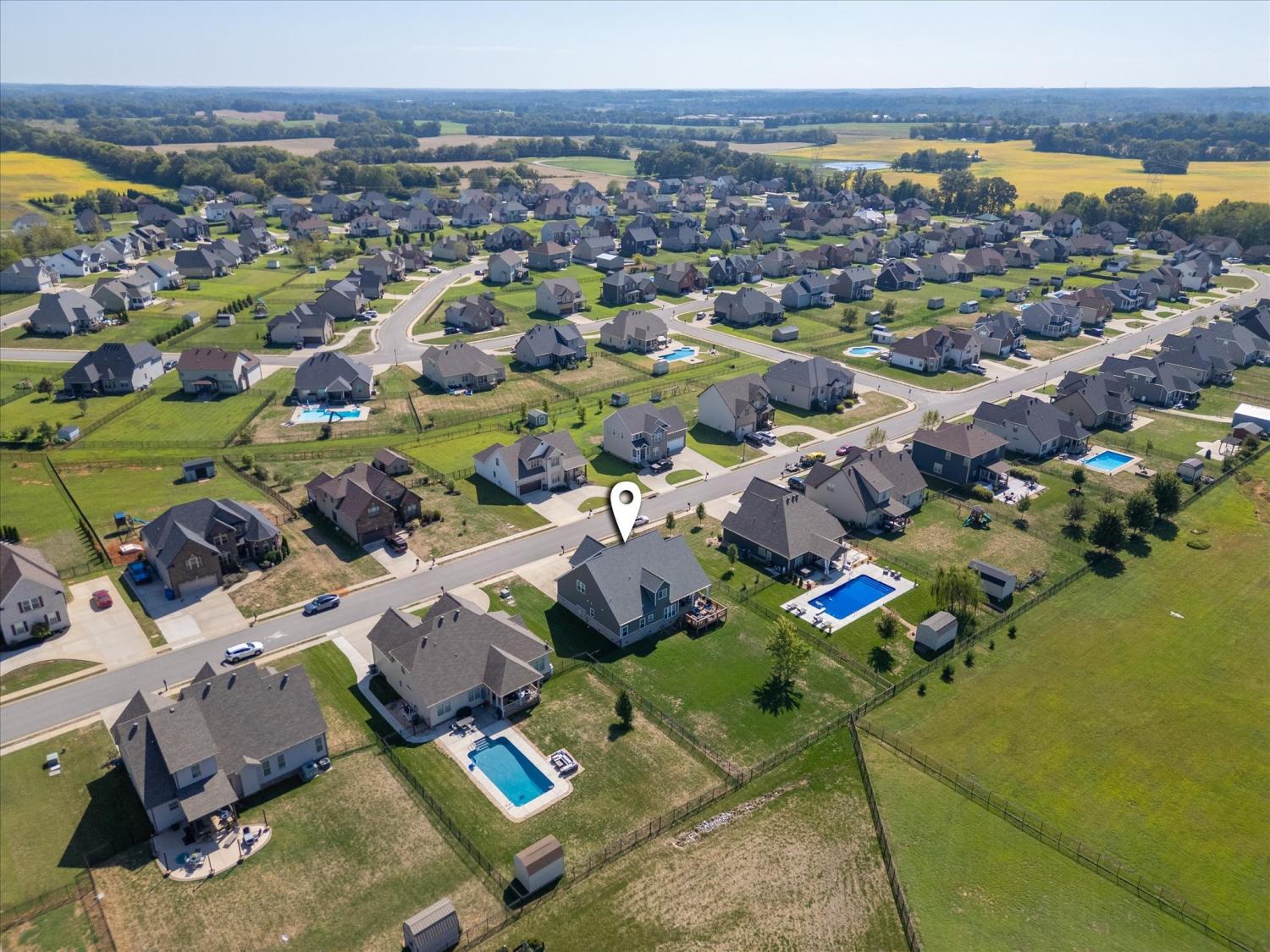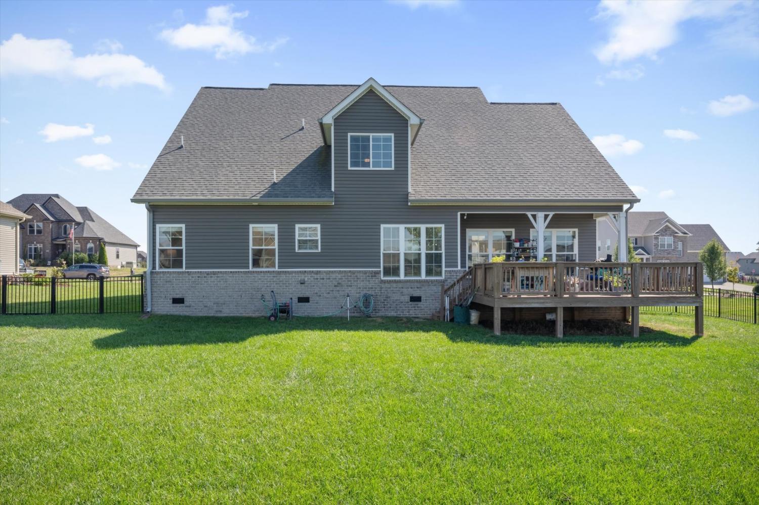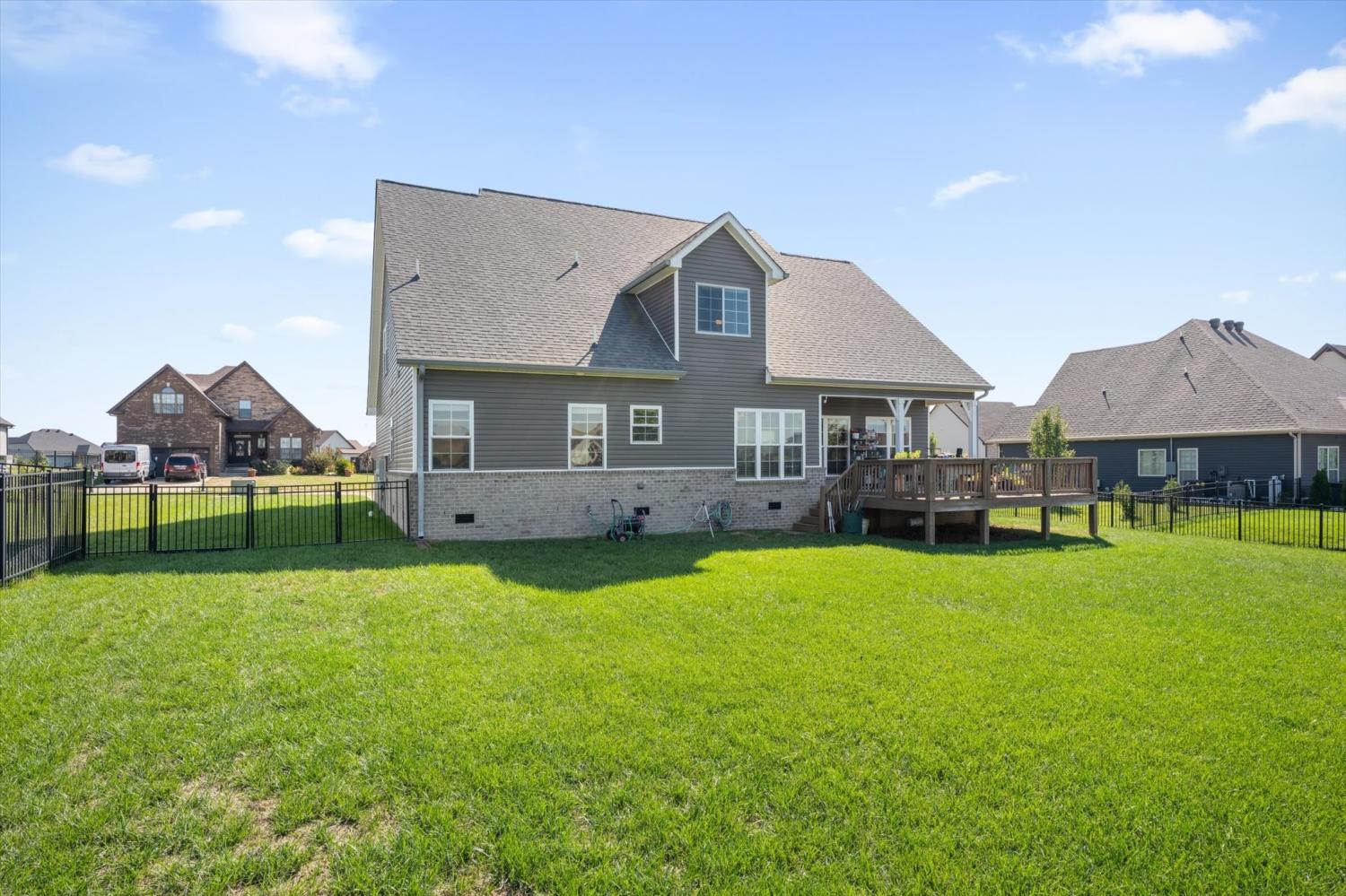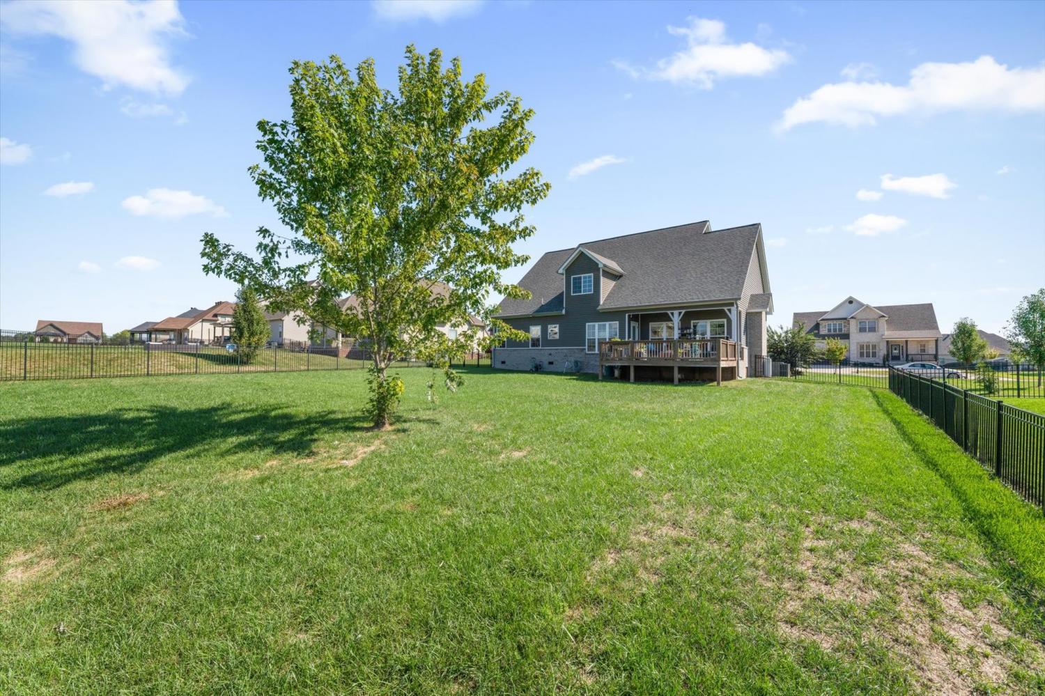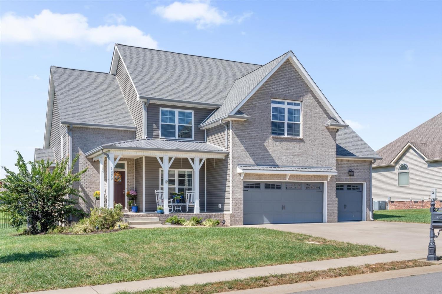 Welcome home to this stunning, custom-built showstopper in the highly sought after Wellington Fields neighborhood. You’ll be greeted by the large covered front porch. Once inside, the massive vaulted ceilings with a gorgeous staircase, sky bridge & view across the spacious living areas will take your breath away. A beautiful formal dining room awaits all your gatherings. Just past the dining room, you enter the heart of the home - a gorgeous kitchen featuring 2 pantries, stainless appliances and extensive granite countertops. Next to the kitchen is a breakfast nook overlooking the back yard, with a door leading to your beautiful back deck & huge fenced yard that feels even bigger than it is w/ breathtaking sunset views. Soaring ceilings & a stunning fireplace draw you in to the living room that opens to the kitchen and nook area. Entertainers dream! The laundry room & powder bath lead away from the kitchen and toward the MAIN LEVEL primary suite! You'll be in heaven with separate his and hers vanities with granite counters, a gorgeous walk-in tile shower with frameless glass & a free-standing tub just waiting for you to have a relaxing soak with a good book. Upstairs, across the sky bridge, you'll find three more spacious bedrooms - two of the three have en suite bathrooms with gorgeous granite counters, and one of the baths features a massive double vanity. The second bedroom upstairs offers beautiful vaulted ceilings, and the bedroom at the end of the hall could be used as a MIL retreat or private guest suite. The massive upstairs bonus room offers a closet and could be used as a 5th bedroom if desired. This incredible home is one of only a few custom-builds in the neighborhood, and is also one of the few that offers a full 3 car garage w/ a storage closet. Immaculately maintained home, easy access to I-24/Shopping/Ft. Campbell, NO CITY TAXES, and close to the highly desirable Kirkwood School Complex. Welcome to your new home!