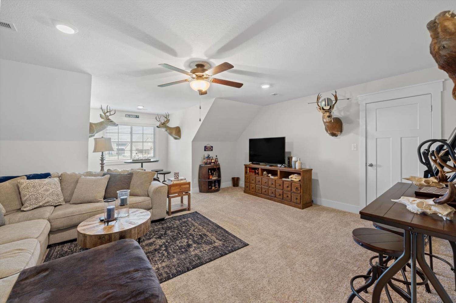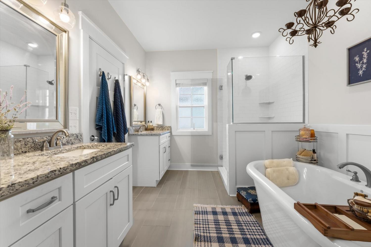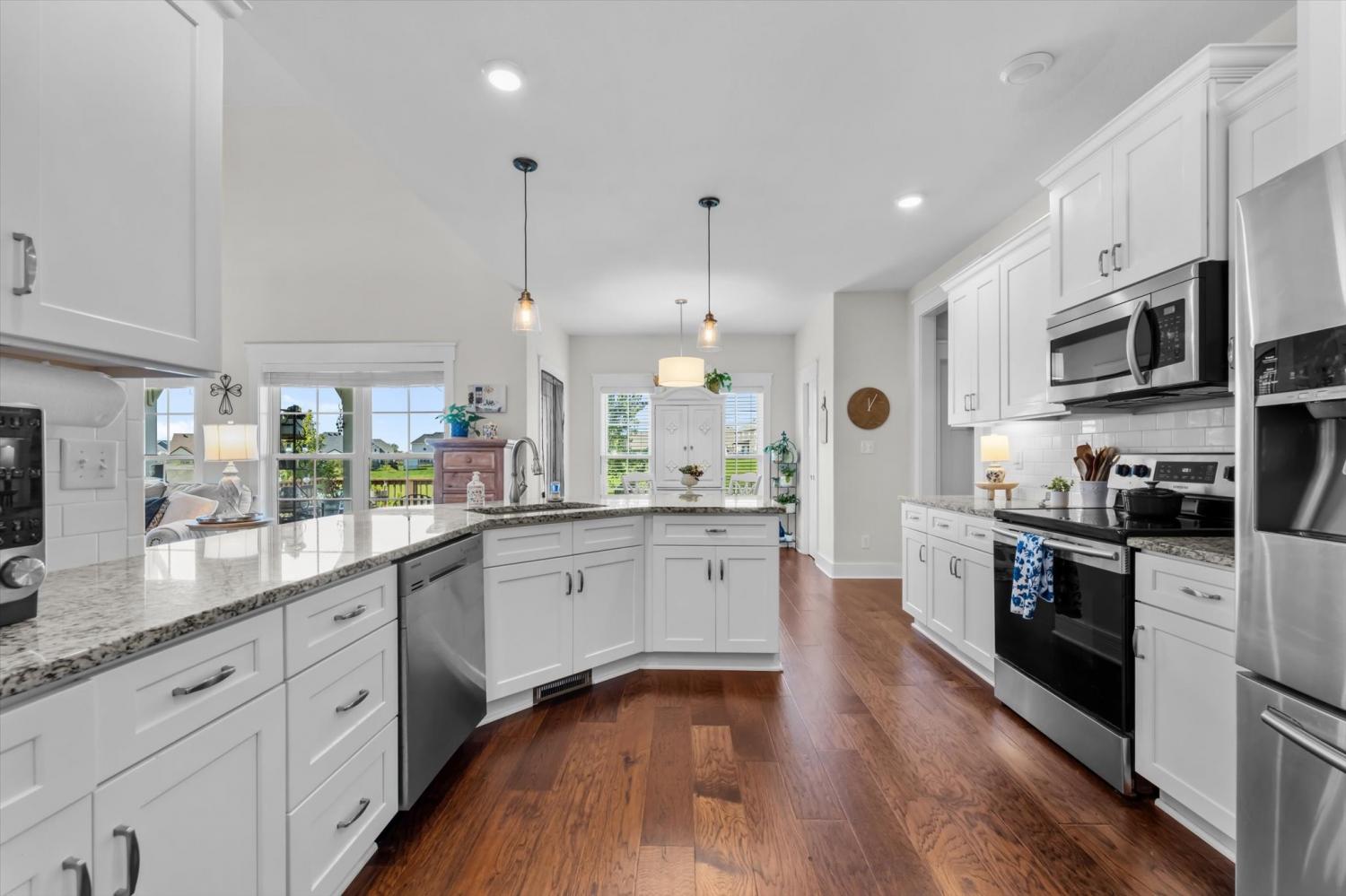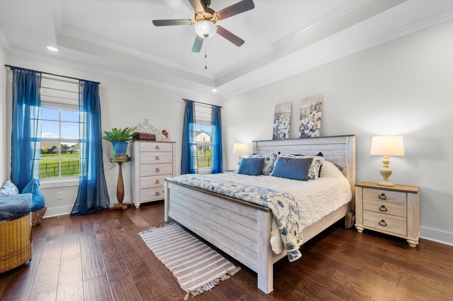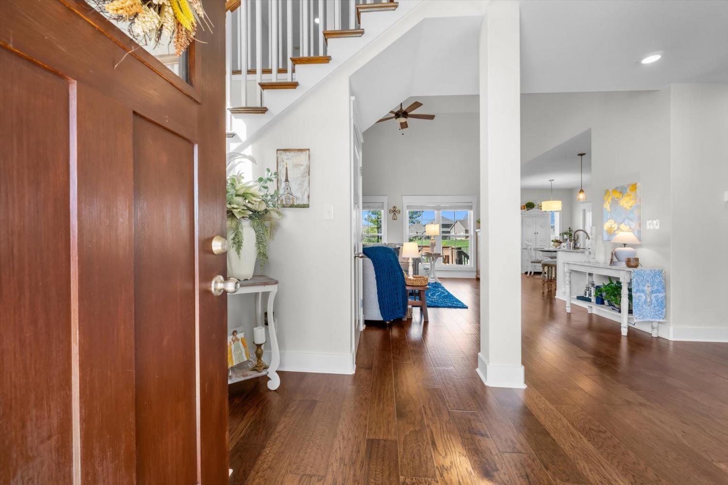 Welcome home to this stunning, custom-built showstopper in the highly sought after Wellington Fields neighborhood. You’ll be greeted by the large covered front porch. Once inside, the massive vaulted ceilings with a gorgeous staircase, sky bridge & view across the spacious living areas will take your breath away. A beautiful formal dining room awaits all your gatherings. Just past the dining room, you enter the heart of the home - a gorgeous kitchen featuring 2 pantries, stainless appliances and extensive granite countertops. Next to the kitchen is a breakfast nook overlooking the back yard, with a door leading to your beautiful back deck & huge fenced yard that feels even bigger than it is w/ breathtaking sunset views. Soaring ceilings & a stunning fireplace draw you in to the living room that opens to the kitchen and nook area. Entertainers dream! The laundry room & powder bath lead away from the kitchen and toward the MAIN LEVEL primary suite! You'll be in heaven with separate his and hers vanities with granite counters, a gorgeous walk-in tile shower with frameless glass & a free-standing tub just waiting for you to have a relaxing soak with a good book. Upstairs, across the sky bridge, you'll find three more spacious bedrooms - two of the three have en suite bathrooms with gorgeous granite counters, and one of the baths features a massive double vanity. The second bedroom upstairs offers beautiful vaulted ceilings, and the bedroom at the end of the hall could be used as a MIL retreat or private guest suite. The massive upstairs bonus room offers a closet and could be used as a 5th bedroom if desired. This incredible home is one of only a few custom-builds in the neighborhood, and is also one of the few that offers a full 3 car garage w/ a storage closet. Immaculately maintained home, easy access to I-24/Shopping/Ft. Campbell, NO CITY TAXES, and close to the highly desirable Kirkwood School Complex. Welcome to your new home!