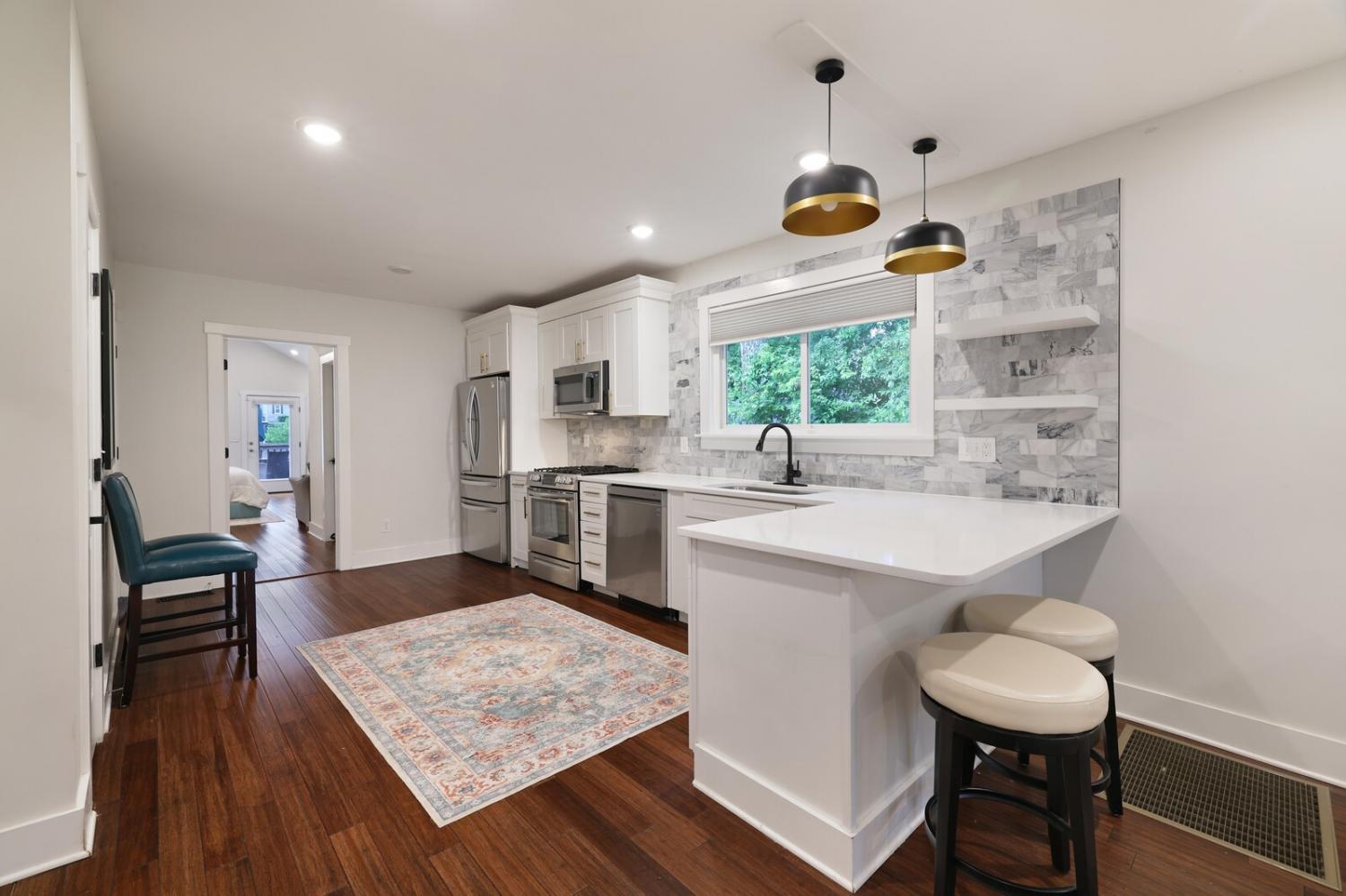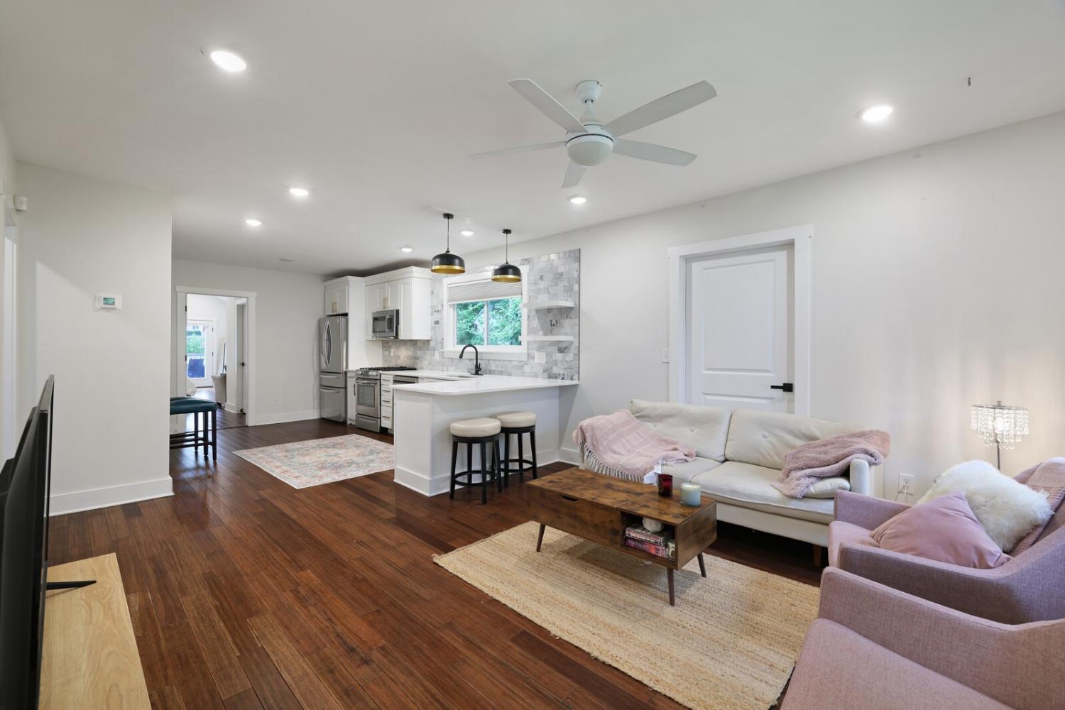 Step inside to an open-concept living and kitchen area filled with natural light and modern charm. The kitchen features a chic gray backsplash, a convenient bartop with seating, and contemporary finishes, perfect for both entertaining and everyday living. Both bathrooms have been thoughtfully updated, showcasing stunning tile work, modern vanities, and designer touches throughout. Each bedroom offers comfort, space, and versatility, ideal for families, roommates, or a home office setup. Whether you're a first-time buyer or looking for a move-in-ready East Nashville retreat, this home is a definite must-see. Roof is 1year old Hvac is 1 year. Hw heater 3yrs. Dont miss your chance to own a piece of one of Nashville’s most vibrant neighborhoods!