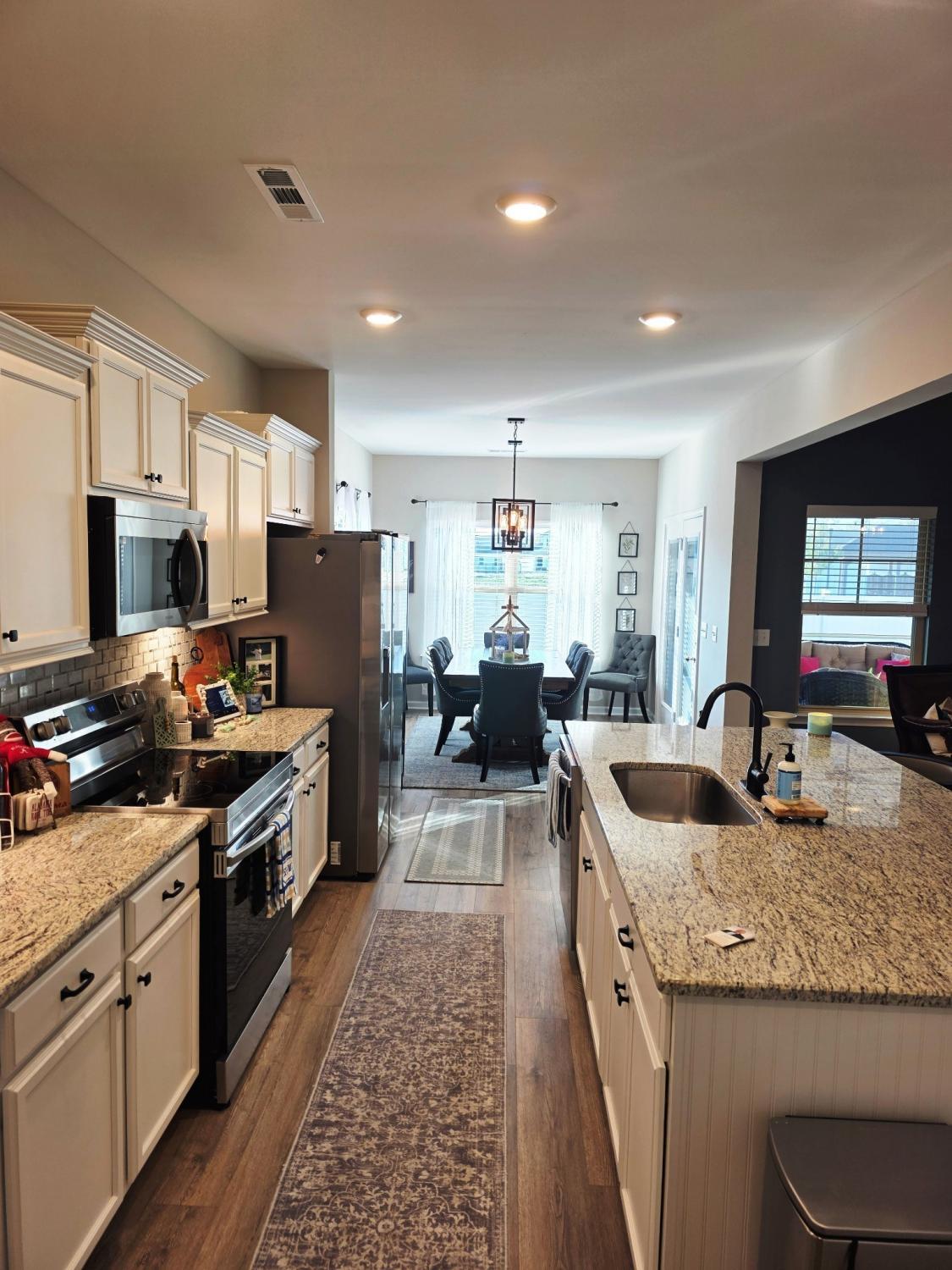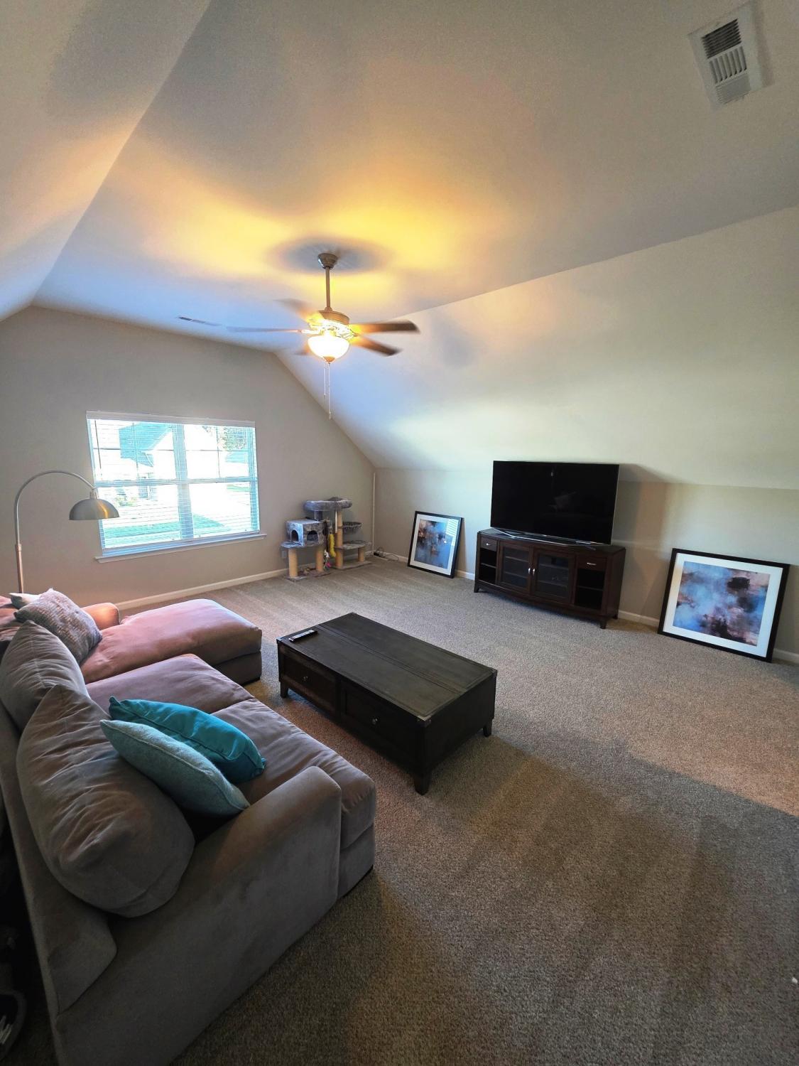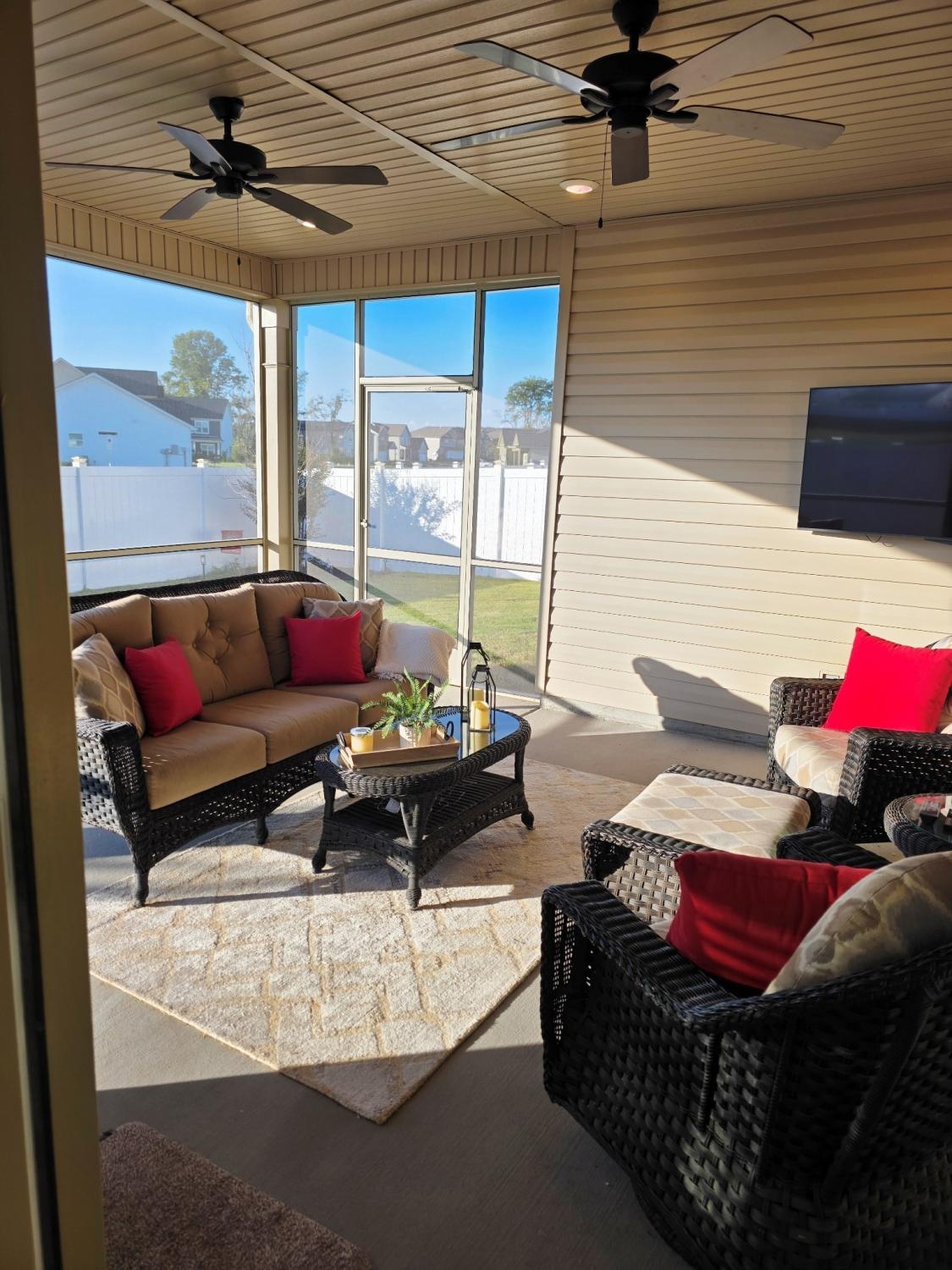 Your Dream Home Awaits! This Gorgeous Story-and-a-Half home offers 3 bedrooms and 3 full baths with a stunning open floor plan. The kitchen is a chef's delight, featuring a large island, granite countertops, painted cabinets, and stainless steel appliances. Enjoy beautiful laminate floors throughout the main areas all with upgraded lighting fixtures. The home is loaded with upgrades, including a large, screened-in covered back patio ($4,000) perfect for outdoor living. A huge bonus room with a full bath offers flexible space for a teenager's suite or a private getaway. This home features a new water softener ($2,000) for enhanced cleaning efficiencies and softer showers, as well as a keyless, Wi-Fi-enabled front entry. Additional sod and back yard landscaping ($2,000) surrounded by your own privacy fencing ($8,000). Don't miss this opportunity!