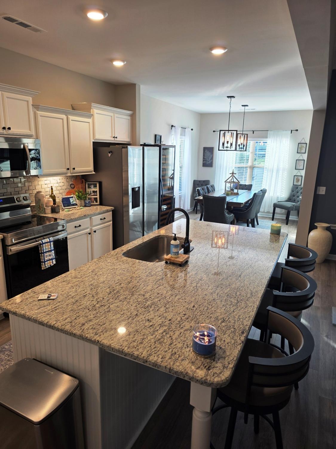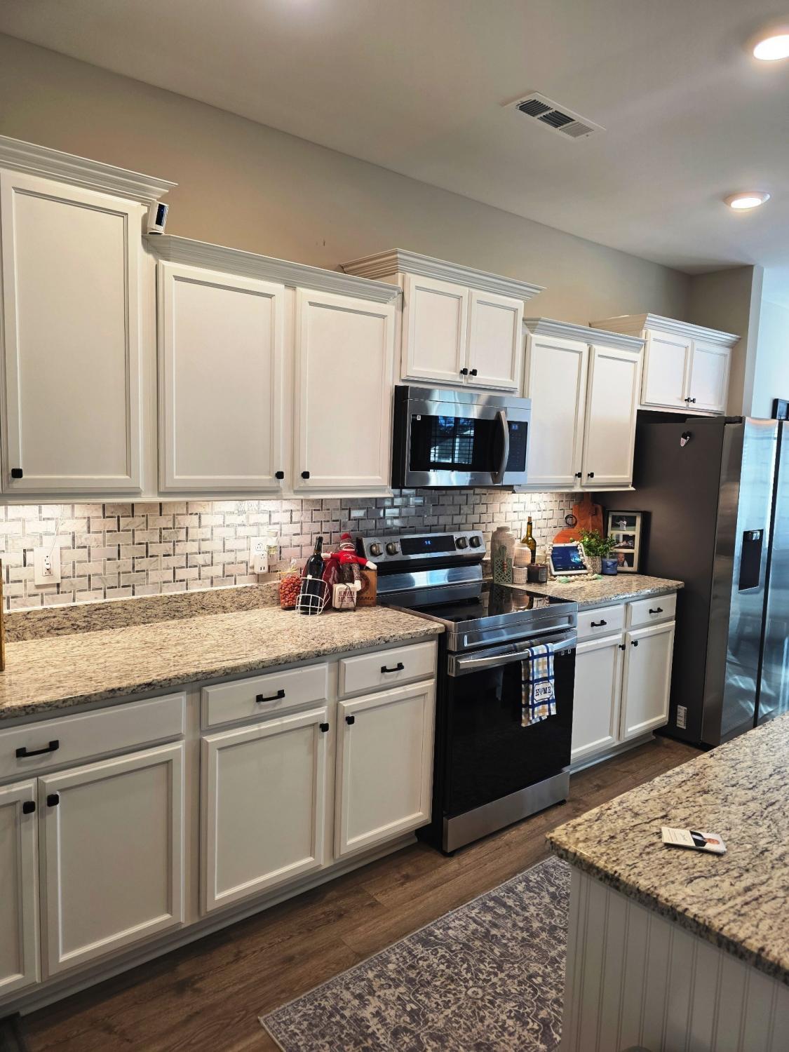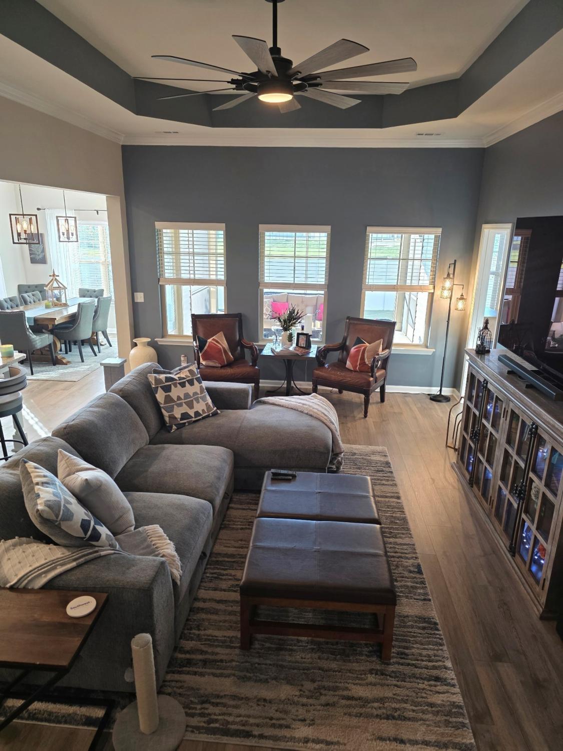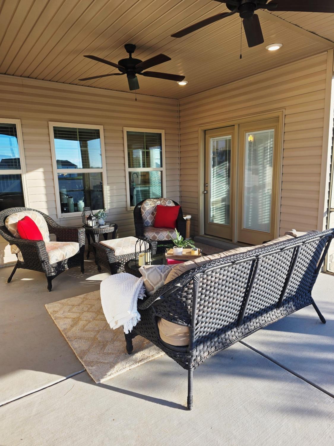 Your Dream Home Awaits! This Gorgeous Story-and-a-Half home offers 3 bedrooms and 3 full baths with a stunning open floor plan. The kitchen is a chef's delight, featuring a large island, granite countertops, painted cabinets, and stainless steel appliances. Enjoy beautiful laminate floors throughout the main areas all with upgraded lighting fixtures. The home is loaded with upgrades, including a large, screened-in covered back patio ($4,000) perfect for outdoor living. A huge bonus room with a full bath offers flexible space for a teenager's suite or a private getaway. This home features a new water softener ($2,000) for enhanced cleaning efficiencies and softer showers, as well as a keyless, Wi-Fi-enabled front entry. Additional sod and back yard landscaping ($2,000) surrounded by your own privacy fencing ($8,000). Don't miss this opportunity!