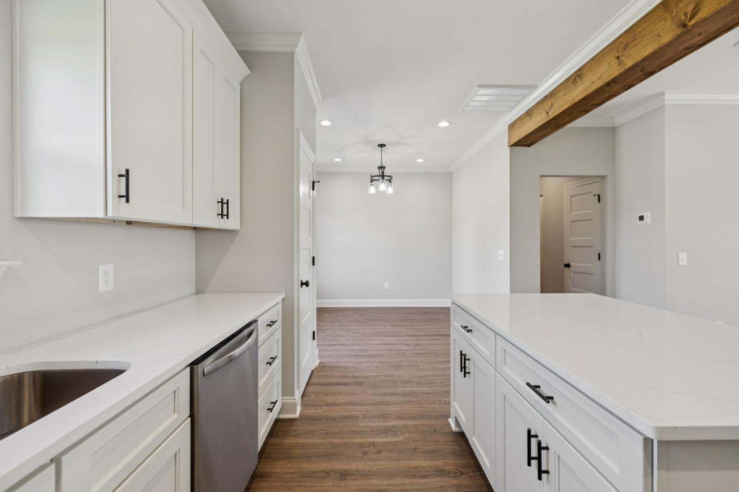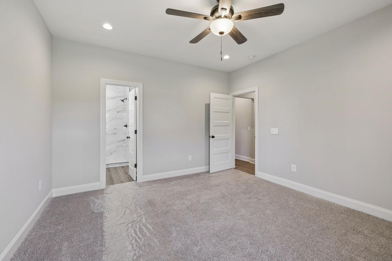 New construction in the heart of Chapel Hill comes with a 1 year builder warranty. Convenient to all Chapel Hill has to offer and within walking distance of high school and restaurants. Also very near Henry Horton State Park, with a short commute to Murfreesboro, Franklin, Columbia, and Spring Hill. Main level features open living room and kitchen with exposed wood beams, quartz countertops, large island with lots of space, soft close cabinets, stainless/black oven, microwave and dishwasher. and eat in area. Master Bedroom suite is also downstairs and has walk in closet with custom shelving in the closet, double vanity in the bathroom with elegant tile shower. Flooring is LVP and carpet. Garage features Smart remote that can be operated via your cellphone. Out the back door is a concrete patio and behind you greenspace maintained by HOA. There is also a half bath for guests downstairs. Upstairs features 2 bedrooms and extra storage space. Bedroom have large closets with custom shelving also. This home is complete and ready for you to move in. High speed fiber offered by United Communications. (1% toward the buyer's closing cost with preferred Lender)