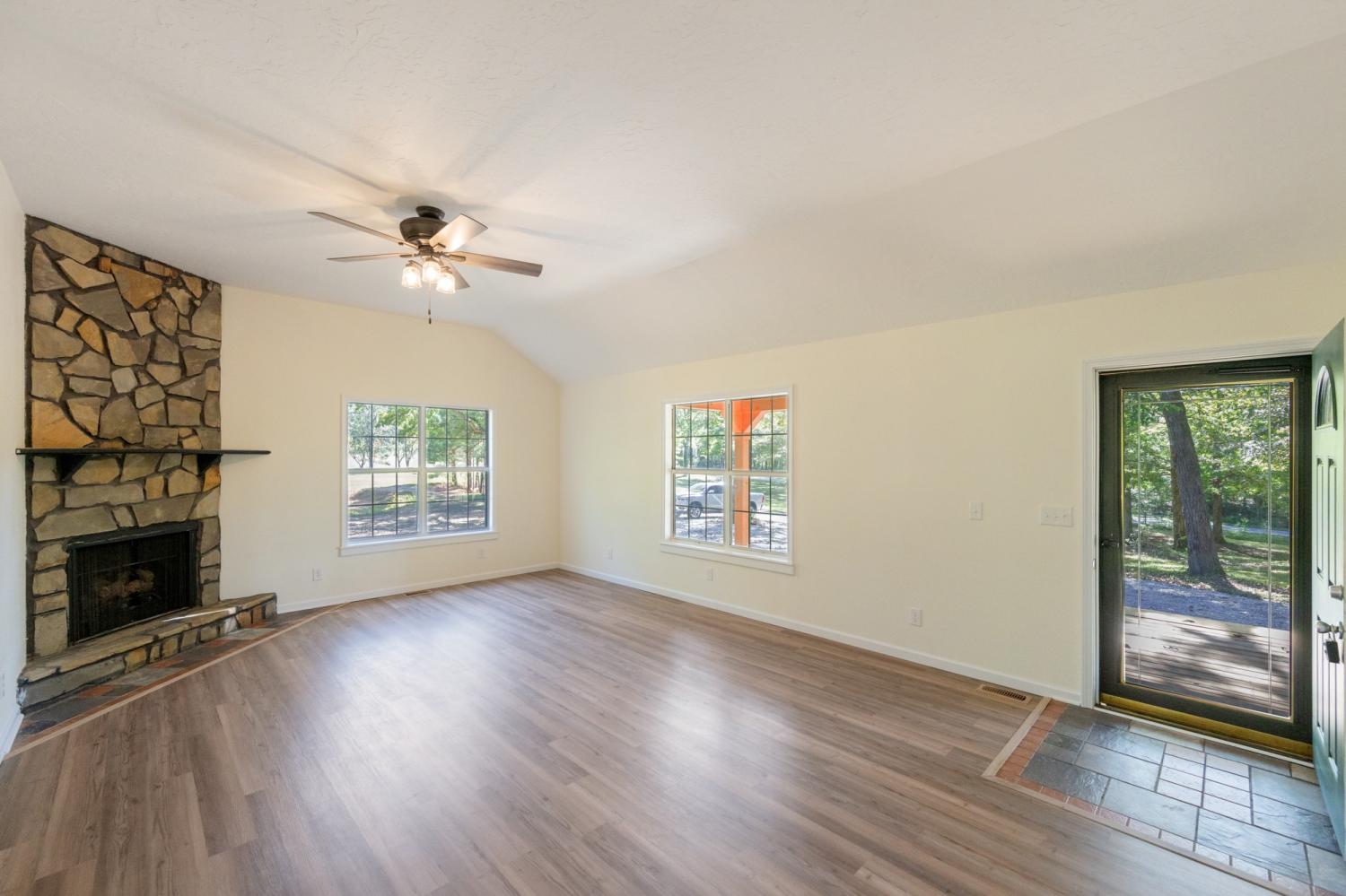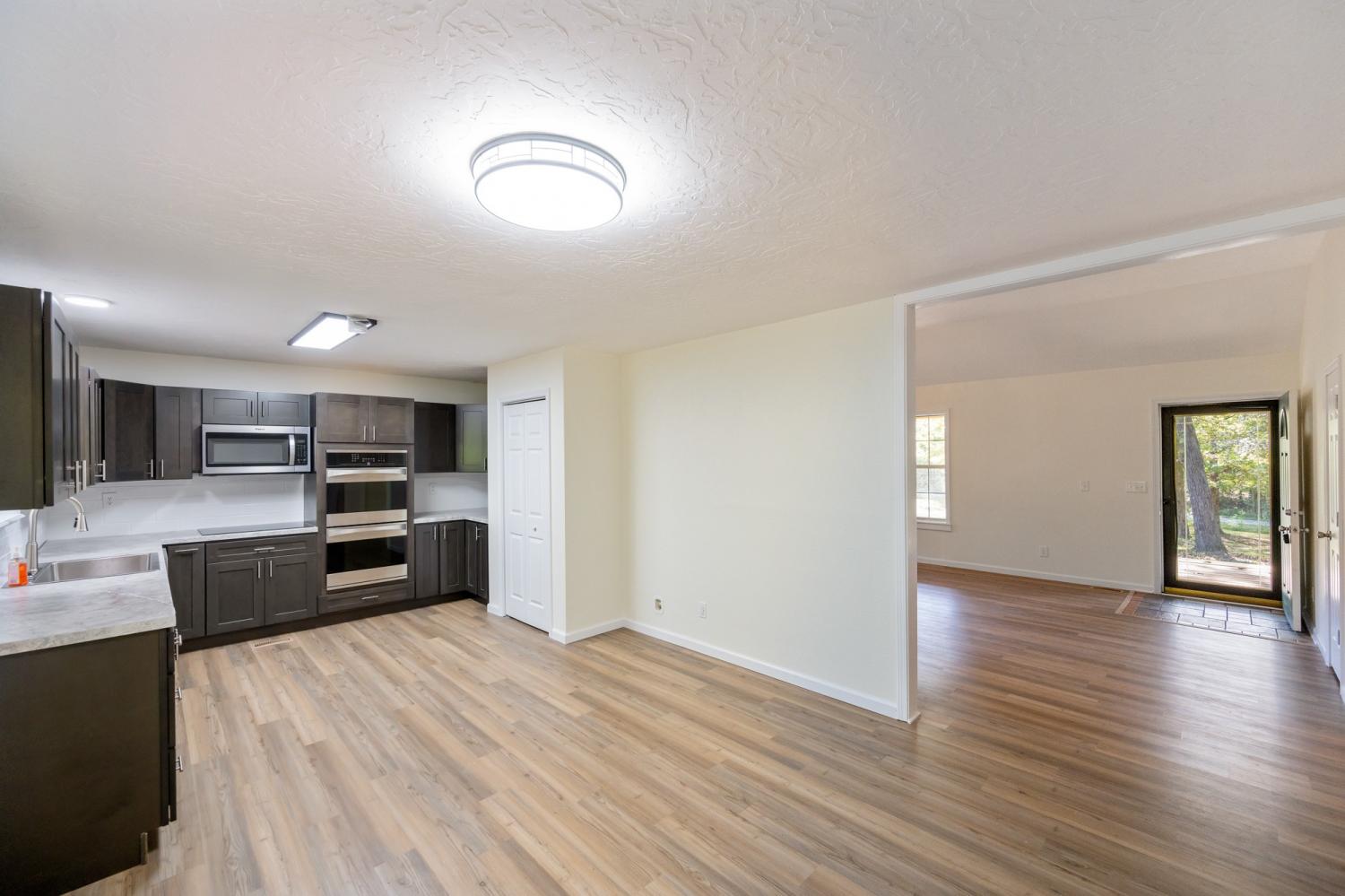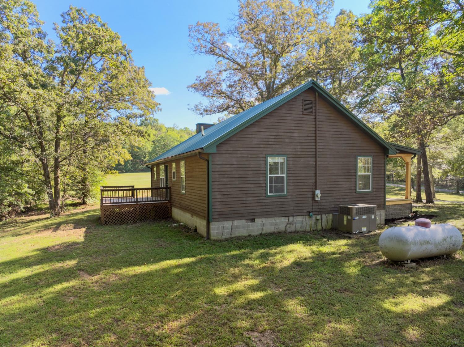 Newly renovated country home setting on 5.8 Acres ( New Survey) in Benton County, Holladay Tennessee in West Tennessee. Property is located approx. one hour west of Nashville Tennessee and 45 minutes East of Jackson Tennessee. This home features 3 bedrooms, 2 full baths, living room with fireplace (Propane) NEW paint, interior doors, flooring, master bath vanity, kitchen cabinets & countertops, sink, vent hood microwave, new decking on rear deck, landscaping and some sod, New lights and ceiling fans. This home has a large front porch to relax and enjoy the peace and quite and watch all the wildlife. Property has a detached garage/shop , small pond, pear trees and 714 feet of road frontage. The property has city water and a well. This is part of a larger tract with new survey.