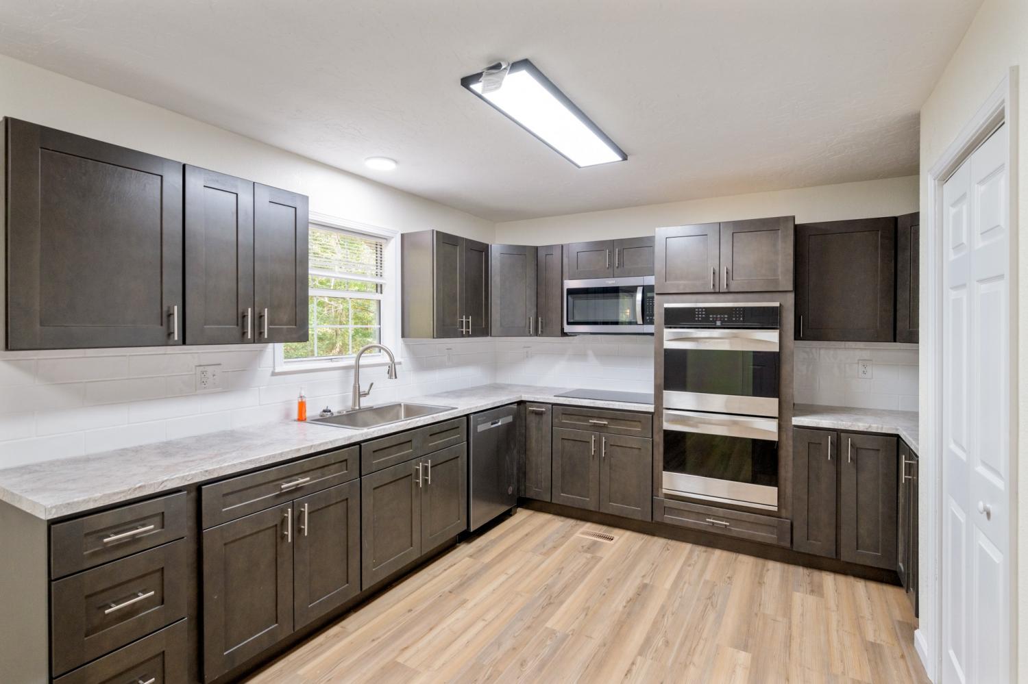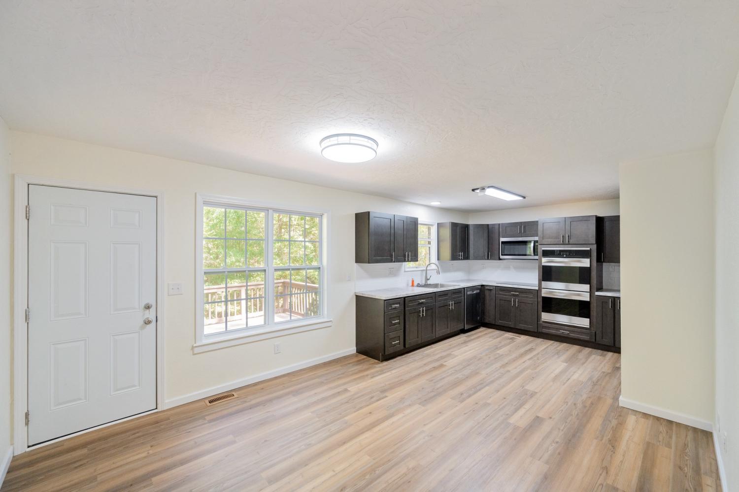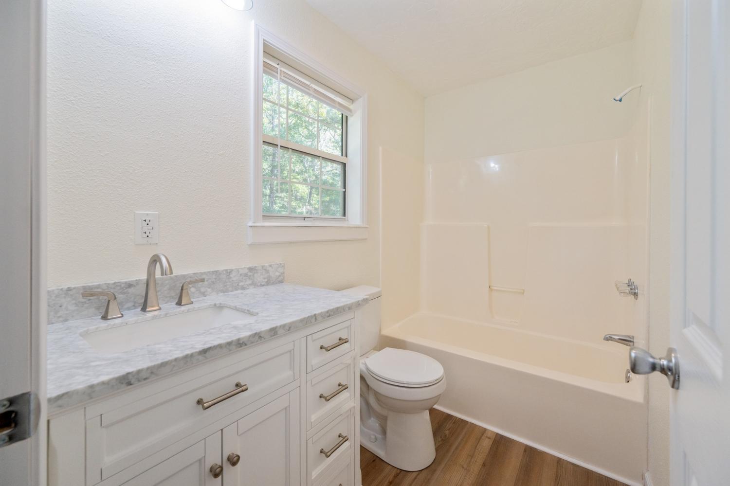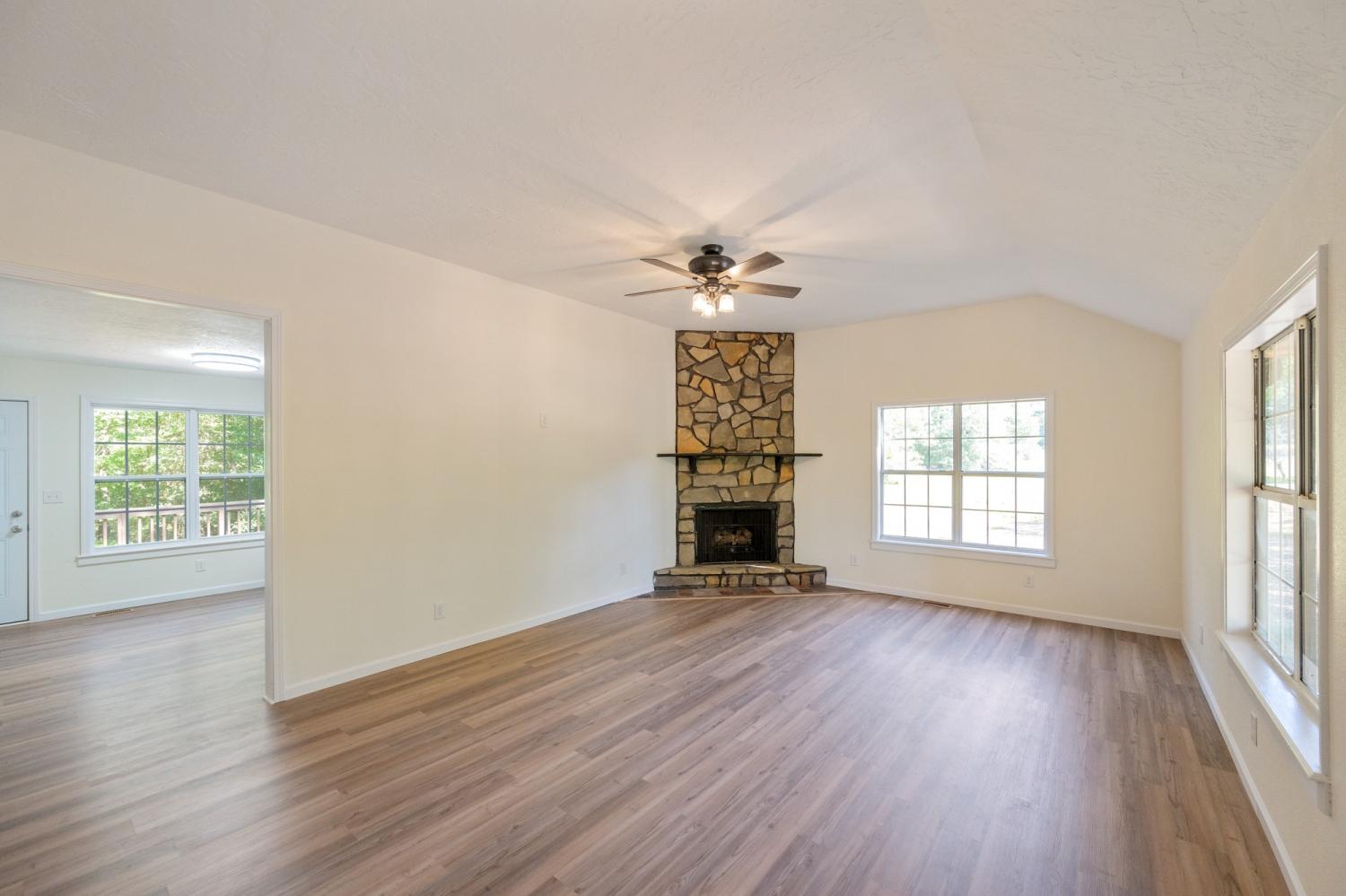 Newly renovated country home setting on 5.8 Acres ( New Survey) in Benton County, Holladay Tennessee in West Tennessee. Property is located approx. one hour west of Nashville Tennessee and 45 minutes East of Jackson Tennessee. This home features 3 bedrooms, 2 full baths, living room with fireplace (Propane) NEW paint, interior doors, flooring, master bath vanity, kitchen cabinets & countertops, sink, vent hood microwave, new decking on rear deck, landscaping and some sod, New lights and ceiling fans. This home has a large front porch to relax and enjoy the peace and quite and watch all the wildlife. Property has a detached garage/shop , small pond, pear trees and 714 feet of road frontage. The property has city water and a well. This is part of a larger tract with new survey.