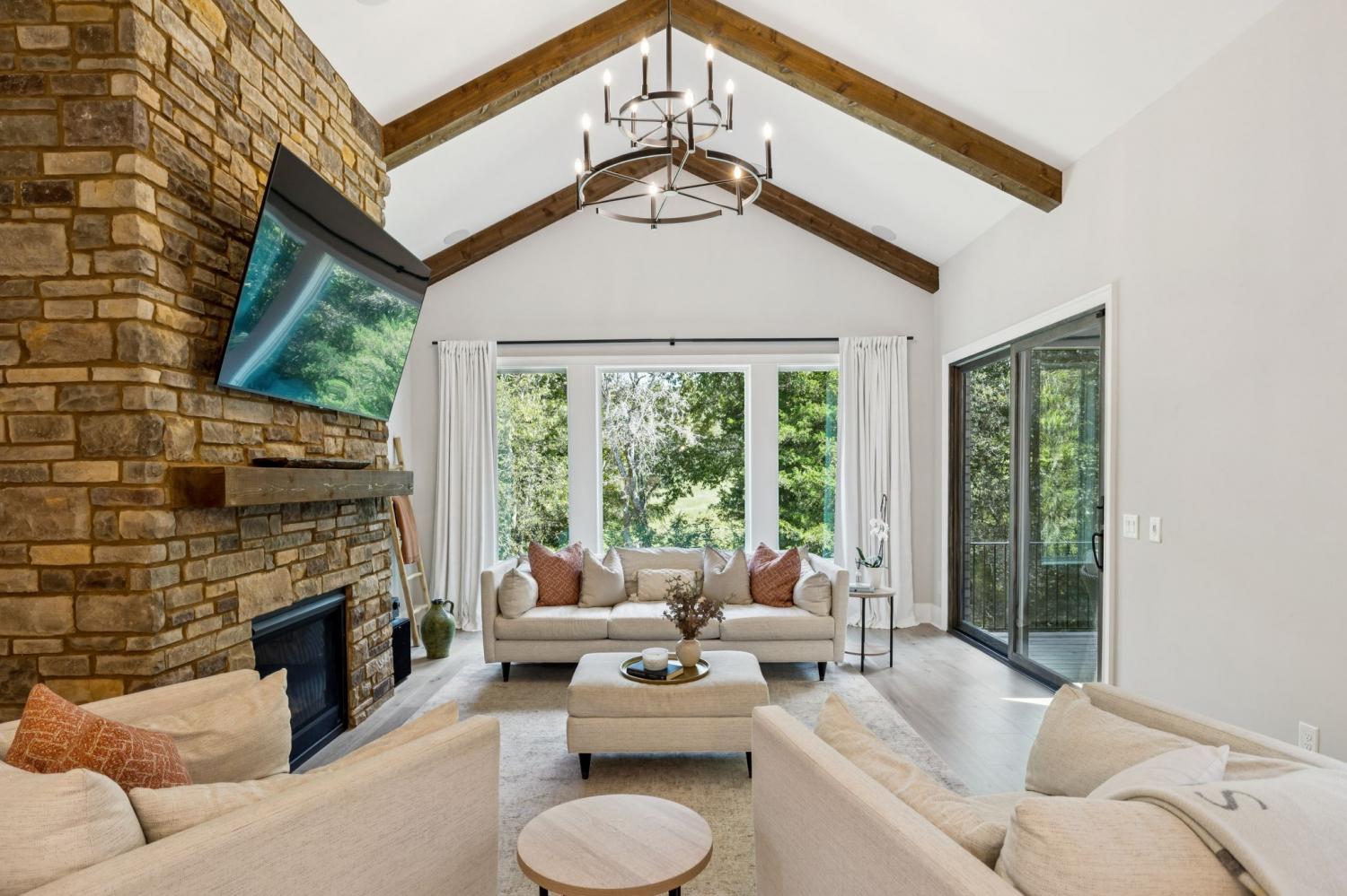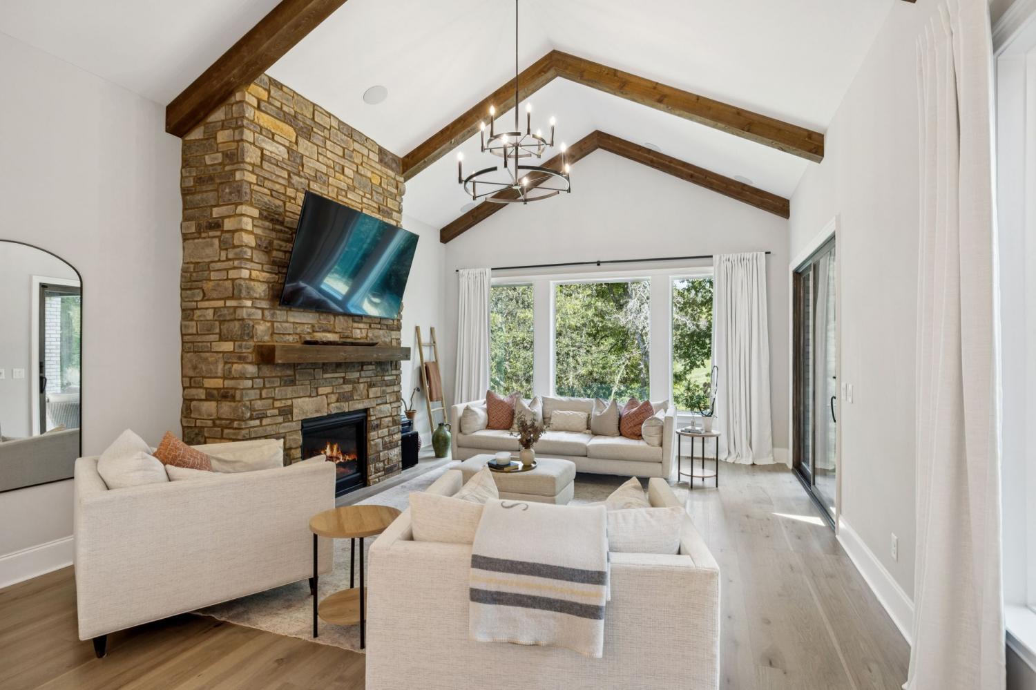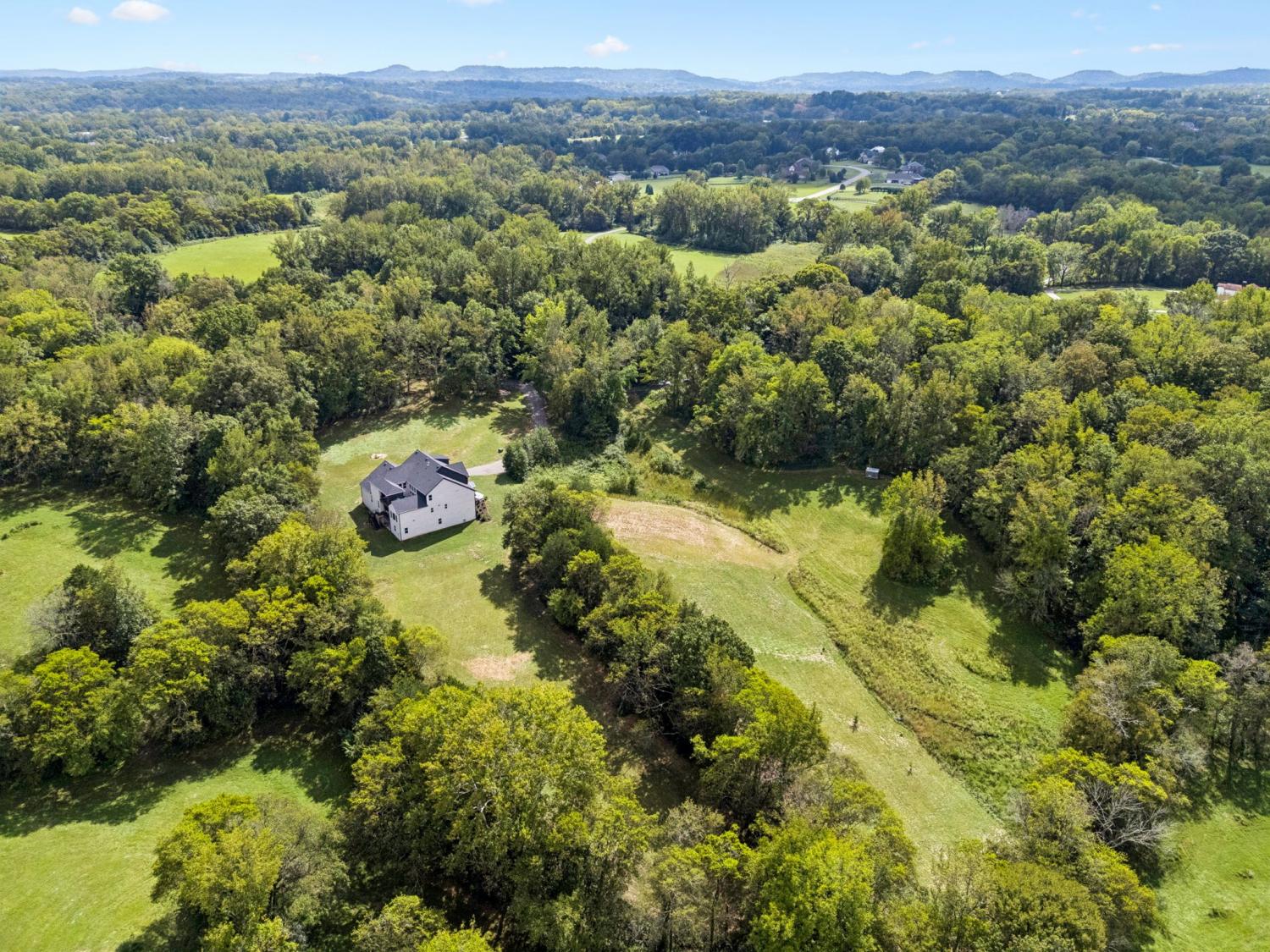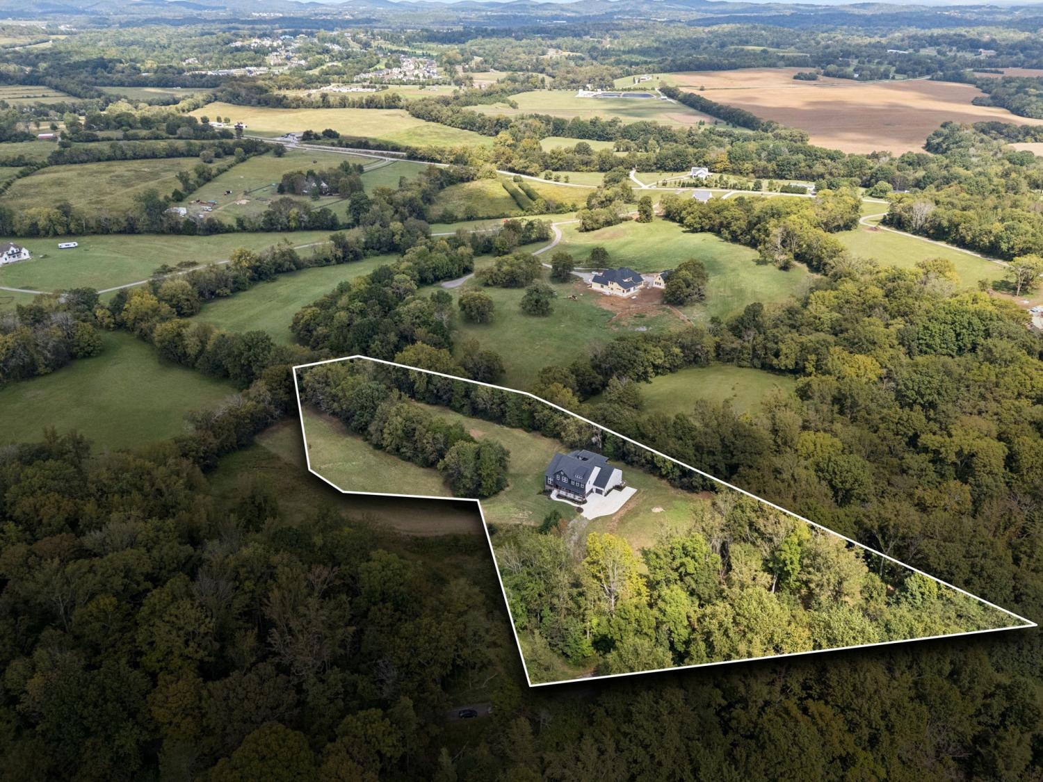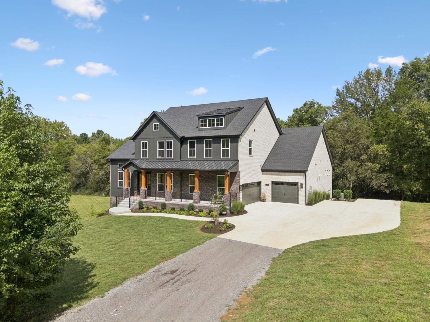 Welcome to this exquisite custom home set on five rolling Tennessee acres in the heart of College Grove. Built less than a year ago, this residence blends modern luxury with timeless craftsmanship. Soaring ceilings, floor-to-ceiling windows, and open living spaces create a light-filled atmosphere throughout. The main level offers a grand two-story foyer and dining room, an inviting office with glass French doors, and a seamless flow between the living room and chef’s kitchen. Custom cabinetry, coffered wood-detailed ceilings, and wide-plank hardwood floors highlight the attention to detail. The spacious walk-in pantry, mudroom, and oversized laundry are designed with everyday convenience in mind. The primary suite is a true retreat, featuring a spa-like bath with a walk-through shower, soaking tub, dual vanities, and a massive walk-in closet connected to the laundry and mudroom. A second ensuite bedroom on the main floor offers flexibility for guests or multi-generational living. Upstairs, three additional ensuite bedrooms are complemented by a media room, game room, open bar, and powder bath—perfect for entertaining. The unfinished basement provides 1,981 square feet of future living potential with plumbing and wiring already in place. Outdoor living abounds with four distinct spaces: a welcoming front porch, a covered back deck with fireplace, a basement-level patio, and a private covered deck off the media room. Enjoy the privacy and peacefulness of this country living, minutes from the charming College Grove square and Award winning Williamson County schools. The home appraised in August 2025 at $3,122,000.