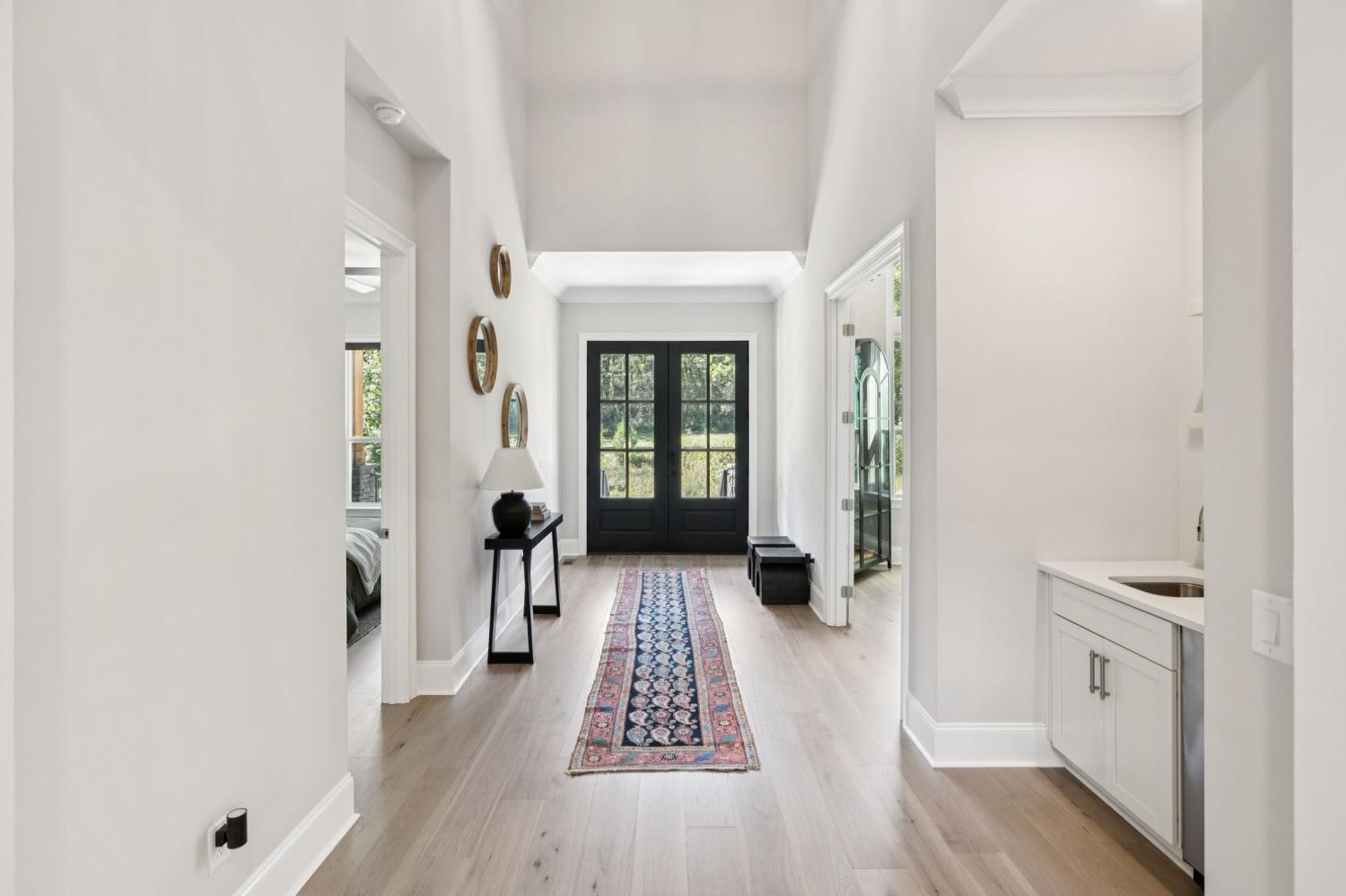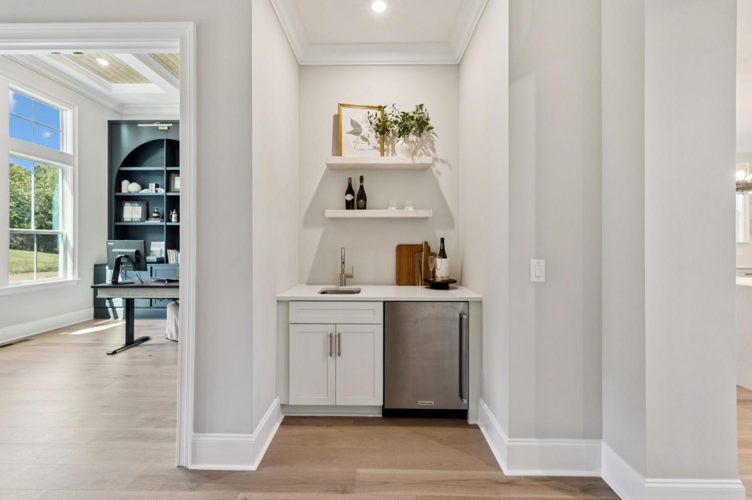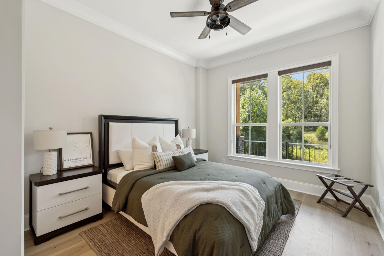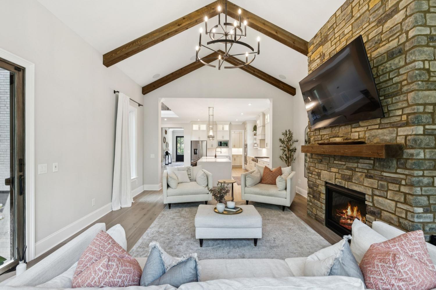 Welcome to this exquisite custom home set on five rolling Tennessee acres in the heart of College Grove. Built less than a year ago, this residence blends modern luxury with timeless craftsmanship. Soaring ceilings, floor-to-ceiling windows, and open living spaces create a light-filled atmosphere throughout. The main level offers a grand two-story foyer and dining room, an inviting office with glass French doors, and a seamless flow between the living room and chef’s kitchen. Custom cabinetry, coffered wood-detailed ceilings, and wide-plank hardwood floors highlight the attention to detail. The spacious walk-in pantry, mudroom, and oversized laundry are designed with everyday convenience in mind. The primary suite is a true retreat, featuring a spa-like bath with a walk-through shower, soaking tub, dual vanities, and a massive walk-in closet connected to the laundry and mudroom. A second ensuite bedroom on the main floor offers flexibility for guests or multi-generational living. Upstairs, three additional ensuite bedrooms are complemented by a media room, game room, open bar, and powder bath—perfect for entertaining. The unfinished basement provides 1,981 square feet of future living potential with plumbing and wiring already in place. Outdoor living abounds with four distinct spaces: a welcoming front porch, a covered back deck with fireplace, a basement-level patio, and a private covered deck off the media room. Enjoy the privacy and peacefulness of this country living, minutes from the charming College Grove square and Award winning Williamson County schools. The home appraised in August 2025 at $3,122,000.