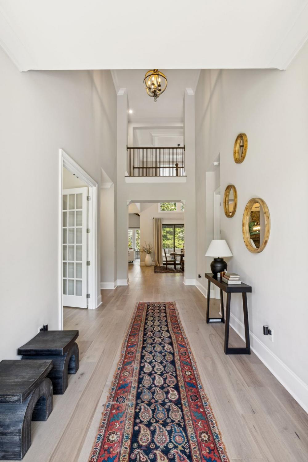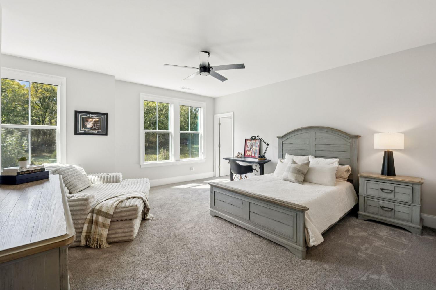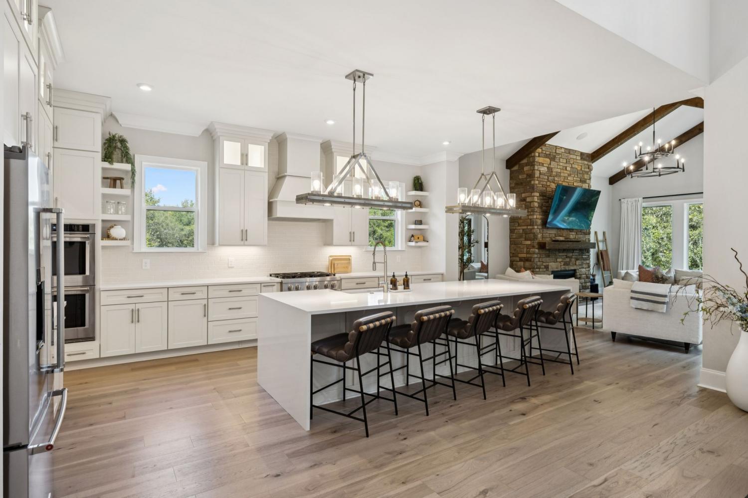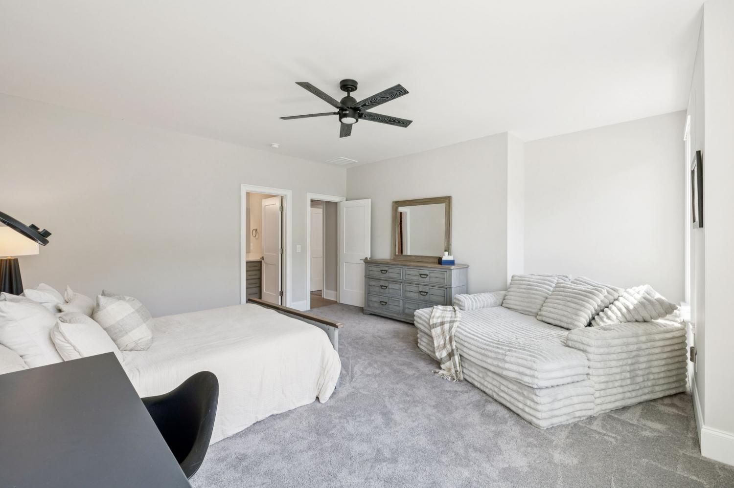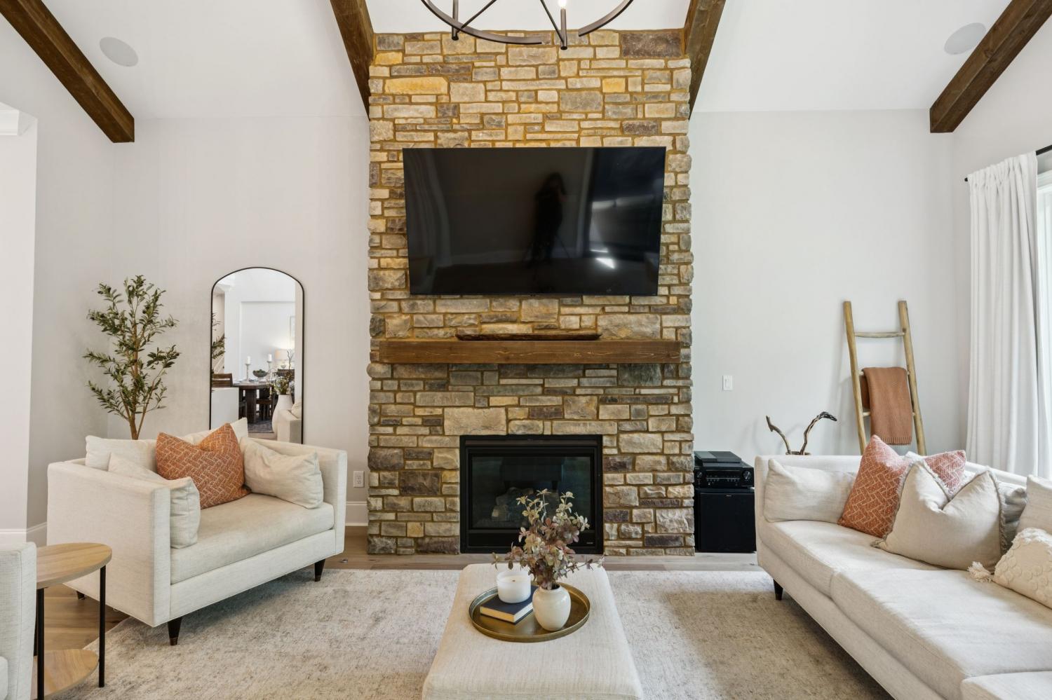 Welcome to this exquisite custom home set on five rolling Tennessee acres in the heart of College Grove. Built less than a year ago, this residence blends modern luxury with timeless craftsmanship. Soaring ceilings, floor-to-ceiling windows, and open living spaces create a light-filled atmosphere throughout. The main level offers a grand two-story foyer and dining room, an inviting office with glass French doors, and a seamless flow between the living room and chef’s kitchen. Custom cabinetry, coffered wood-detailed ceilings, and wide-plank hardwood floors highlight the attention to detail. The spacious walk-in pantry, mudroom, and oversized laundry are designed with everyday convenience in mind. The primary suite is a true retreat, featuring a spa-like bath with a walk-through shower, soaking tub, dual vanities, and a massive walk-in closet connected to the laundry and mudroom. A second ensuite bedroom on the main floor offers flexibility for guests or multi-generational living. Upstairs, three additional ensuite bedrooms are complemented by a media room, game room, open bar, and powder bath—perfect for entertaining. The unfinished basement provides 1,981 square feet of future living potential with plumbing and wiring already in place. Outdoor living abounds with four distinct spaces: a welcoming front porch, a covered back deck with fireplace, a basement-level patio, and a private covered deck off the media room. Enjoy the privacy and peacefulness of this country living, minutes from the charming College Grove square and Award winning Williamson County schools. The home appraised in August 2025 at $3,122,000.