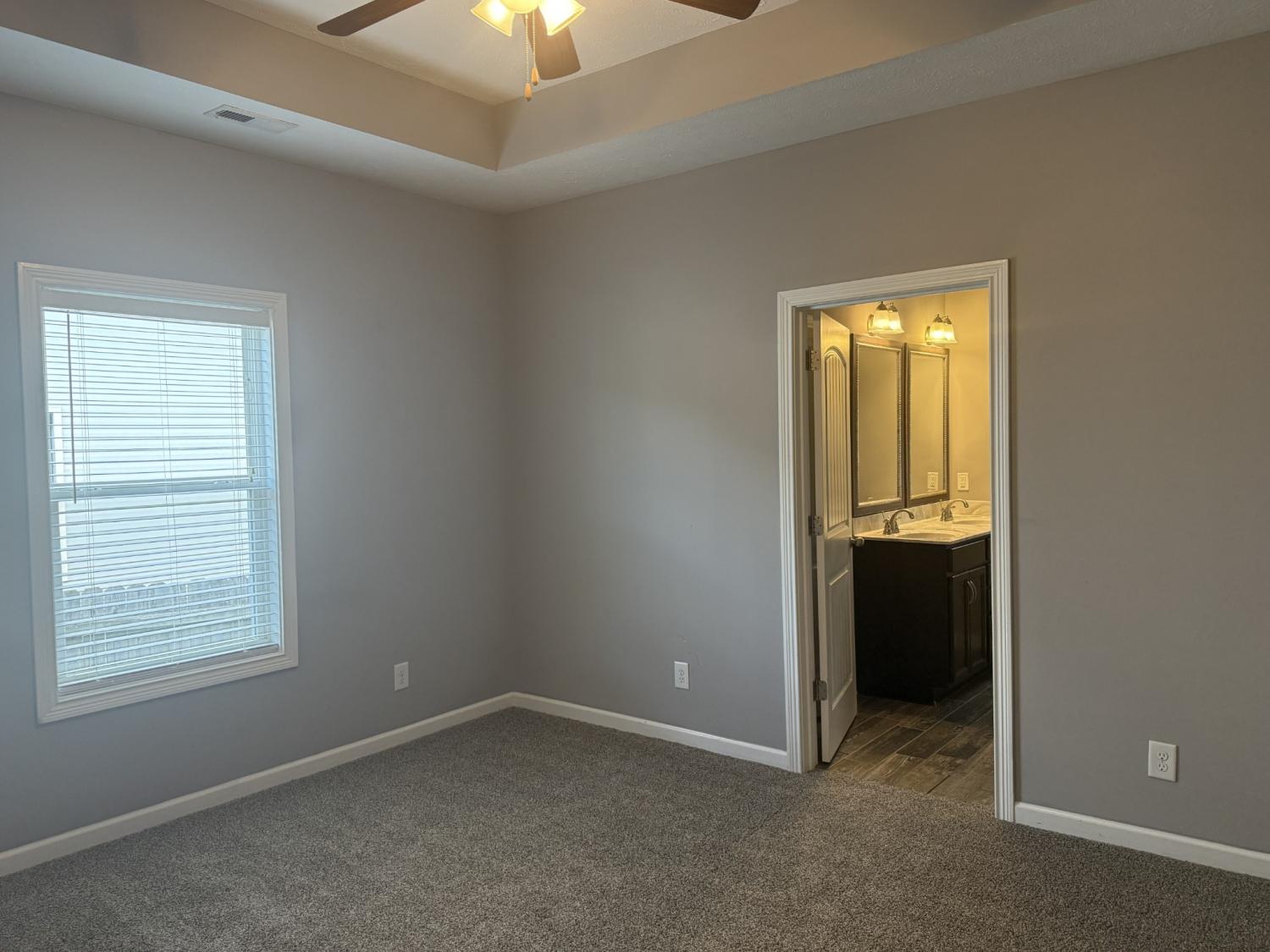 This home features a 2-car garage and fenced yard. Split bedroom floor plan. The primary suite offers 2 walk-in closets, trey ceilings and a full bath with double sinks and garden tub. Both of the secondary bedrooms also have large walk-in closets. New carpet in all the bedrooms.In the eat-in kitchen you'll find lots of counters, cabinet space, pantry and a tile backsplash. It gives access to your covered back porch and privacy fenced yard. Small dogs 25 lbs and under welcome. Pet deposit is $400.
