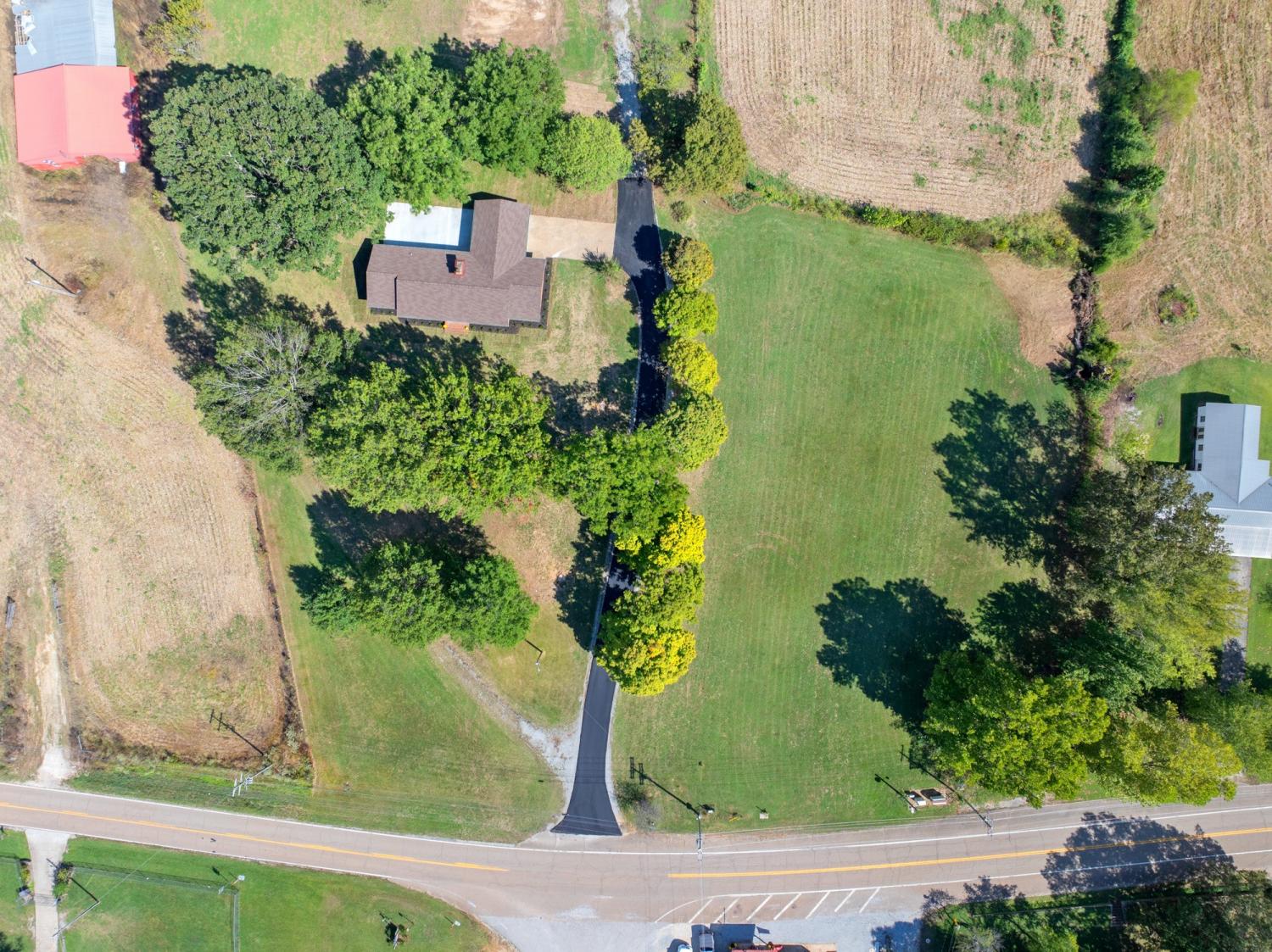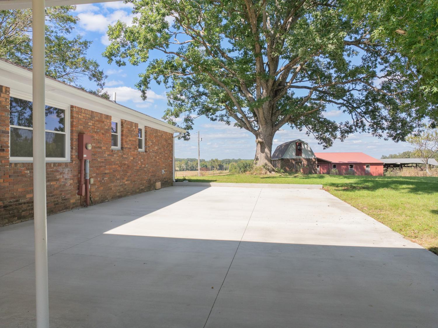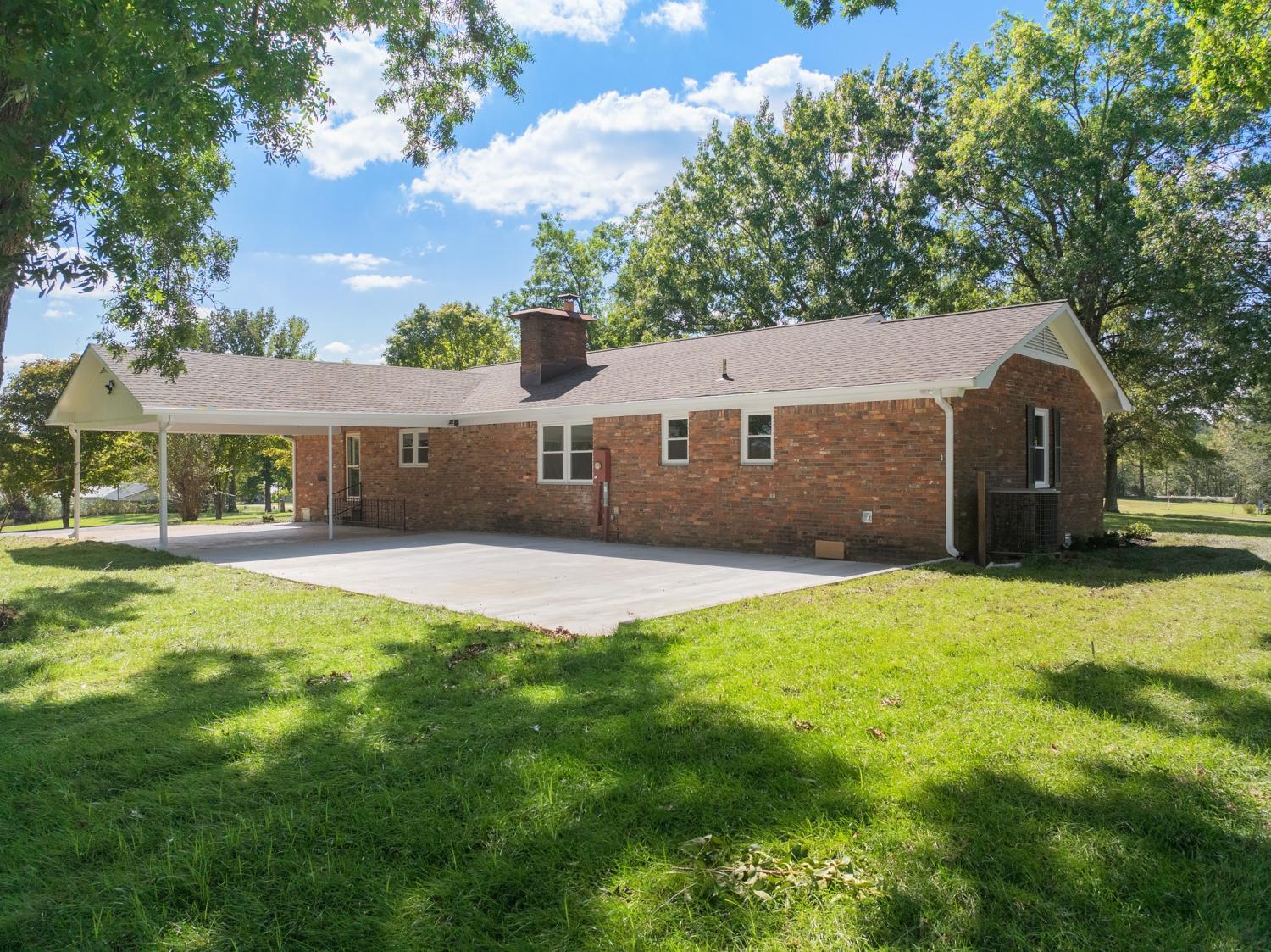 Brick home in the Heart of Holladay Tennessee. This home is located approx. 100 miles West of Nashville and 54 miles East of Jackson, Tennessee in Holladay Tennessee / Benton County. The home has been renovated in 2025 with New Roof on the house & outbuilding, New Blacktopped Driveway, New 20 x 42 concrete patio, New Windows, New Flooring, New paint, New kitchen cabinets ,countertops, stainless steel appliances ( dishwasher, sink, microwave, range and refrigerator, New light fixtures and ceiling fans, The Hall bath has New tub with tile surround, vanity, mirror and toilet, The Master Bath has New walk-in tile shower, custom vanity and toilet. New insulation on the HVAC duckwork in the basement. The Basement has a NO LEAK warranty from AFS in Nashville TN. They installed a built in drain system in the basement floor. The home sets on 3.2 unrestricted acres with level yard New Sod in part of the back yard . The property has city water with natural gas available at the road, septic, 3 pecan trees, 3 black walnut trees, 2 peach trees and large oak shade trees. This home is a short from to the Tennessee River/Ky Lake, 2 State Parks and is located in one of the best communities in Tennessee.
